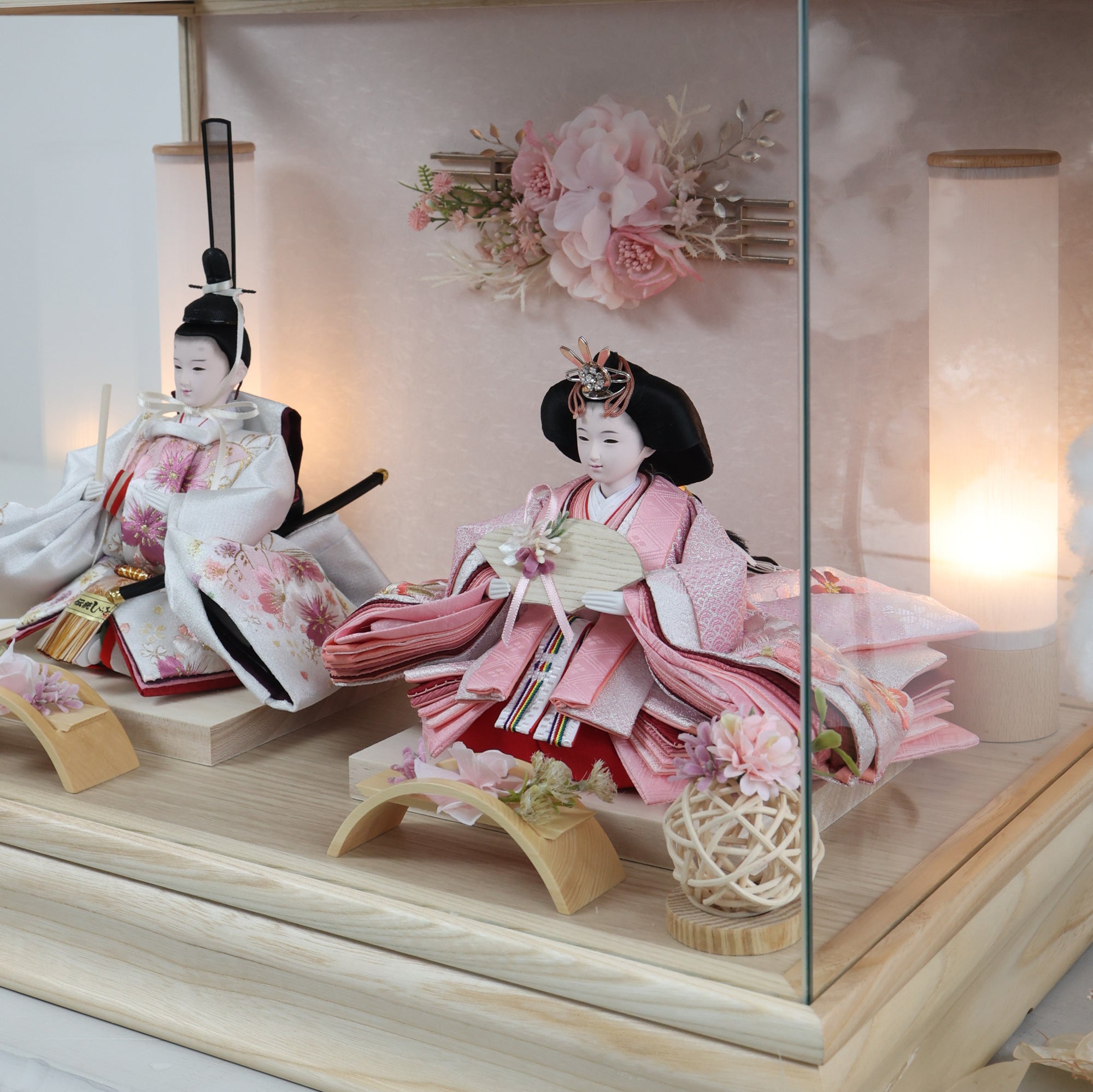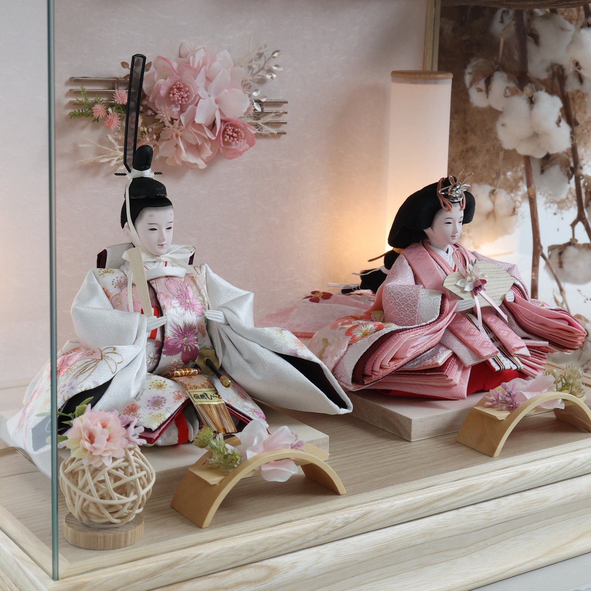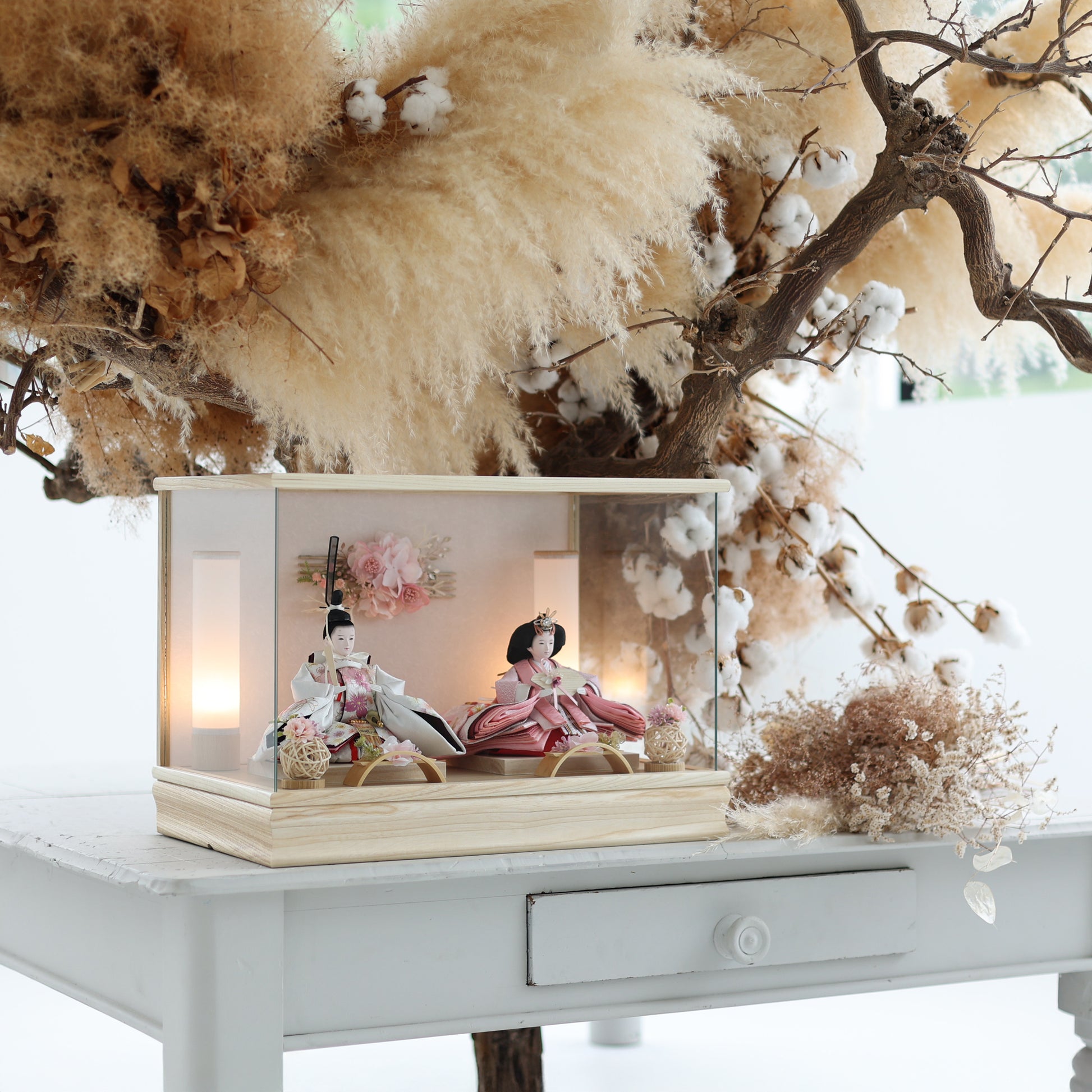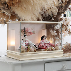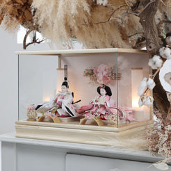 通常2mm厚が一般的な中、当店ではより高品質なAGC製3mmガラスを採用しています。厚みが増すことで強度と安全性が高まり、透明度の高いクリアな美しさを保ちます。大切な雛人形を守りながら、高級感のある見栄えを実現しています。
