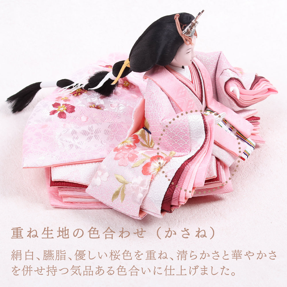 国産の栓(せん)は、美しい木目と温もりある質感が魅力の天然木です。耐久性に優れ、経年とともに味わいを深めます。台座や屏風などに使用することで、自然素材ならではの落ち着いた風合いと上質感を演出し、雛人形全体をより品格ある印象に仕上げます。