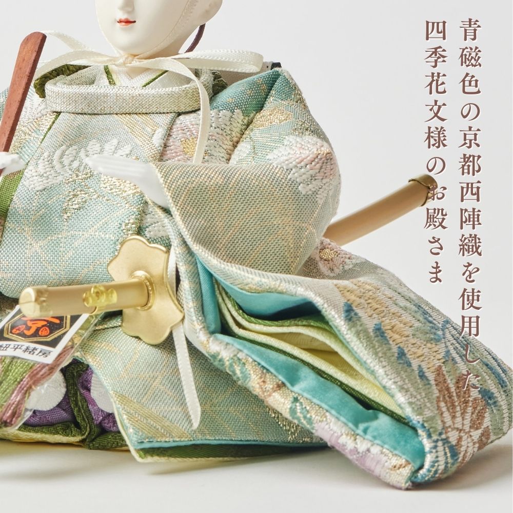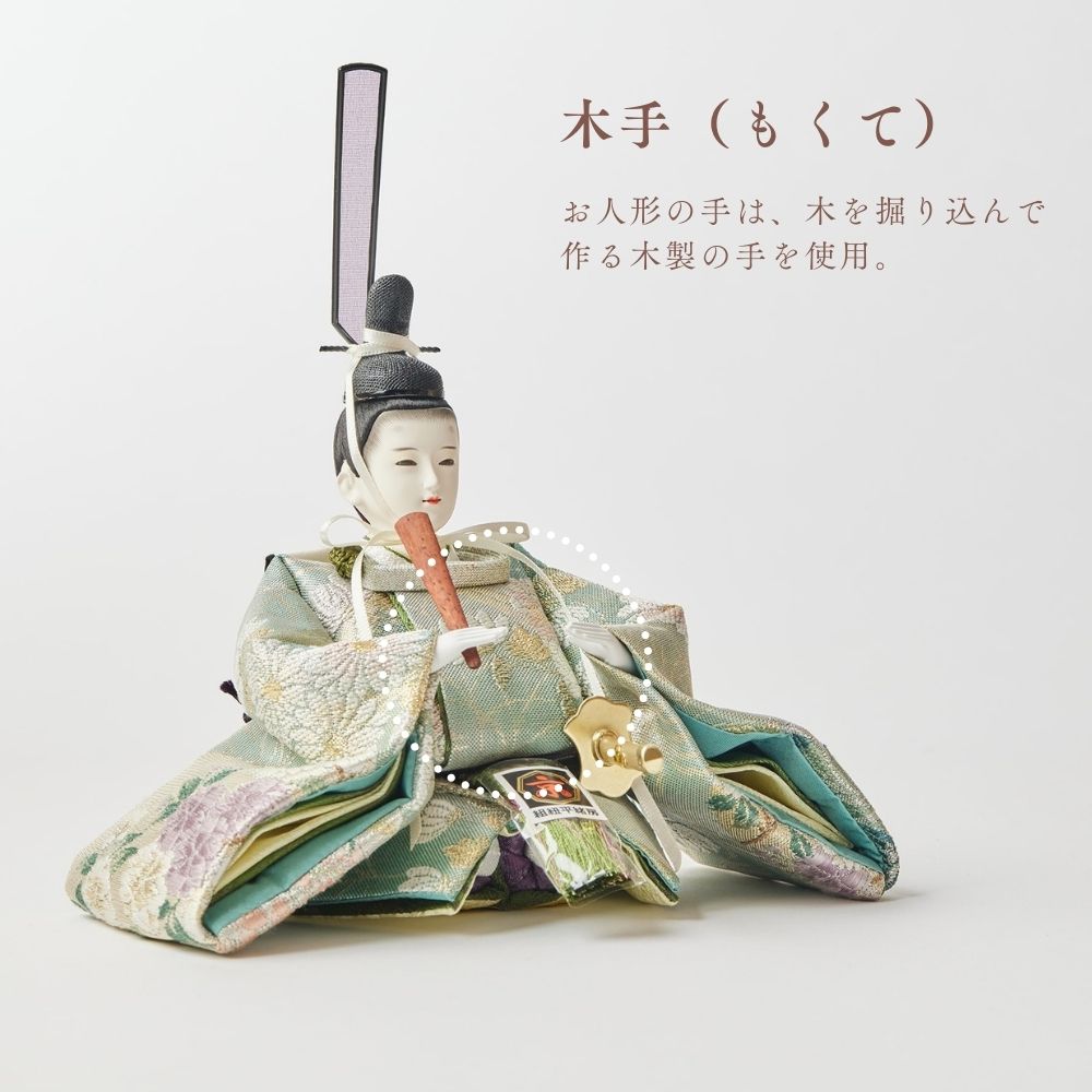 国産の栓(せん)は、美しい木目と温もりある質感が魅力の天然木です。耐久性に優れ、経年とともに味わいを深めます。台座や屏風などに使用することで、自然素材ならではの落ち着いた風合いと上質感を演出し、雛人形全体をより品格ある印象に仕上げます。