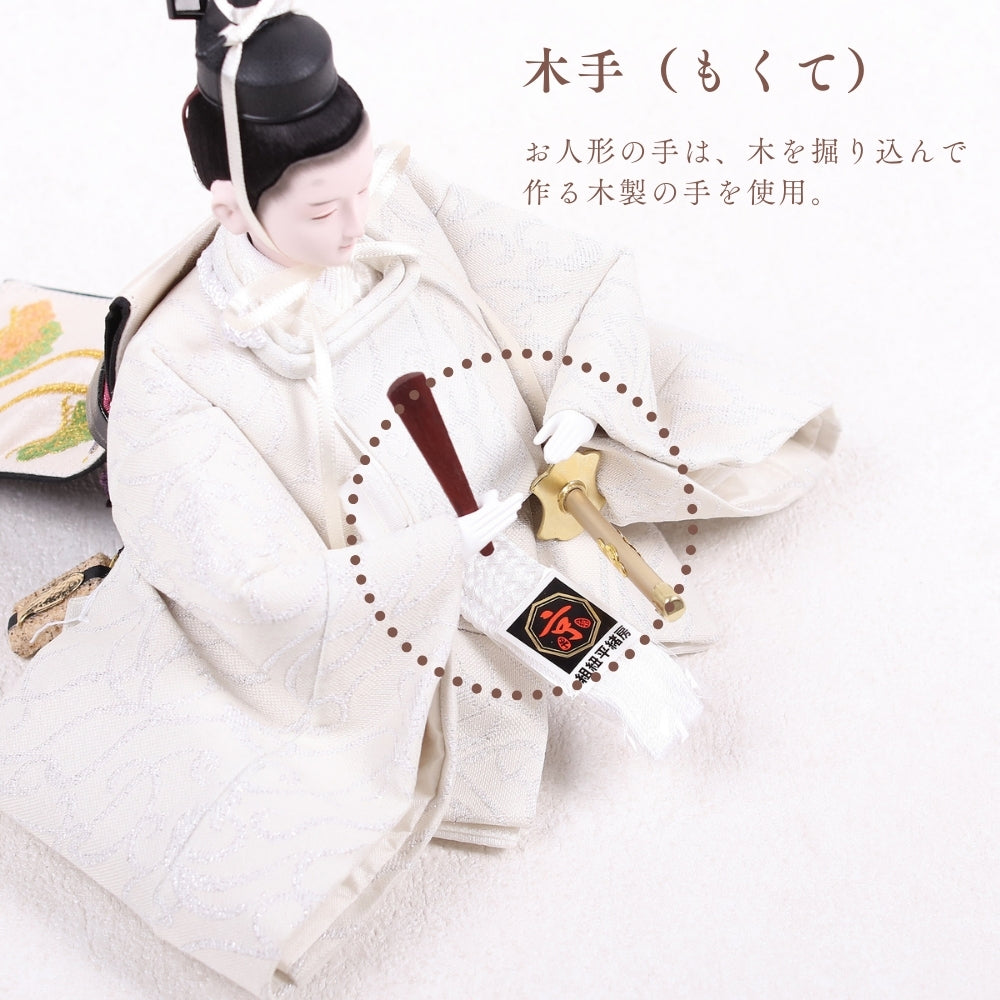 国産の栓(せん)は、美しい木目と温もりある質感が魅力の天然木です。耐久性に優れ、経年とともに味わいを深めます。台座や屏風などに使用することで、自然素材ならではの落ち着いた風合いと上質感を演出し、雛人形全体をより品格ある印象に仕上げます。