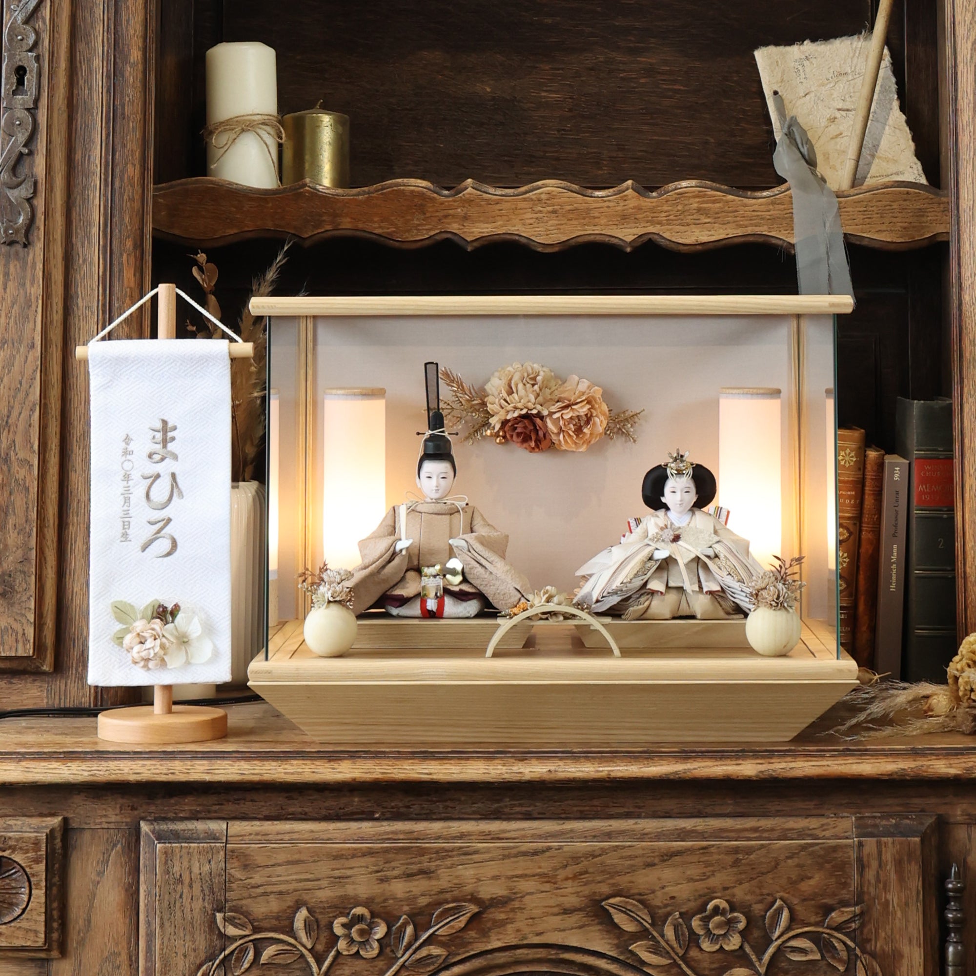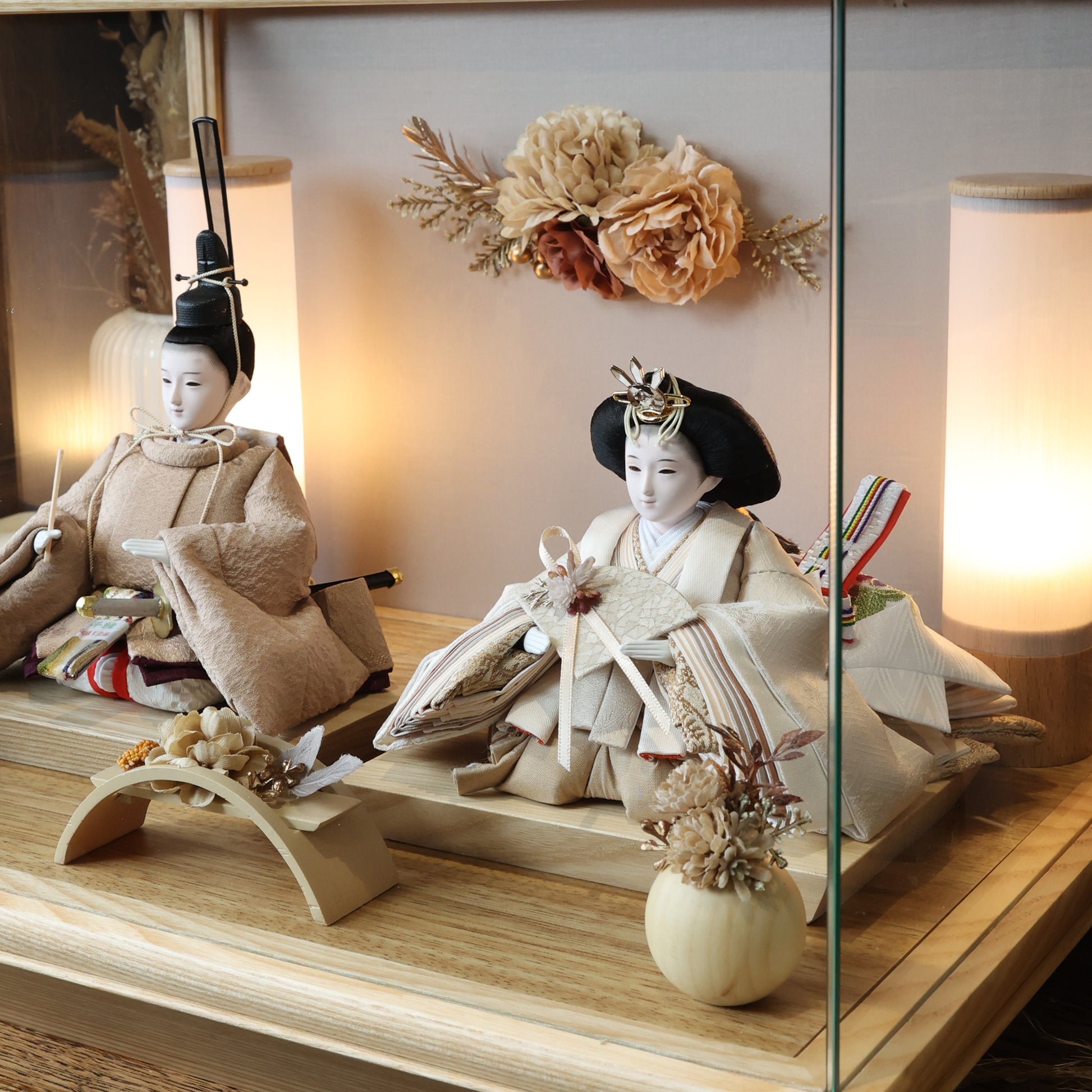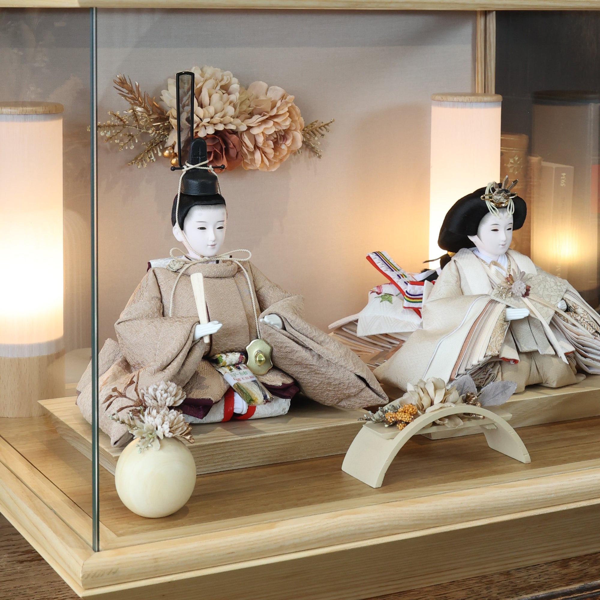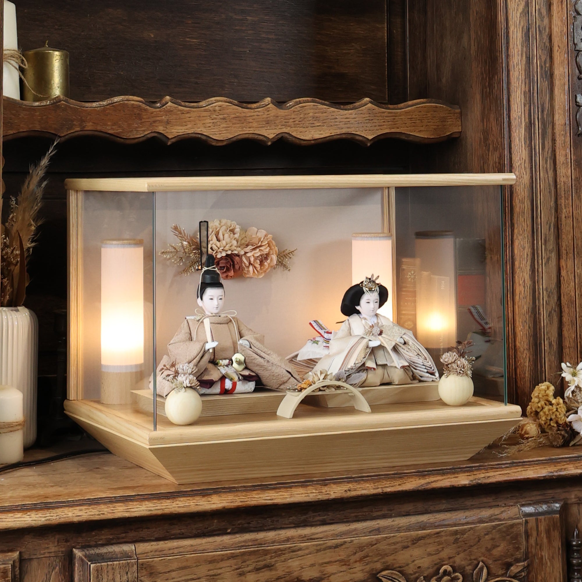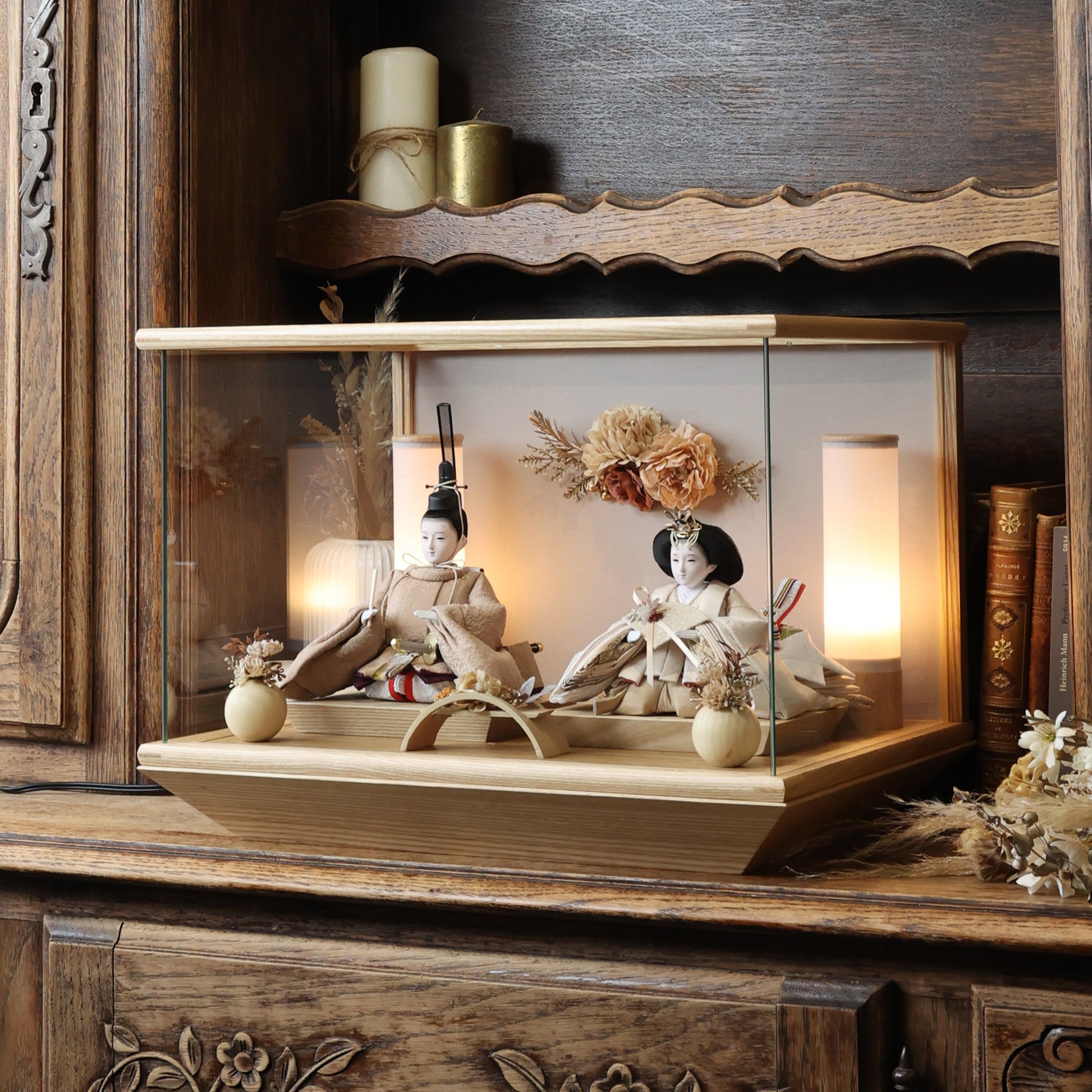 通常2mm厚が一般的な中、当店ではより高品質なAGC製3mmガラスを採用しています。厚みが増すことで強度と安全性が高まり、透明度の高いクリアな美しさを保ちます。大切な雛人形を守りながら、高級感のある見栄えを実現しています。
