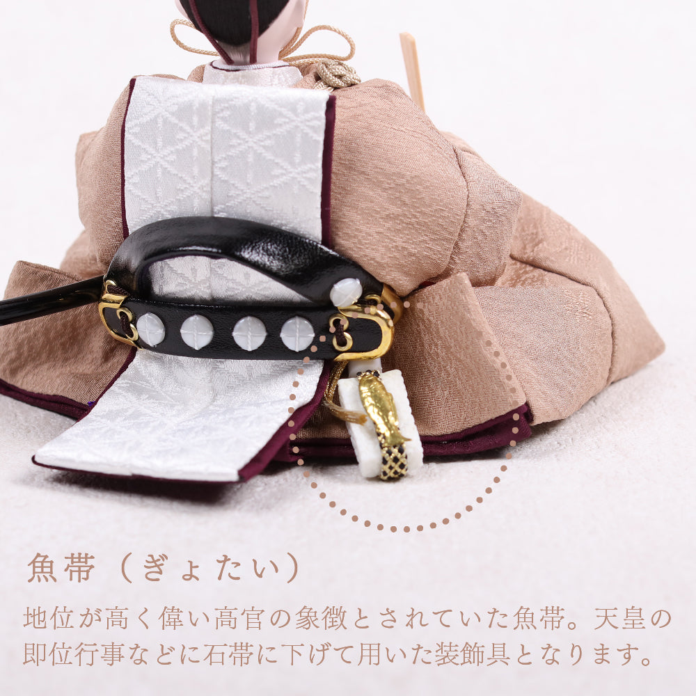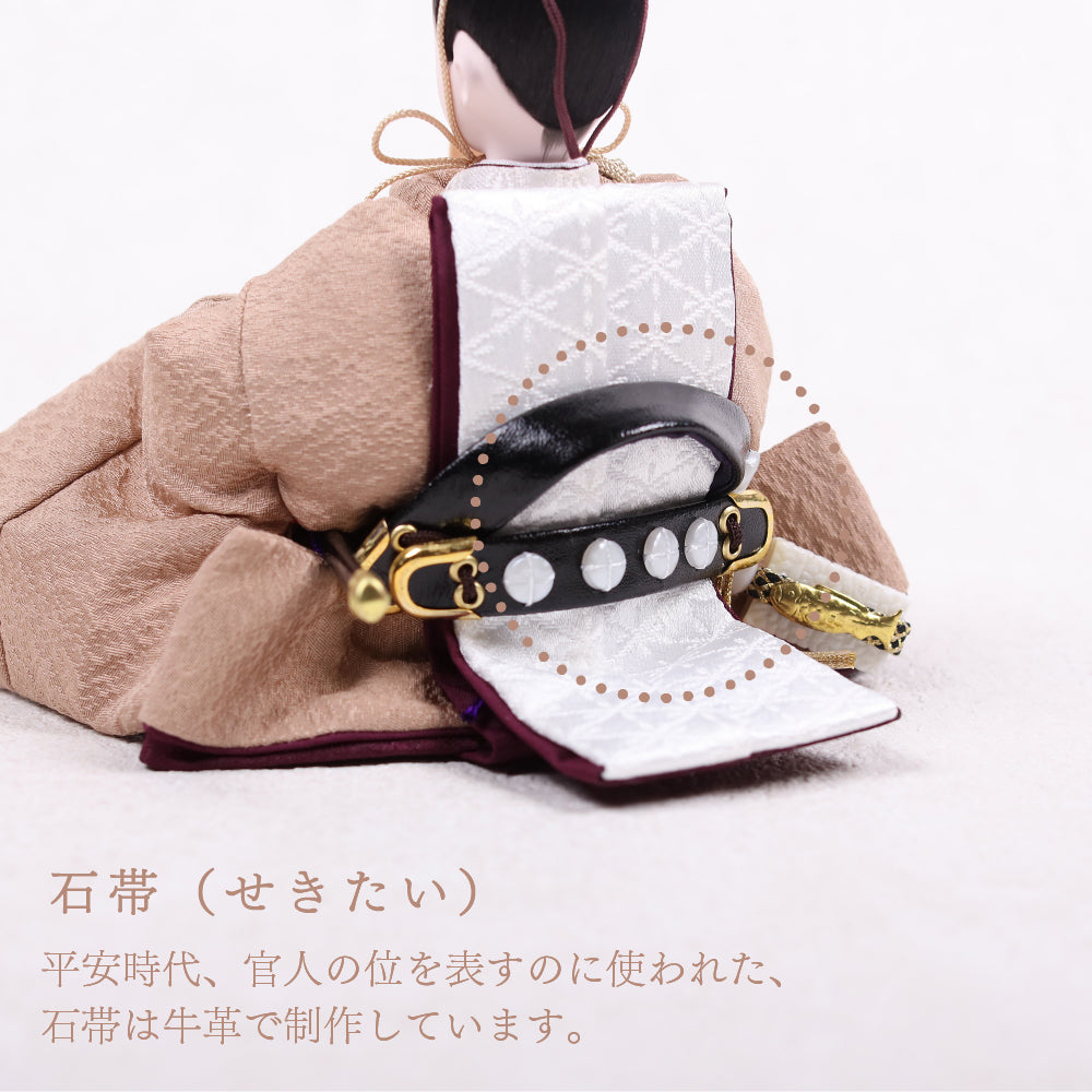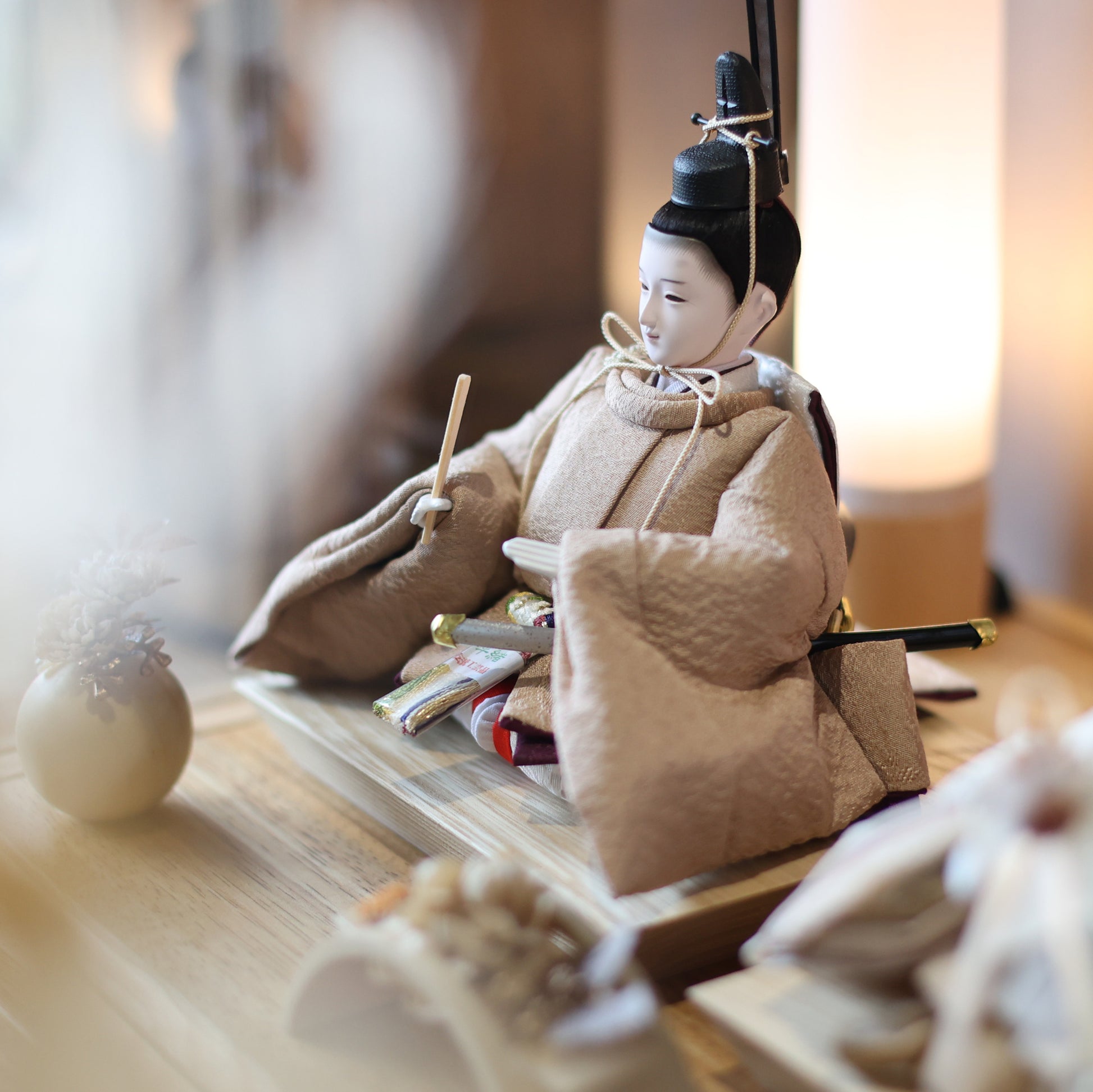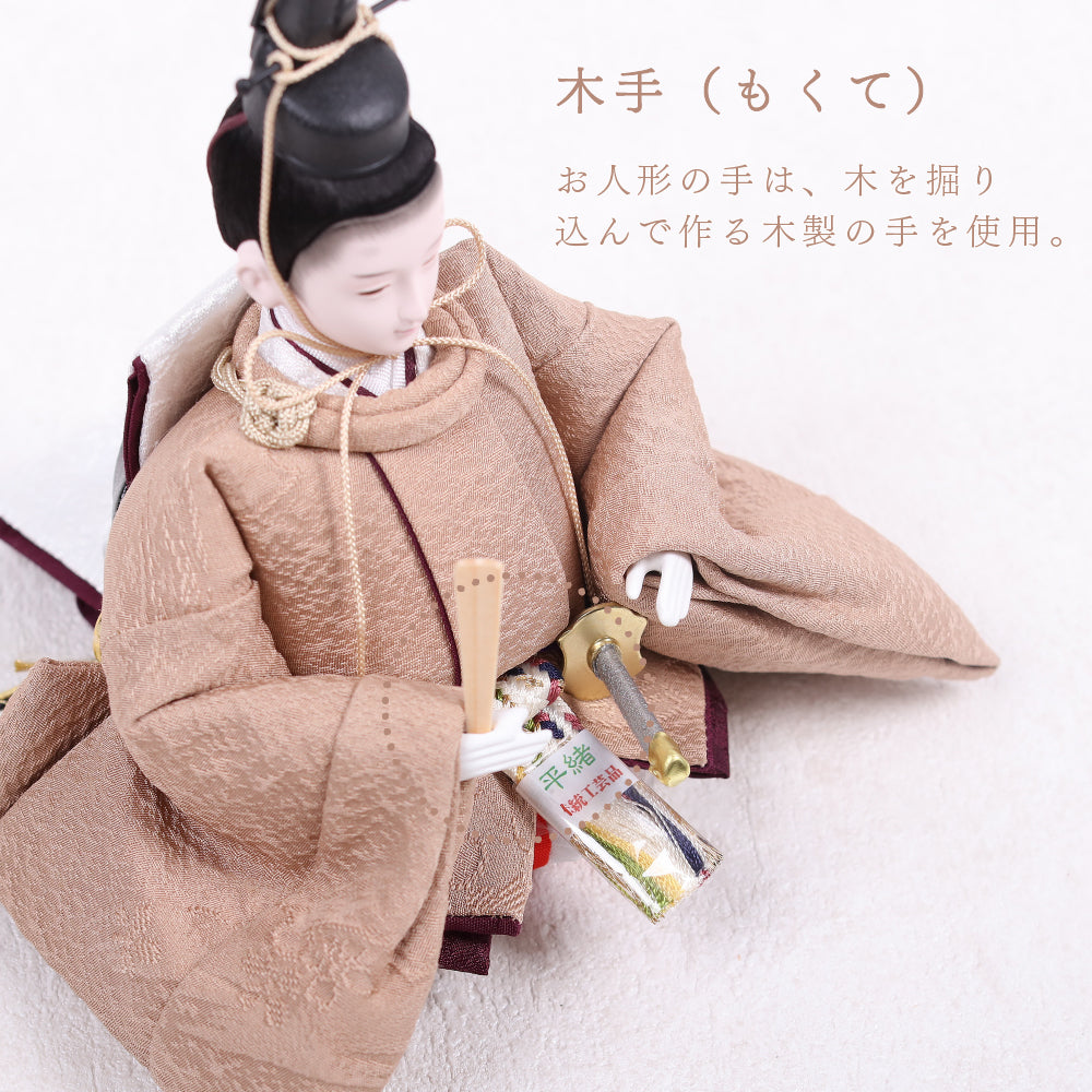 国産の栓(せん)は、美しい木目と温もりある質感が魅力の天然木です。耐久性に優れ、経年とともに味わいを深めます。台座や屏風などに使用することで、自然素材ならではの落ち着いた風合いと上質感を演出し、雛人形全体をより品格ある印象に仕上げます。