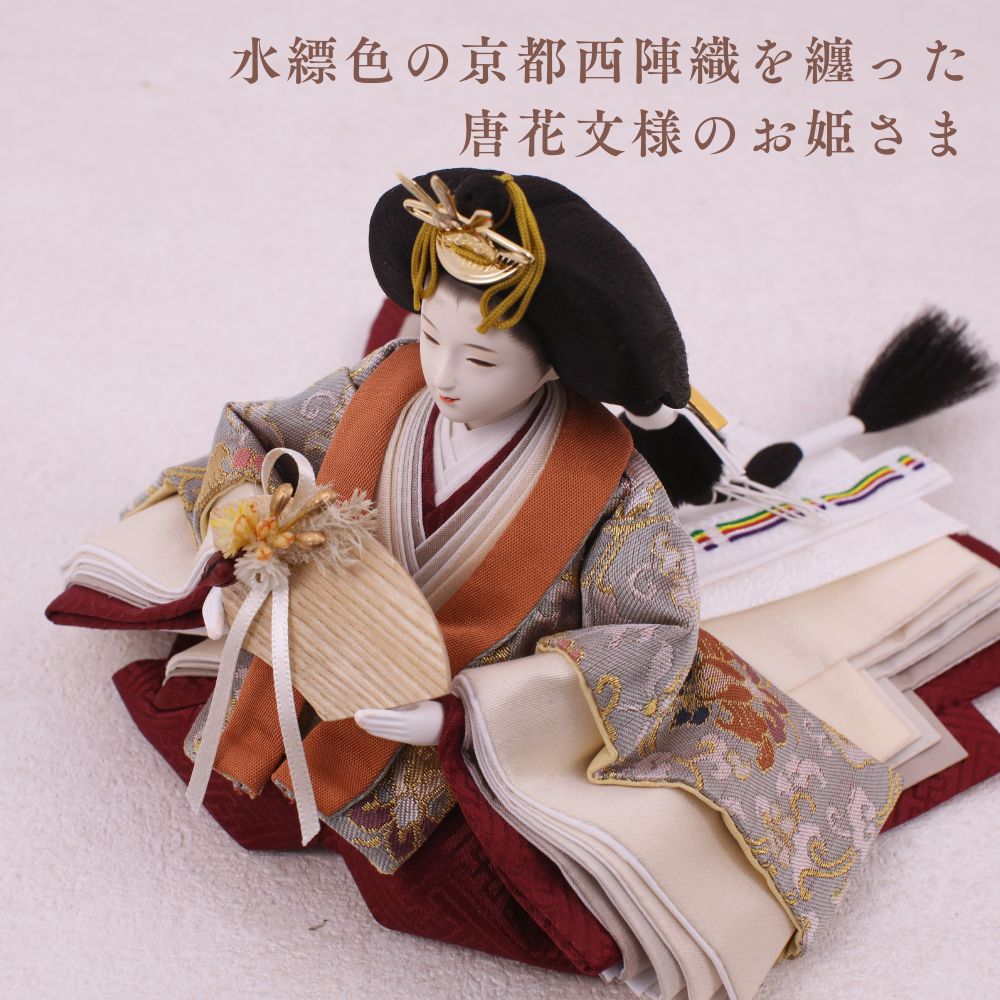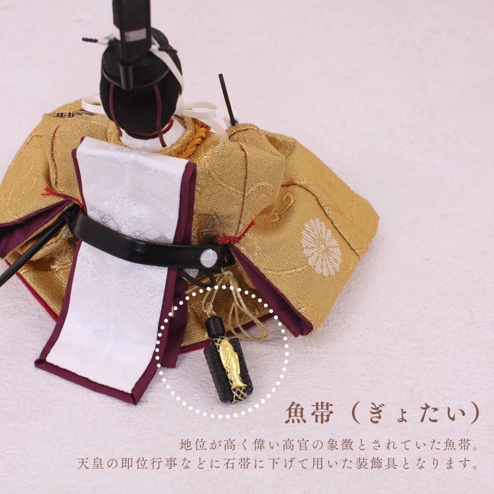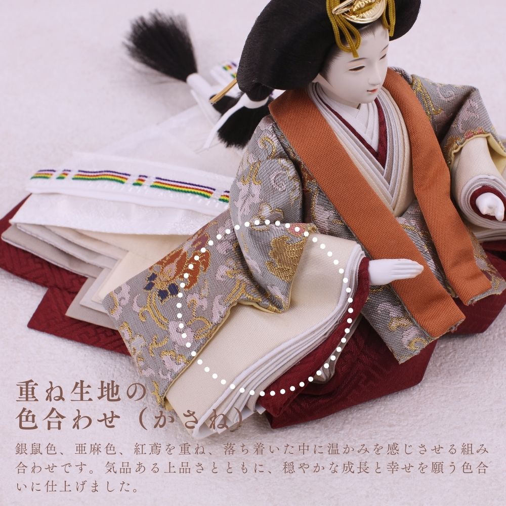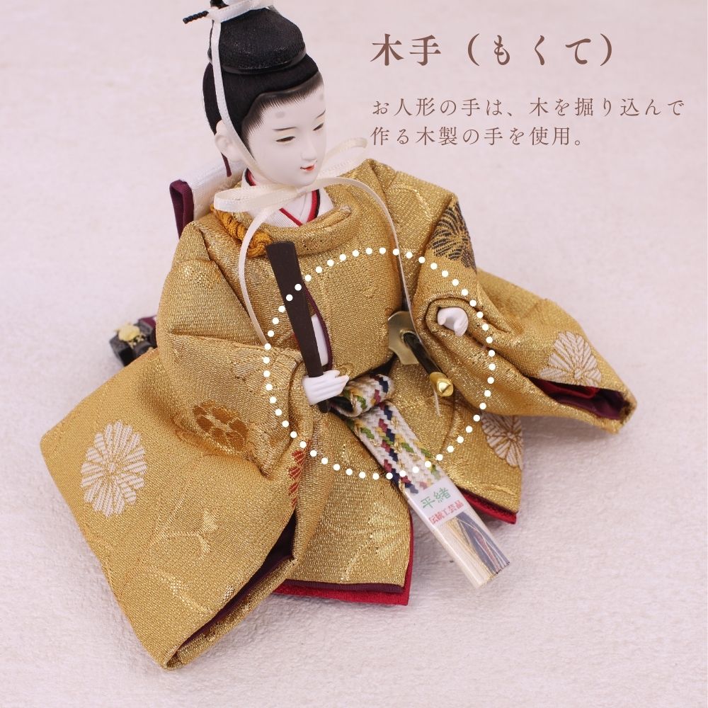国産の栓(せん)は、美しい木目と温もりある質感が魅力の天然木です。耐久性に優れ、経年とともに味わいを深めます。台座や屏風などに使用することで、自然素材ならではの落ち着いた風合いと上質感を演出し、雛人形全体をより品格ある印象に仕上げます。