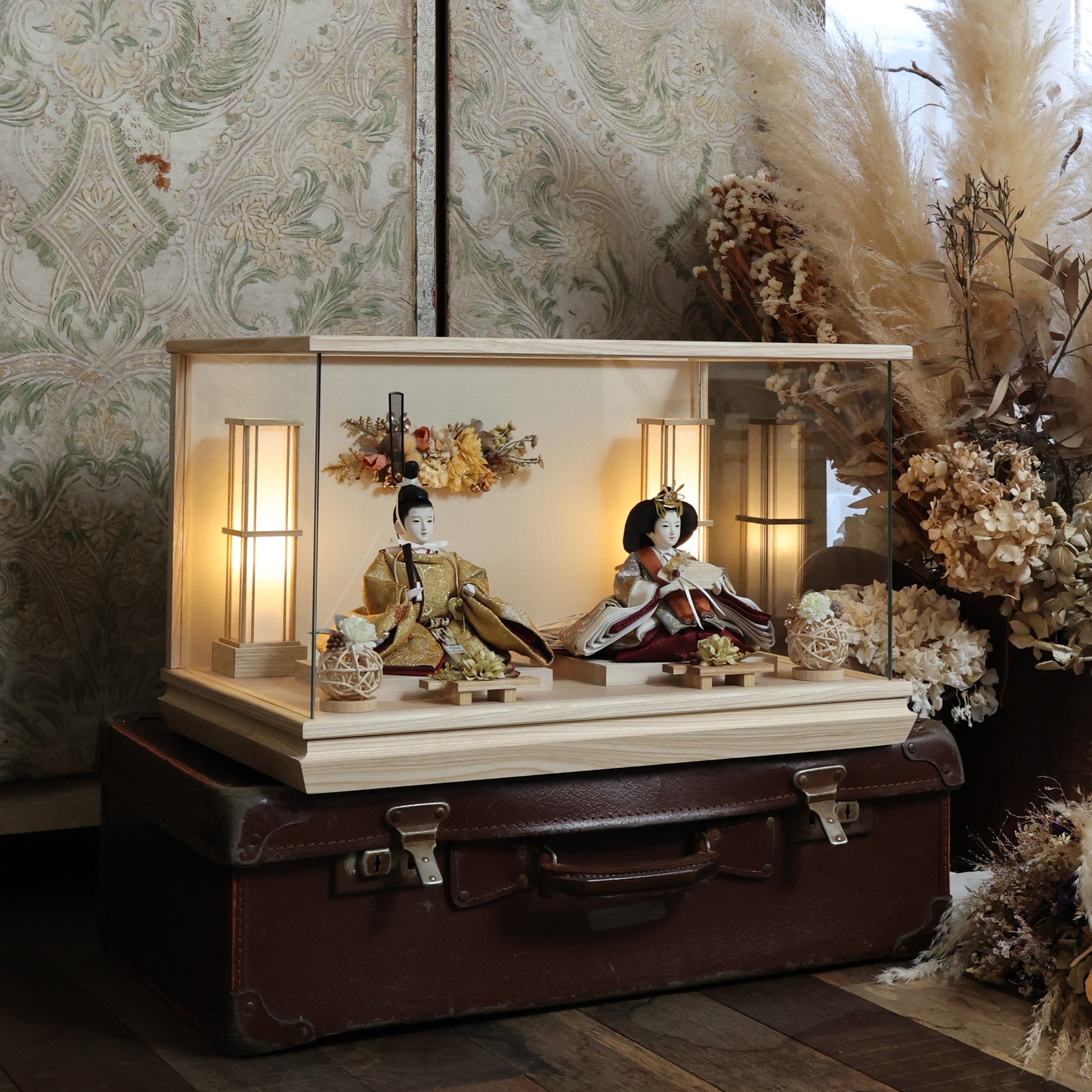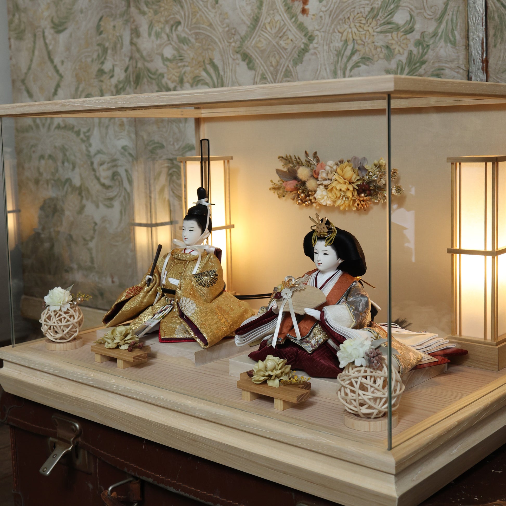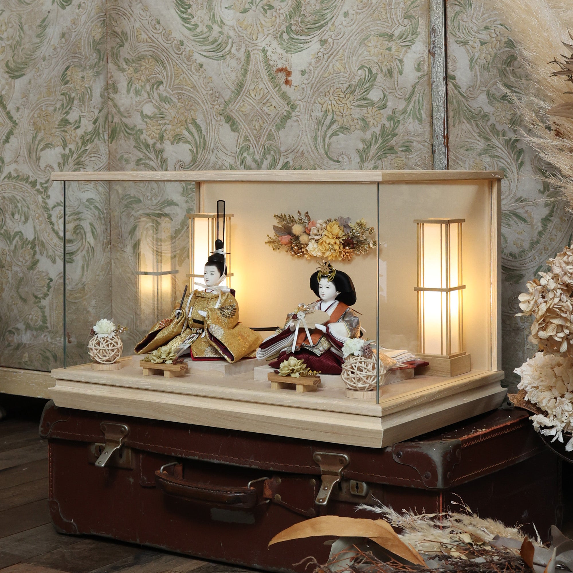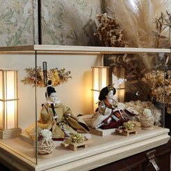 通常2mm厚が一般的な中、当店ではより高品質なAGC製3mmガラスを採用しています。厚みが増すことで強度と安全性が高まり、透明度の高いクリアな美しさを保ちます。大切な雛人形を守りながら、高級感のある見栄えを実現しています。