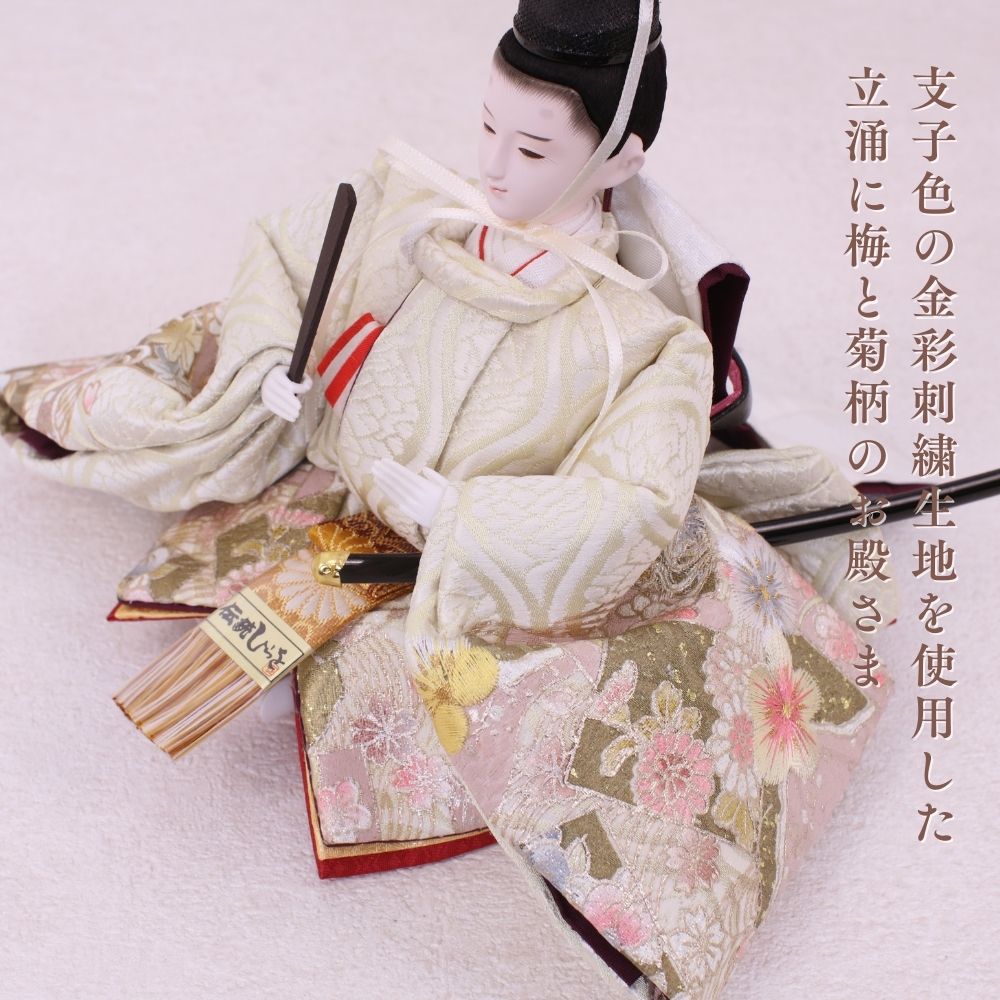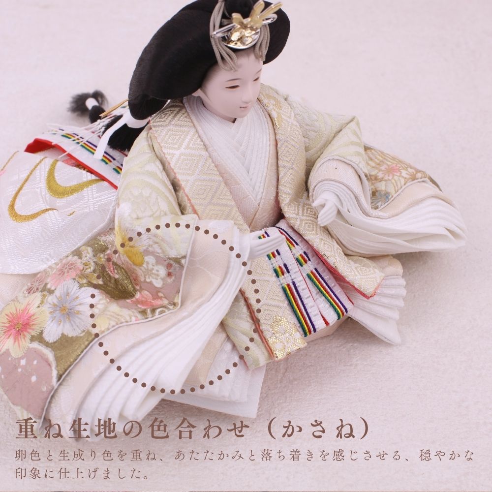 国産の栓(せん)は、美しい木目と温もりある質感が魅力の天然木です。耐久性に優れ、経年とともに味わいを深めます。台座や屏風などに使用することで、自然素材ならではの落ち着いた風合いと上質感を演出し、雛人形全体をより品格ある印象に仕上げます。