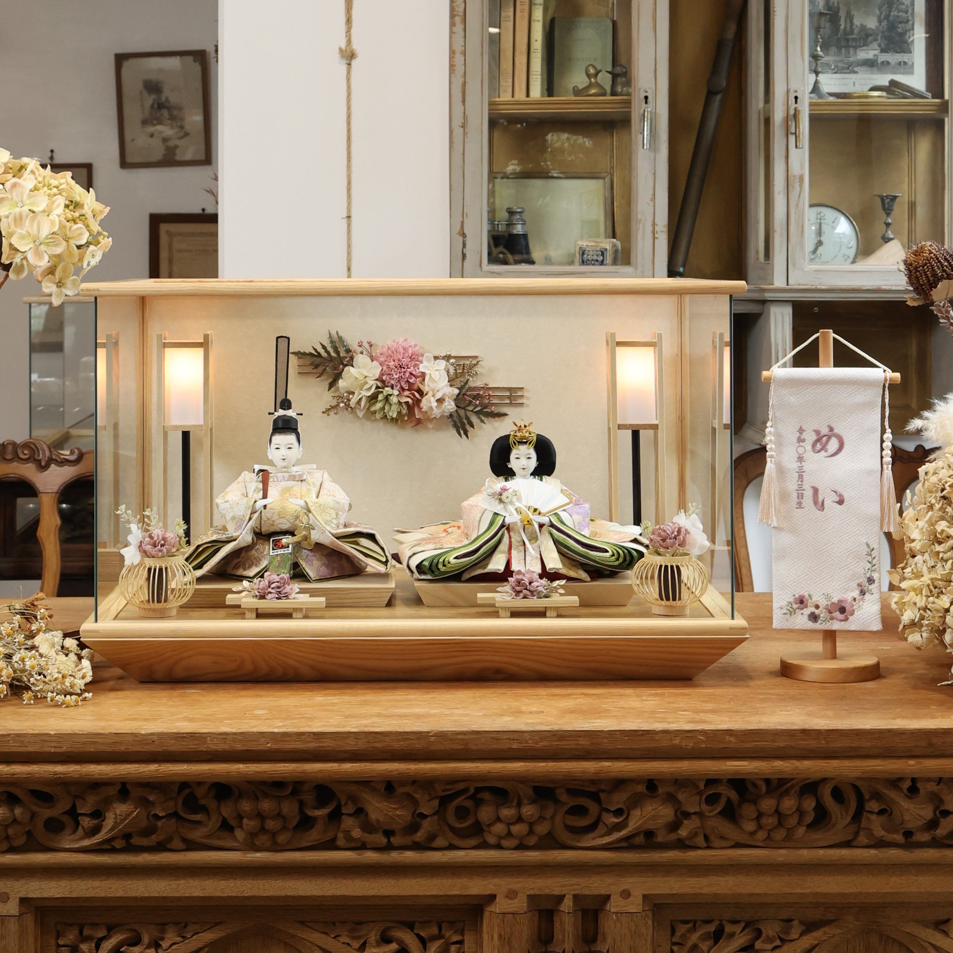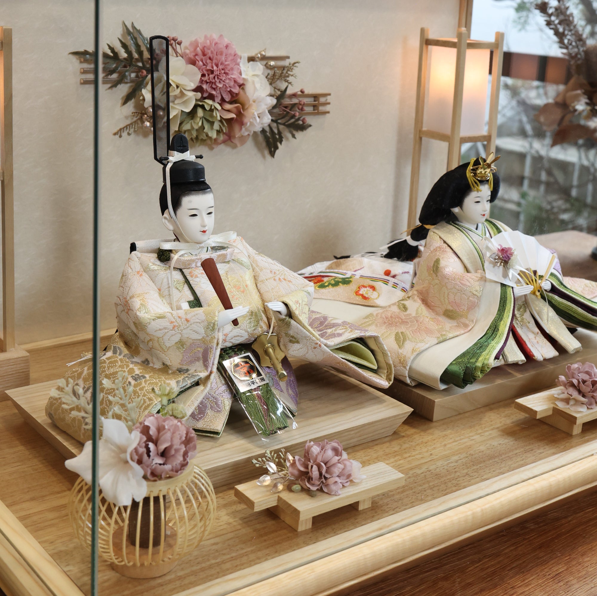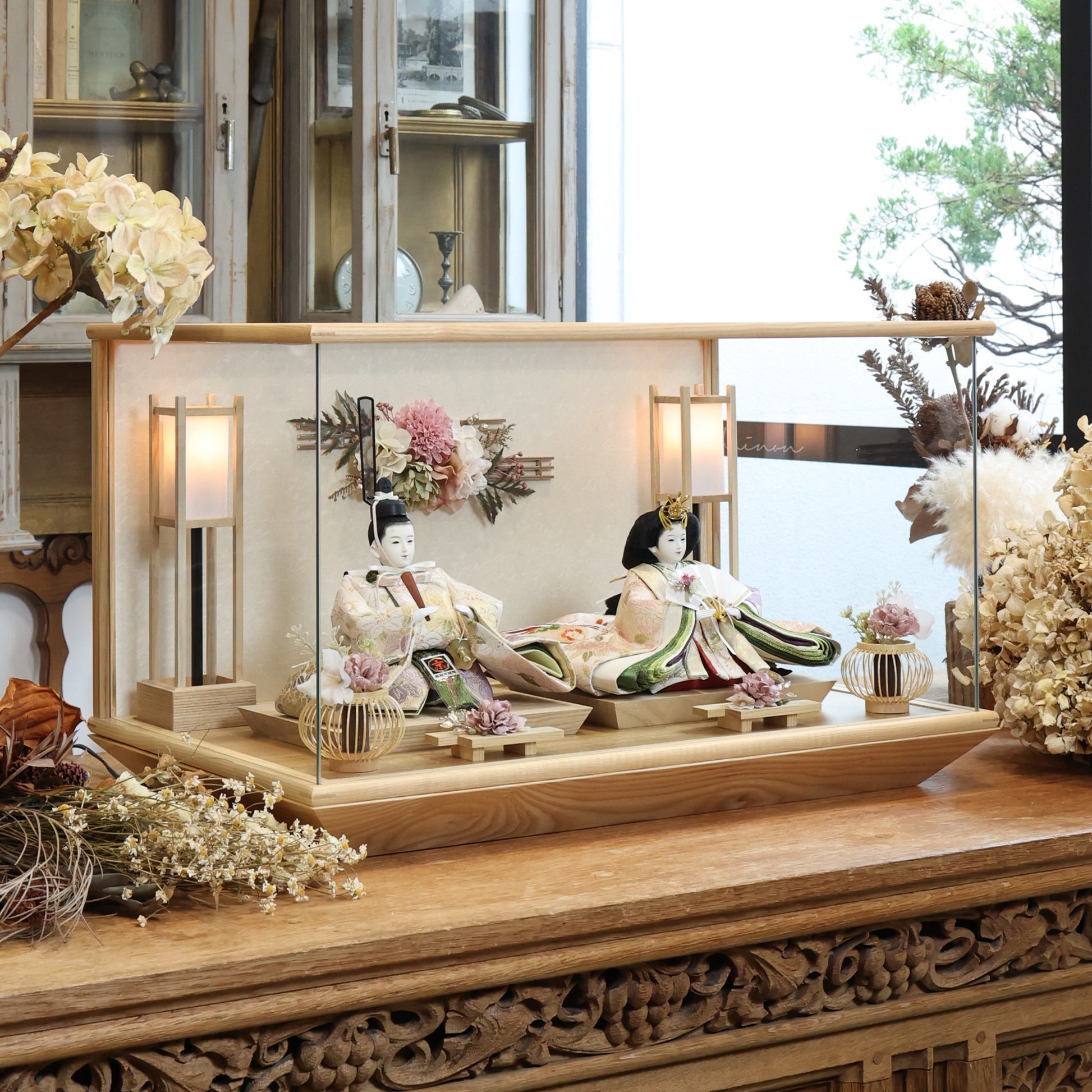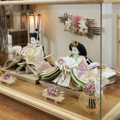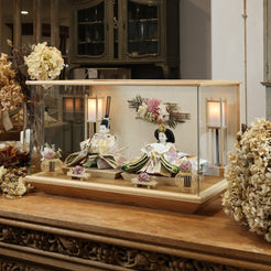 通常2mm厚が一般的な中、当店ではより高品質なAGC製3mmガラスを採用しています。厚みが増すことで強度と安全性が高まり、透明度の高いクリアな美しさを保ちます。大切な雛人形を守りながら、高級感のある見栄えを実現しています。