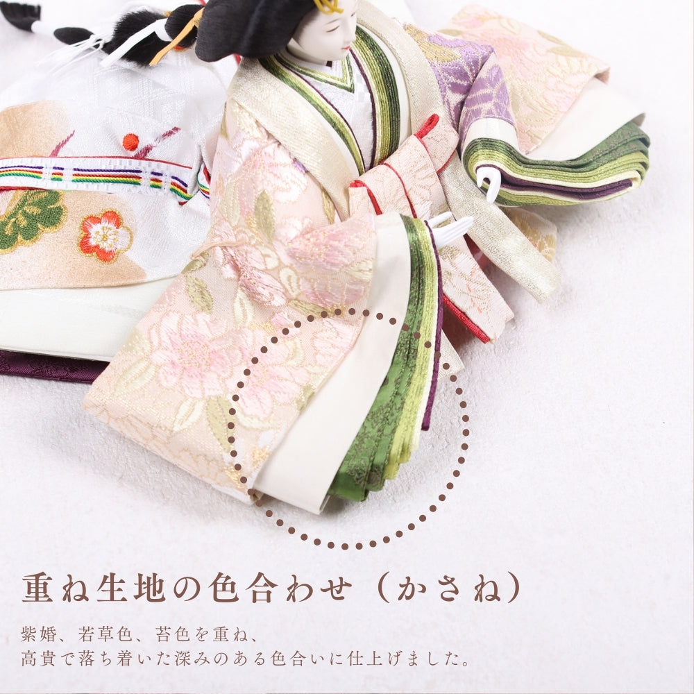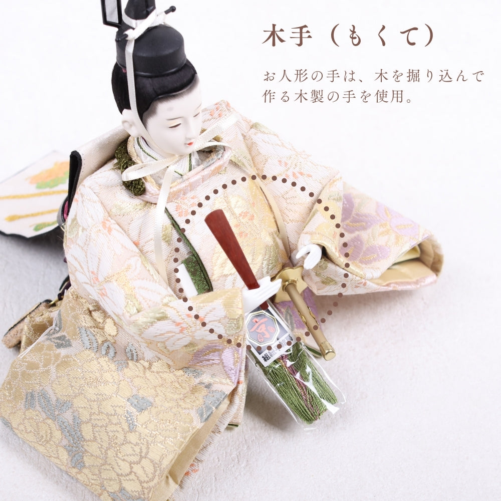 国産の栓(せん)は、美しい木目と温もりある質感が魅力の天然木です。耐久性に優れ、経年とともに味わいを深めます。台座や屏風などに使用することで、自然素材ならではの落ち着いた風合いと上質感を演出し、雛人形全体をより品格ある印象に仕上げます。