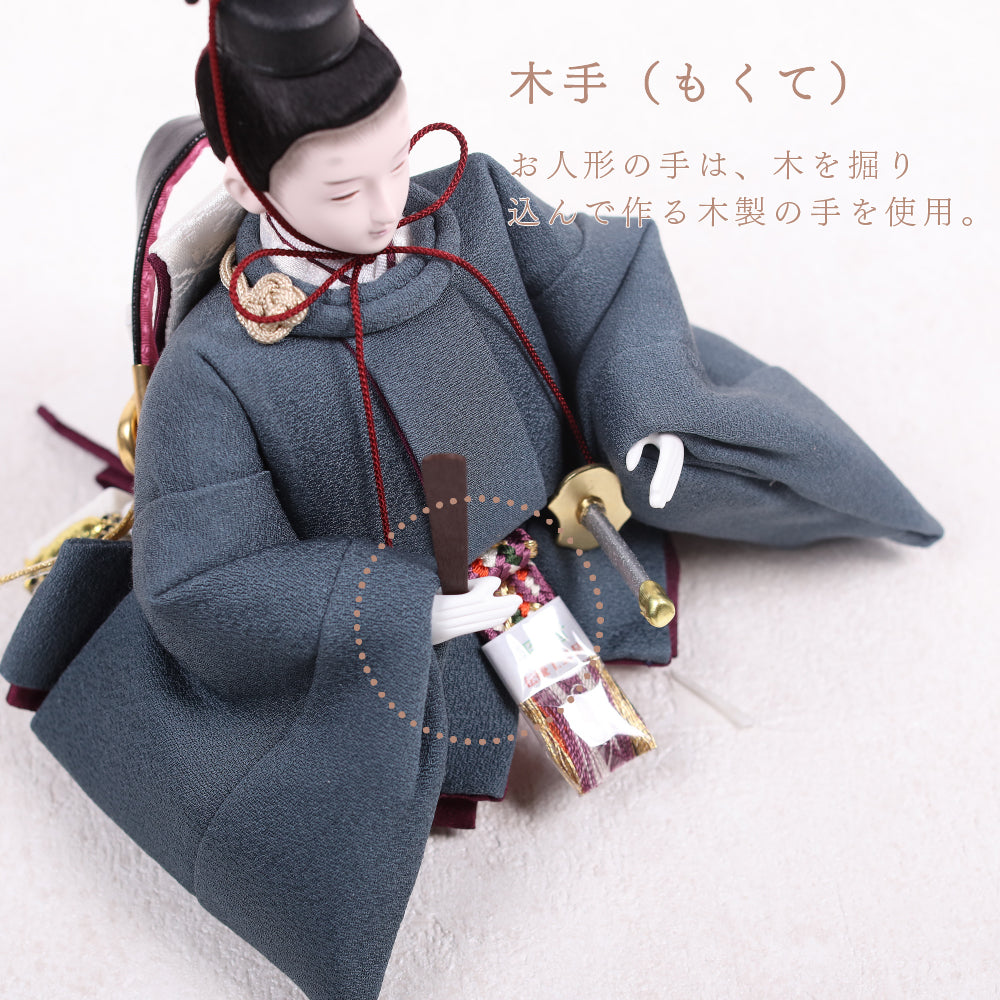 国産の栓(せん)は、美しい木目と温もりある質感が魅力の天然木です。耐久性に優れ、経年とともに味わいを深めます。台座や屏風などに使用することで、自然素材ならではの落ち着いた風合いと上質感を演出し、雛人形全体をより品格ある印象に仕上げます。