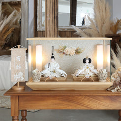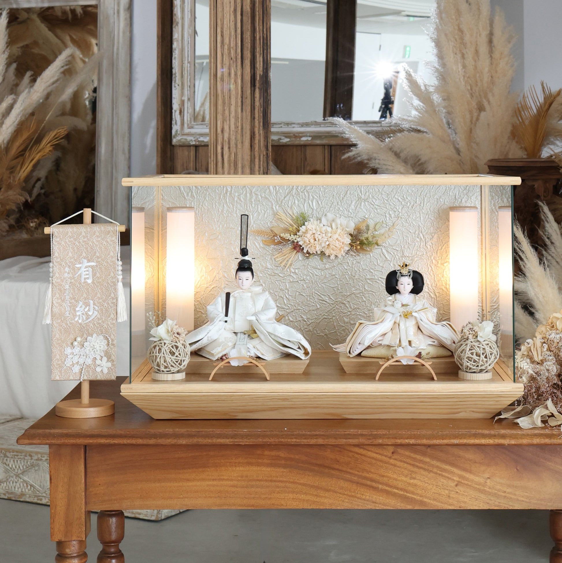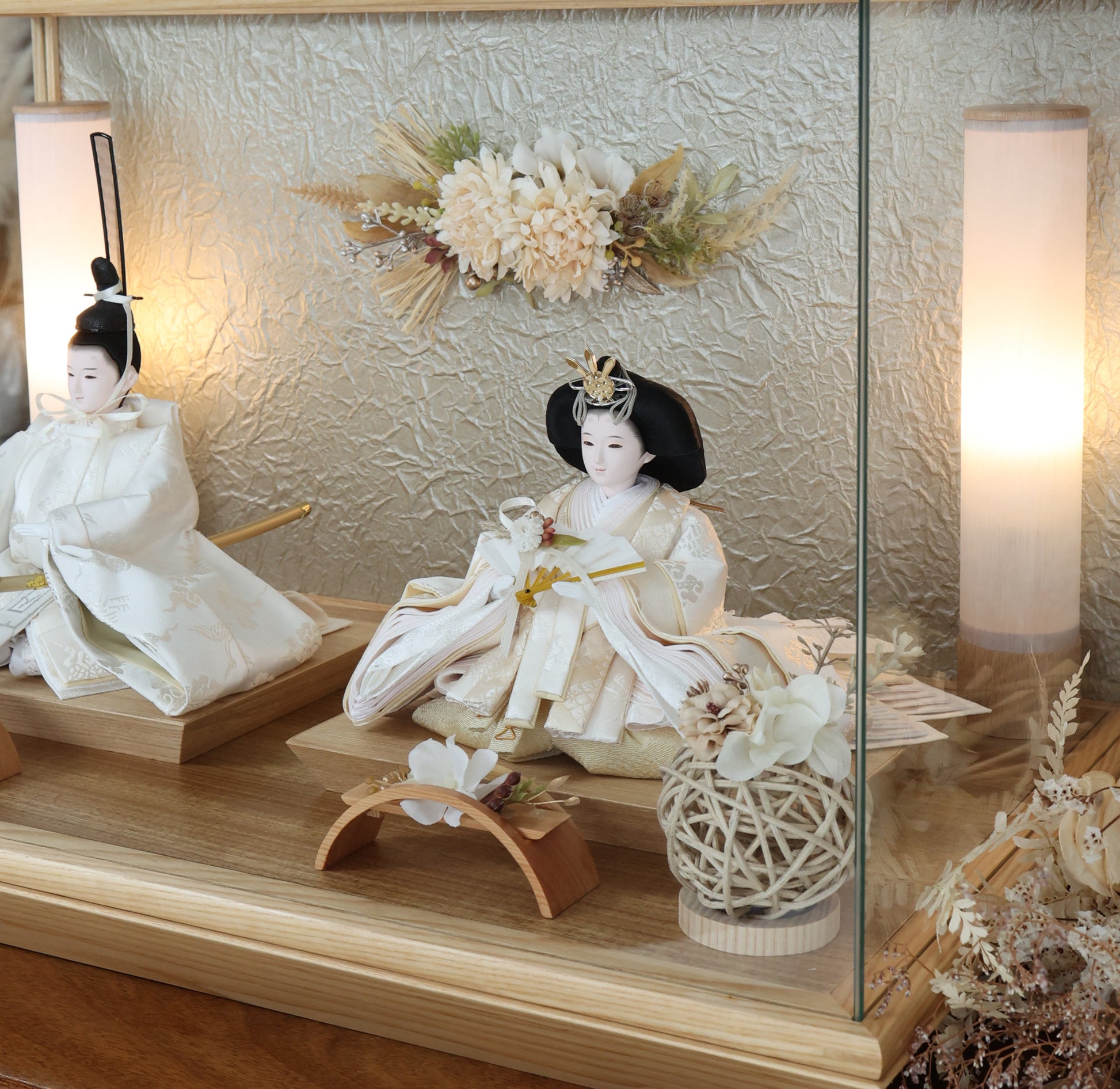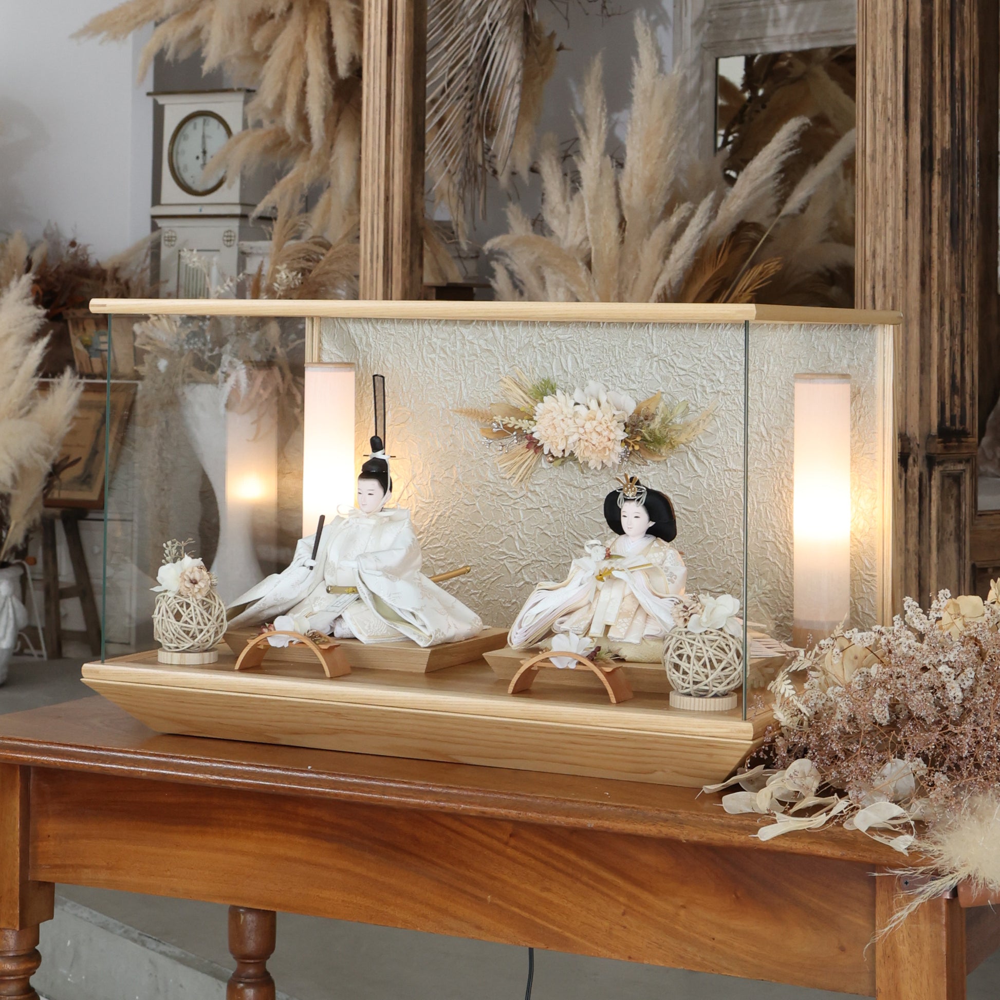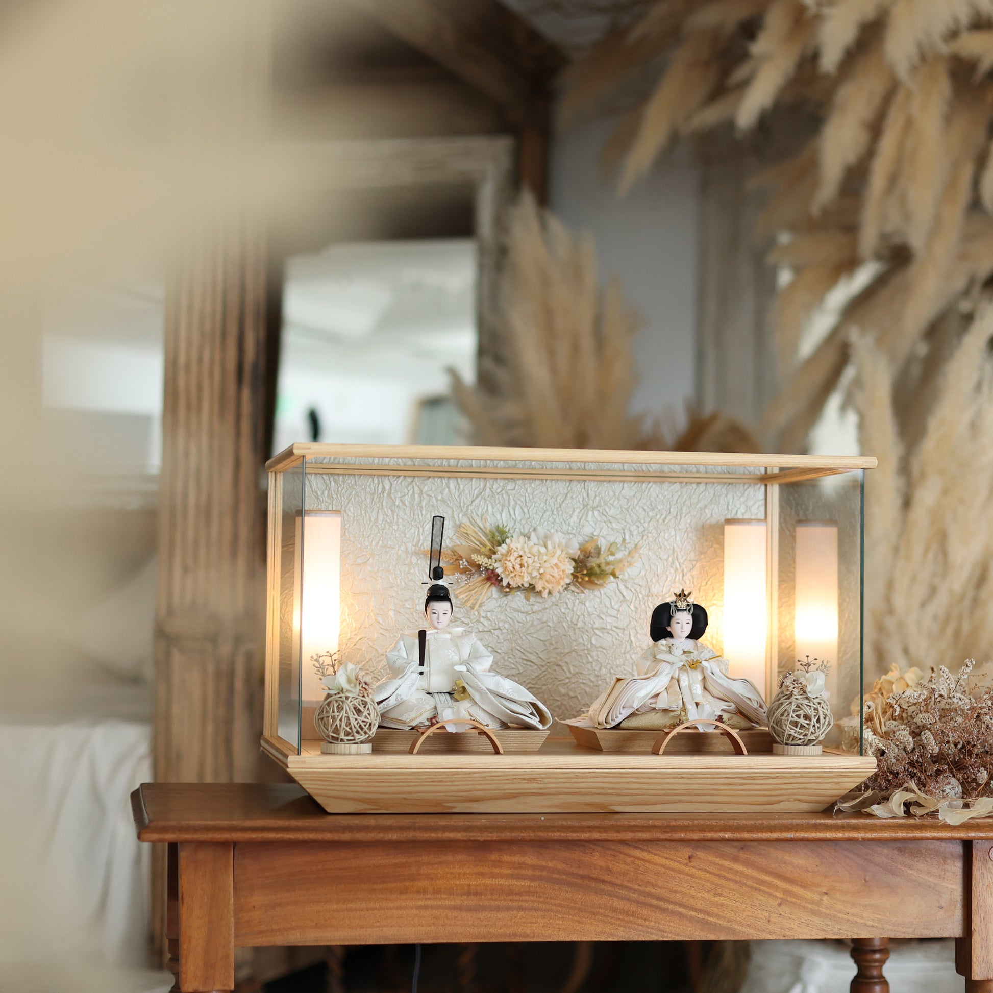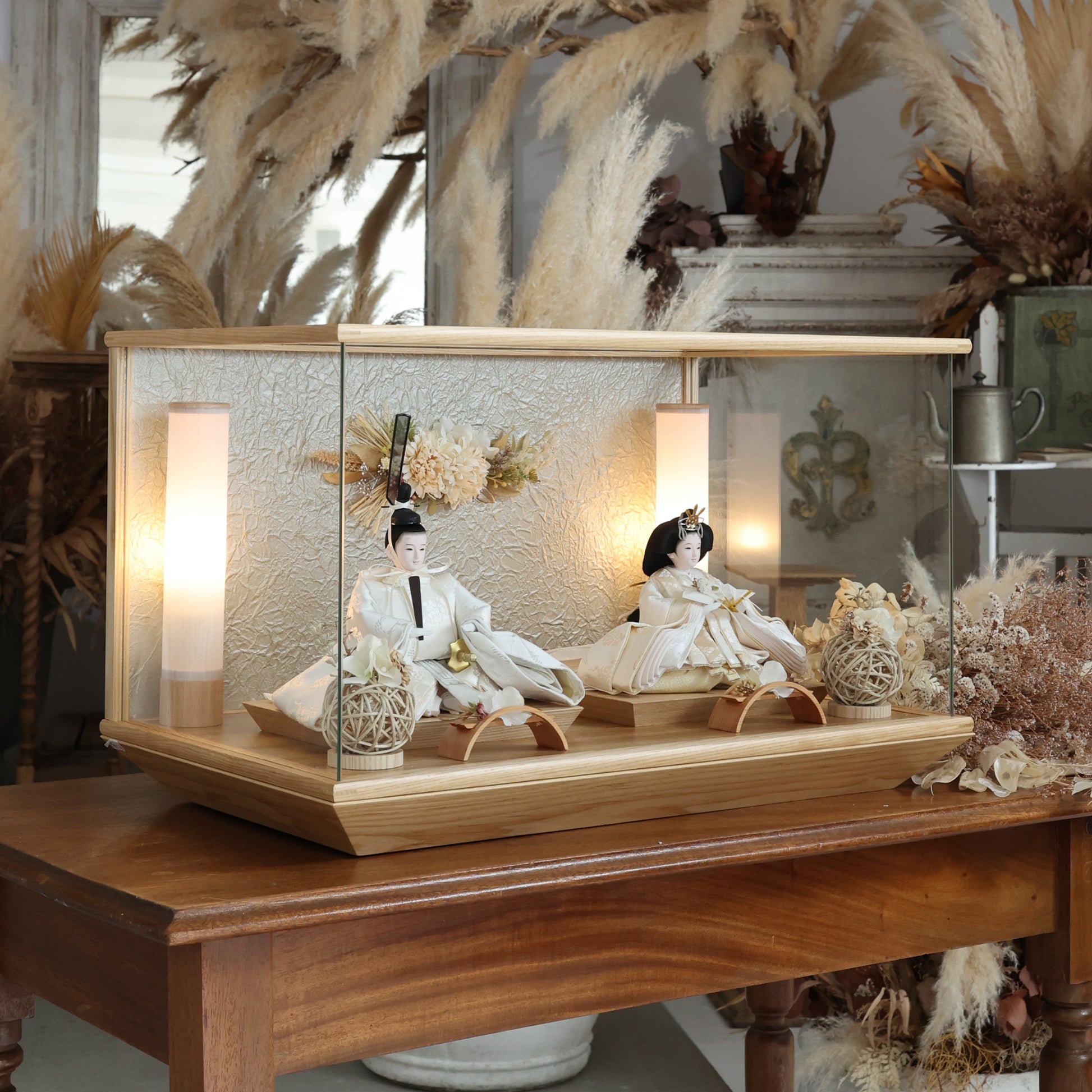 通常2mm厚が一般的な中、当店ではより高品質なAGC製3mmガラスを採用しています。厚みが増すことで強度と安全性が高まり、透明度の高いクリアな美しさを保ちます。大切な雛人形を守りながら、高級感のある見栄えを実現しています。