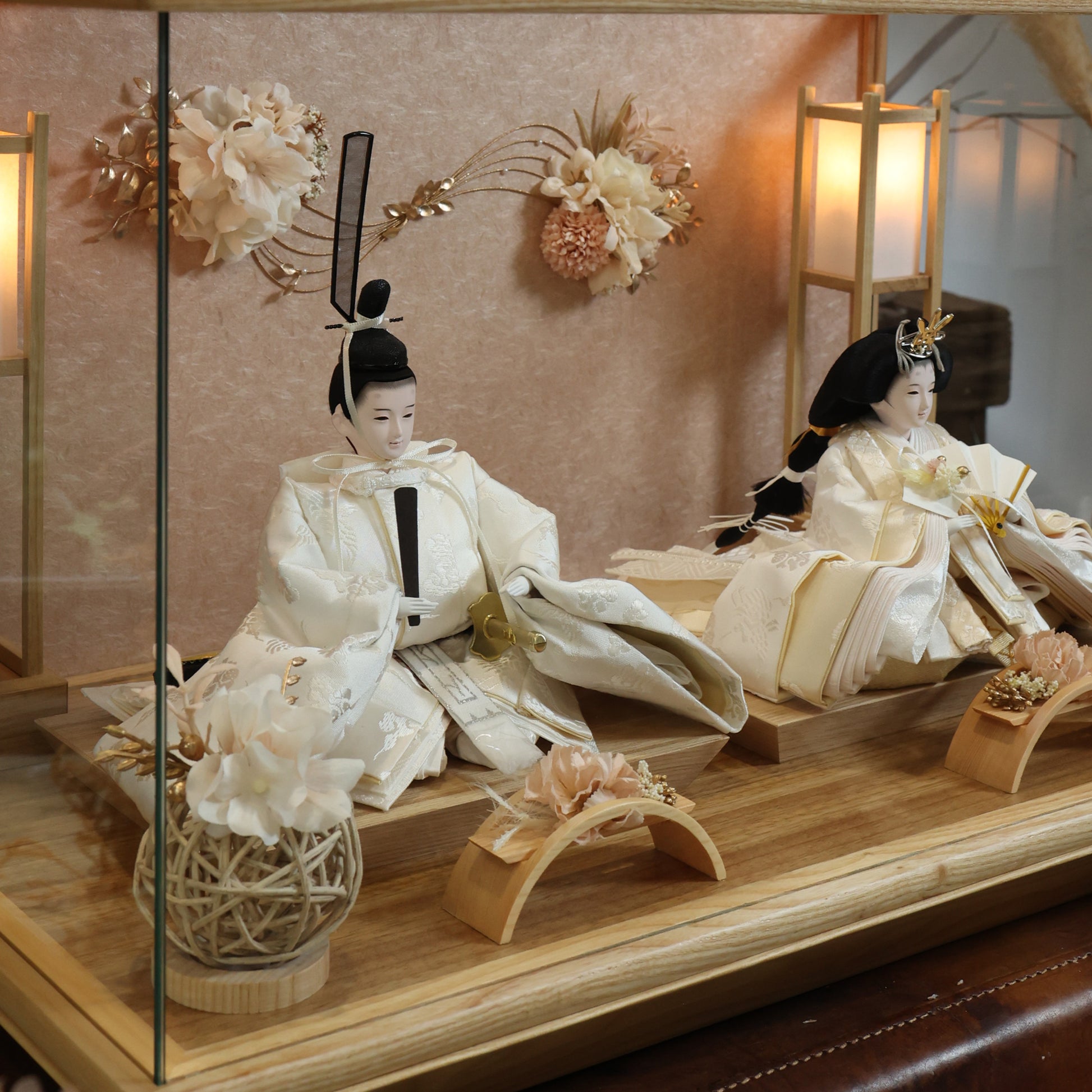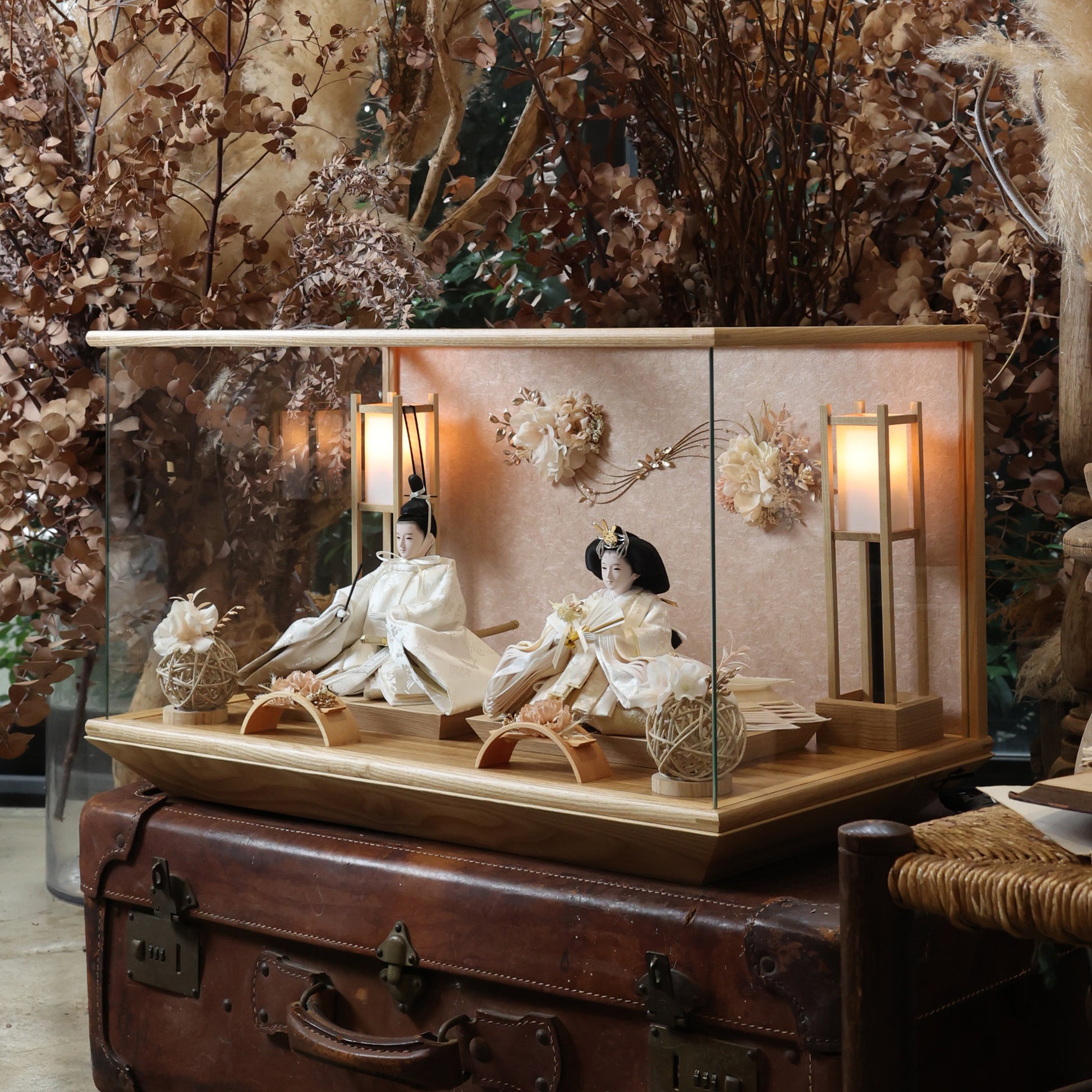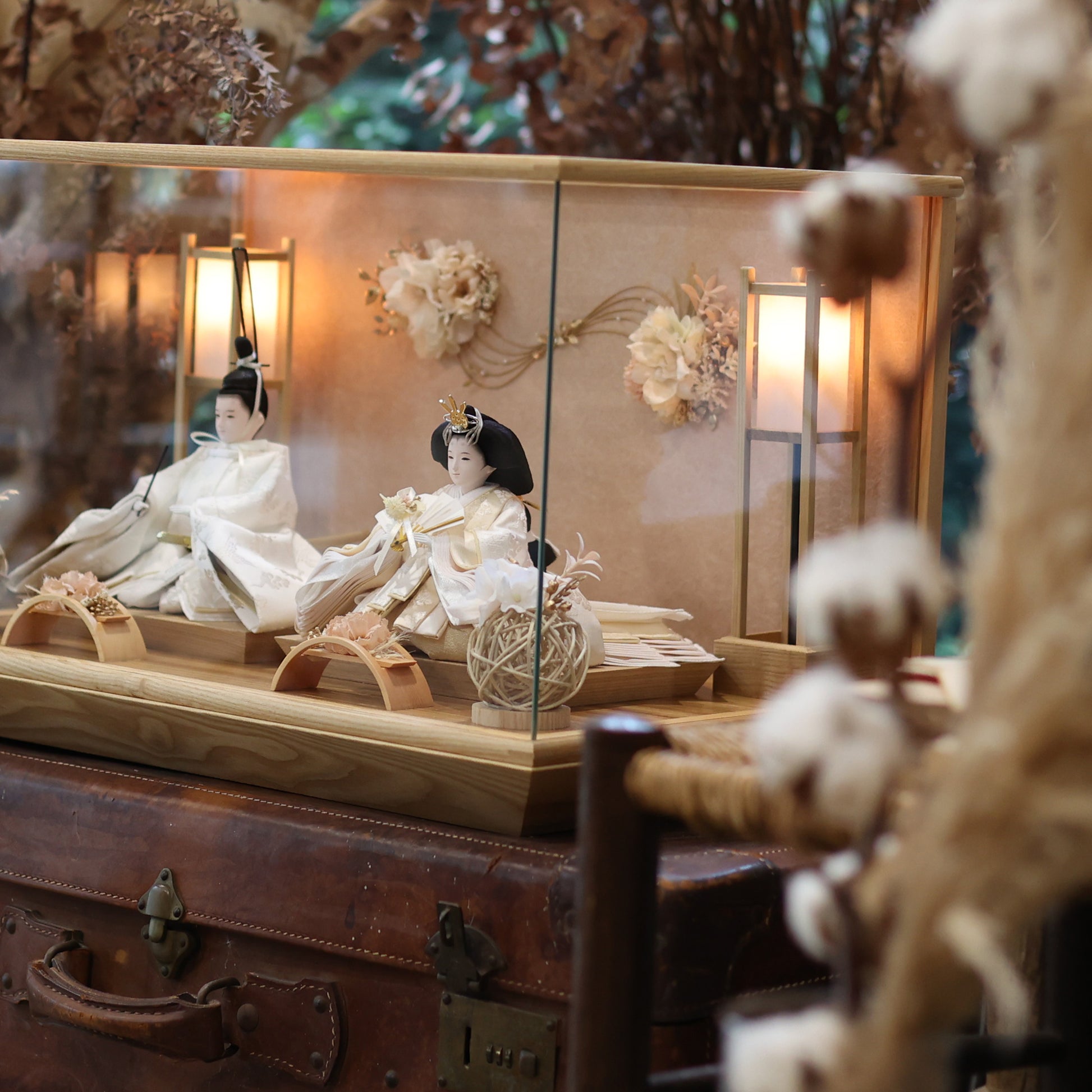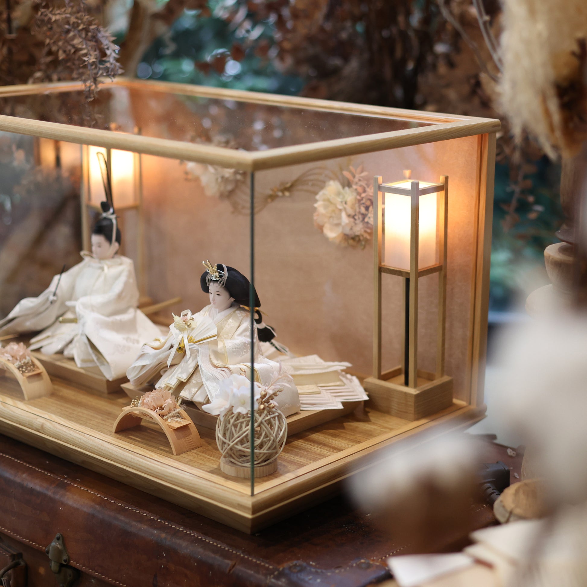 通常2mm厚が一般的な中、当店ではより高品質なAGC製3mmガラスを採用しています。厚みが増すことで強度と安全性が高まり、透明度の高いクリアな美しさを保ちます。大切な雛人形を守りながら、高級感のある見栄えを実現しています。