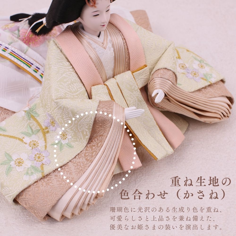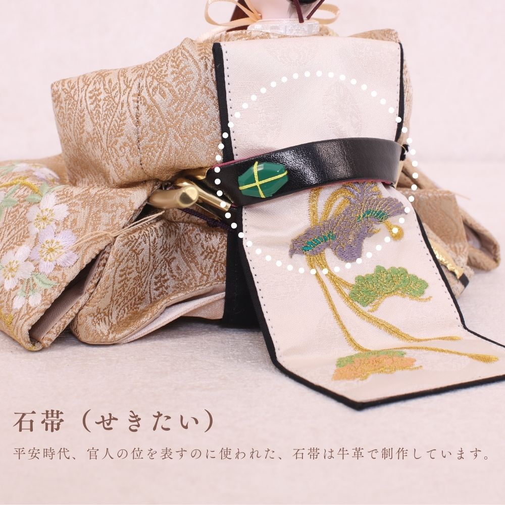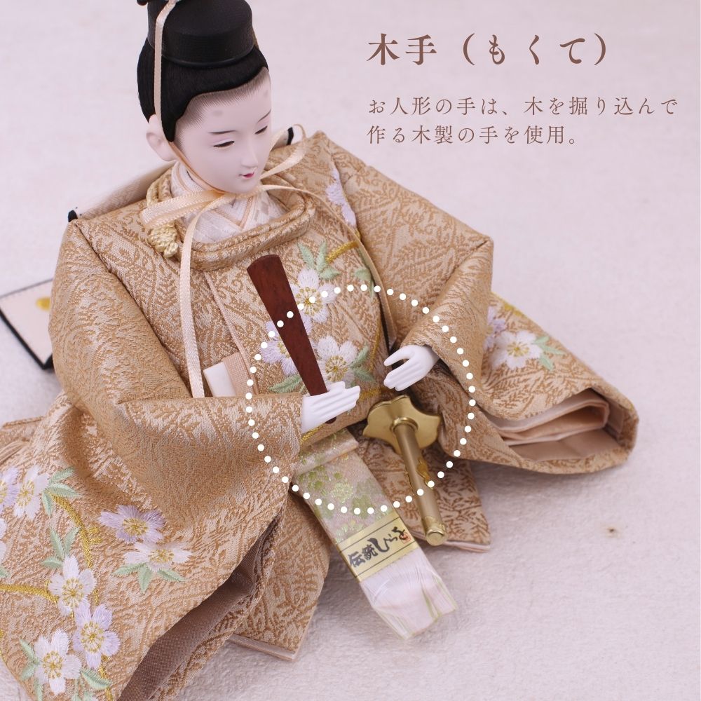 国産の栓(せん)は、美しい木目と温もりある質感が魅力の天然木です。耐久性に優れ、経年とともに味わいを深めます。台座や屏風などに使用することで、自然素材ならではの落ち着いた風合いと上質感を演出し、雛人形全体をより品格ある印象に仕上げます。