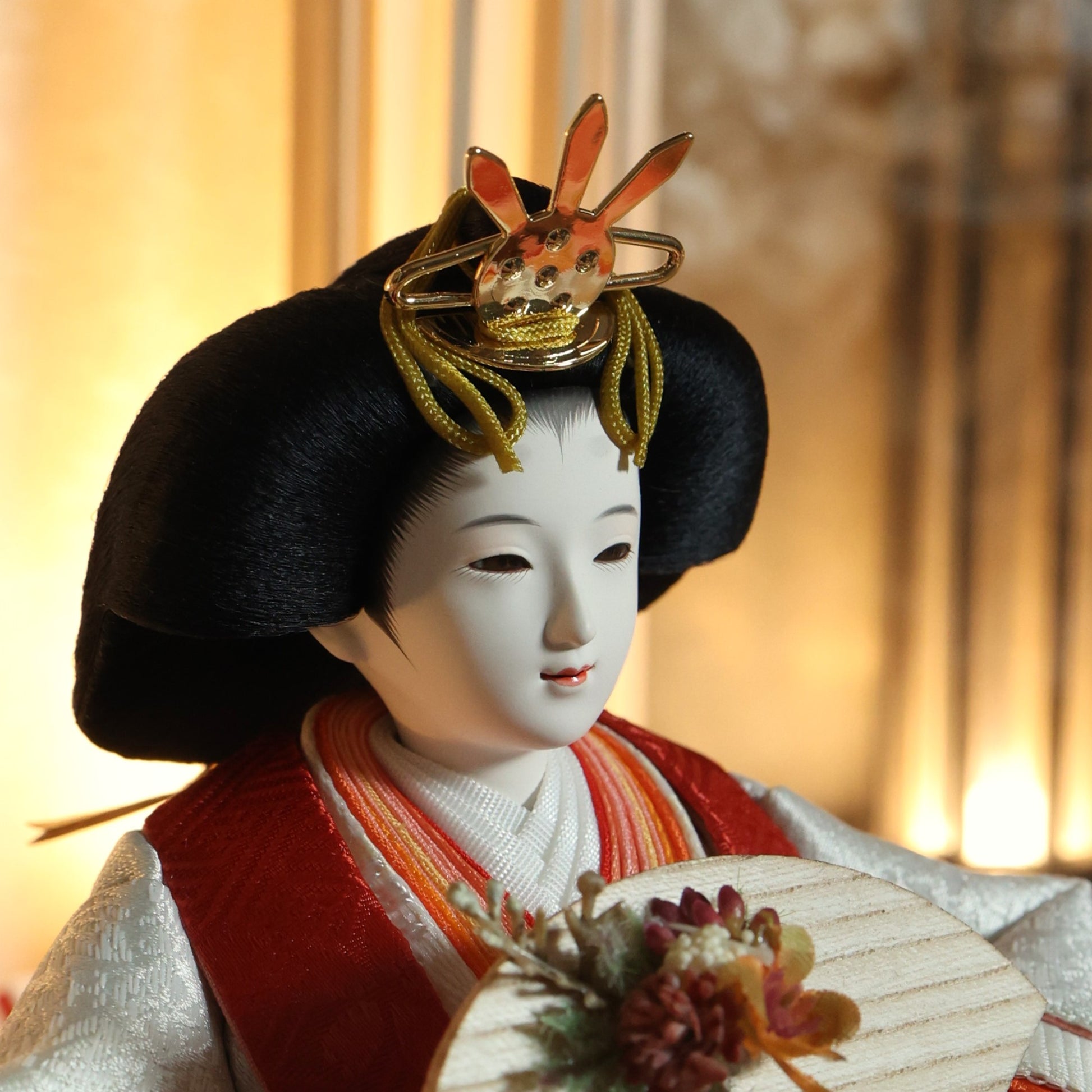 国産の栓(せん)は、美しい木目と温もりある質感が魅力の天然木です。耐久性に優れ、経年とともに味わいを深めます。台座や屏風などに使用することで、自然素材ならではの落ち着いた風合いと上質感を演出し、雛人形全体をより品格ある印象に仕上げます。