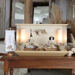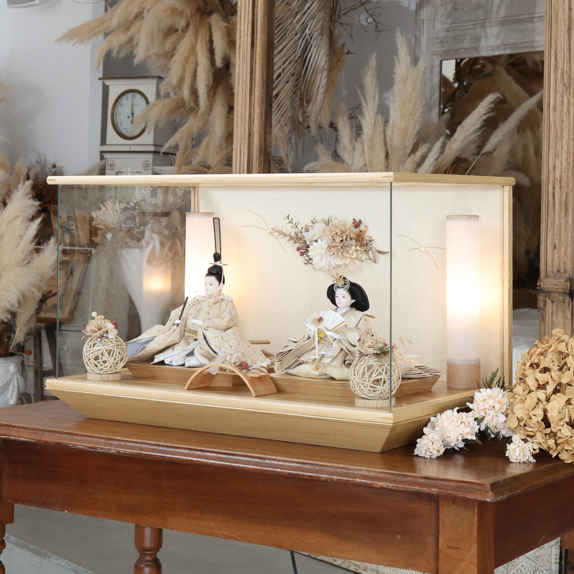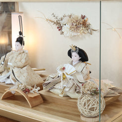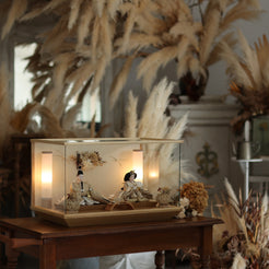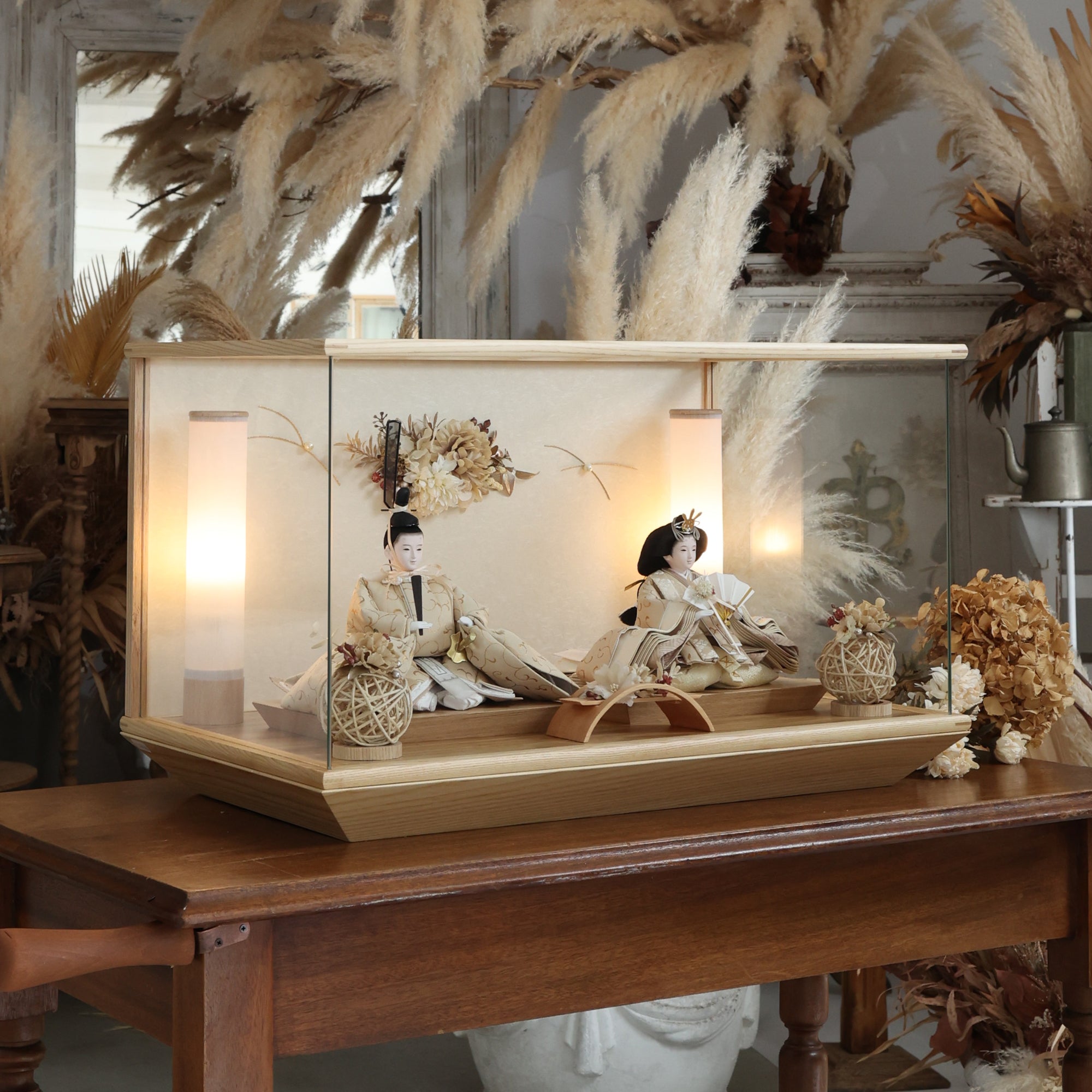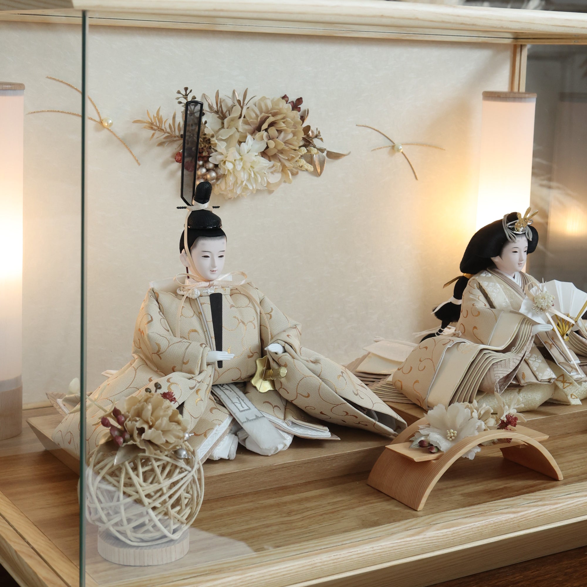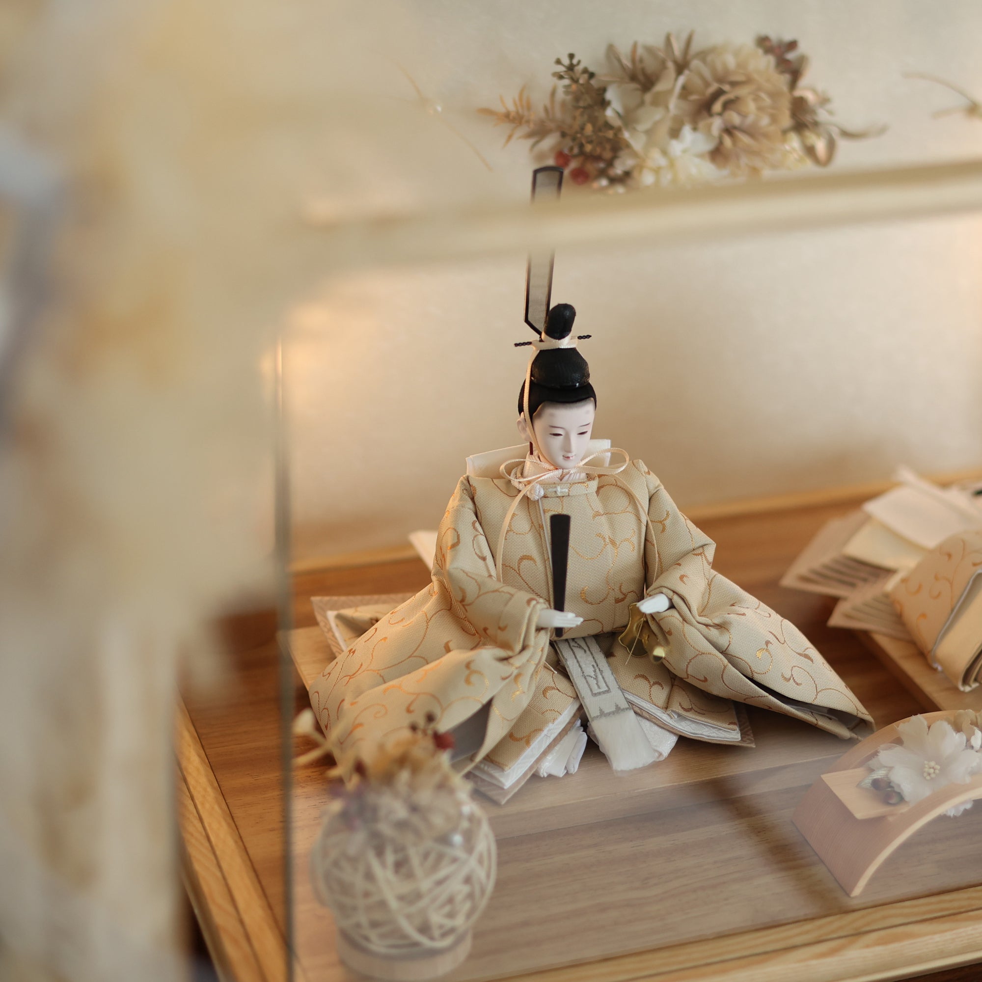 通常2mm厚が一般的な中、当店ではより高品質なAGC製3mmガラスを採用しています。厚みが増すことで強度と安全性が高まり、透明度の高いクリアな美しさを保ちます。大切な雛人形を守りながら、高級感のある見栄えを実現しています。