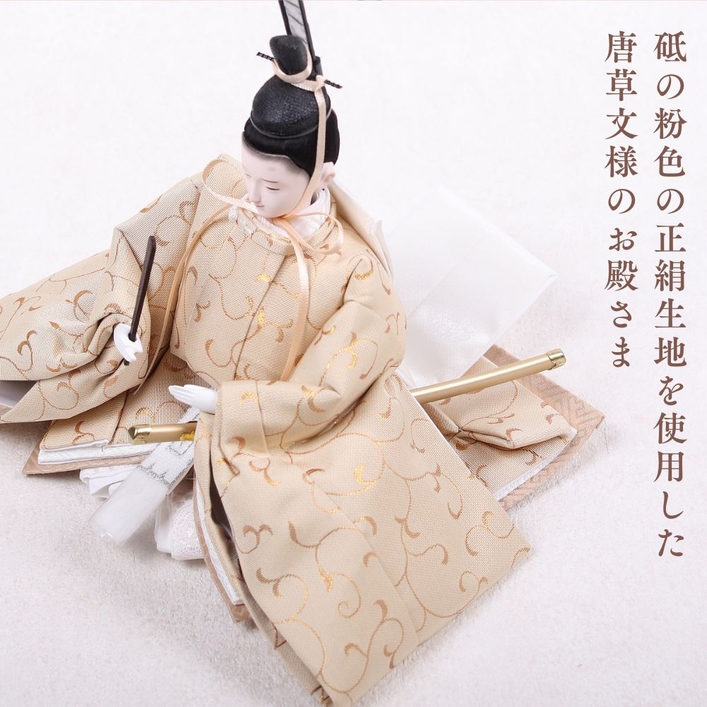 砥の粉色の正絹生地を使用した唐草文様のお殿さま