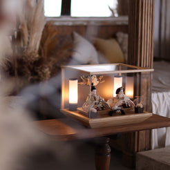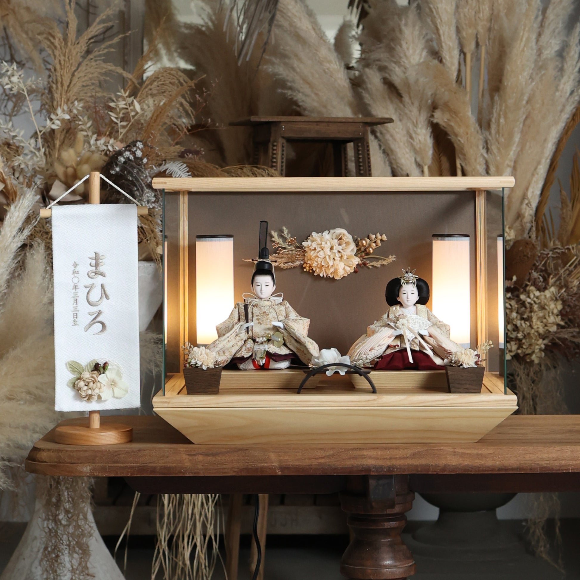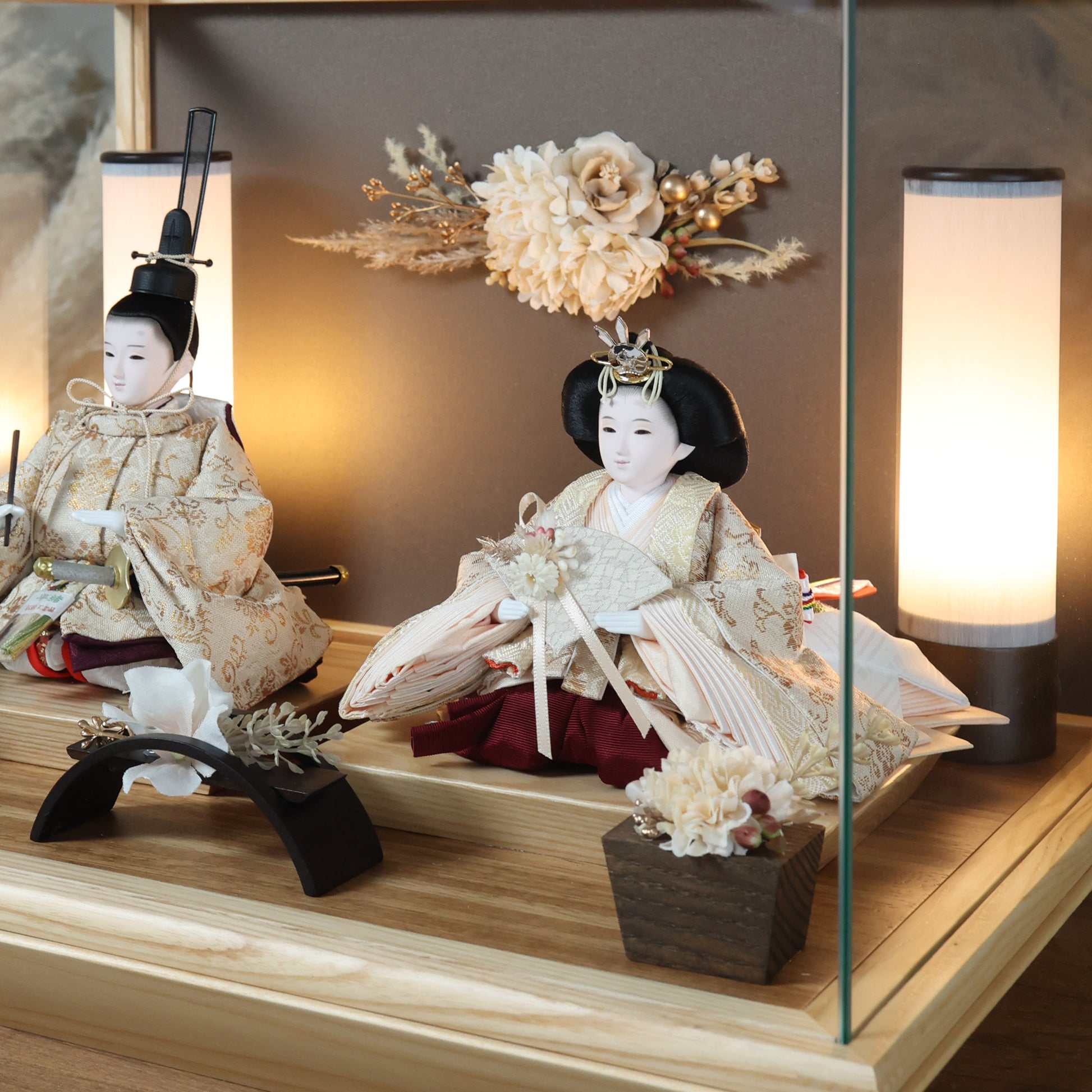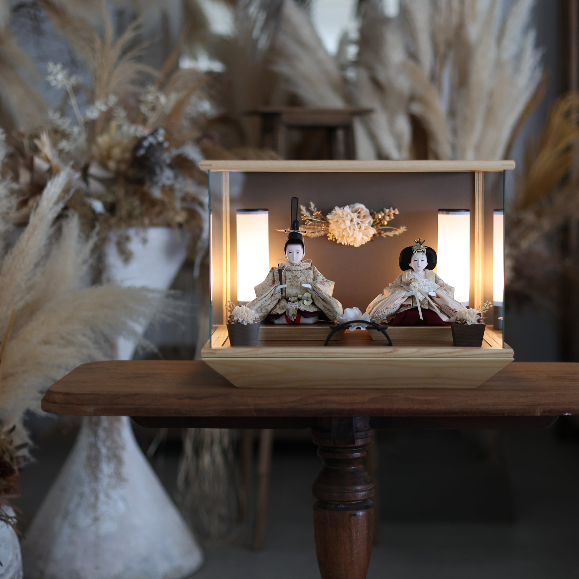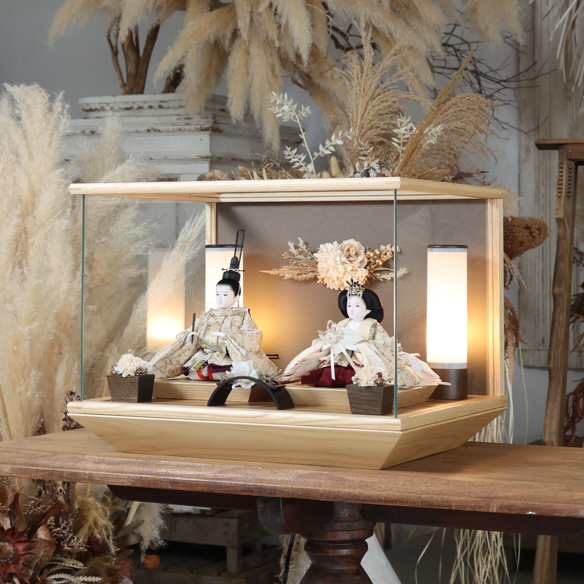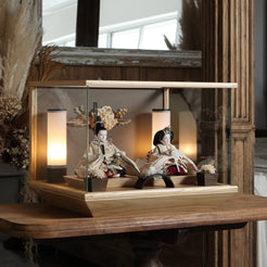 通常2mm厚が一般的な中、当店ではより高品質なAGC製3mmガラスを採用しています。厚みが増すことで強度と安全性が高まり、透明度の高いクリアな美しさを保ちます。大切な雛人形を守りながら、高級感のある見栄えを実現しています。