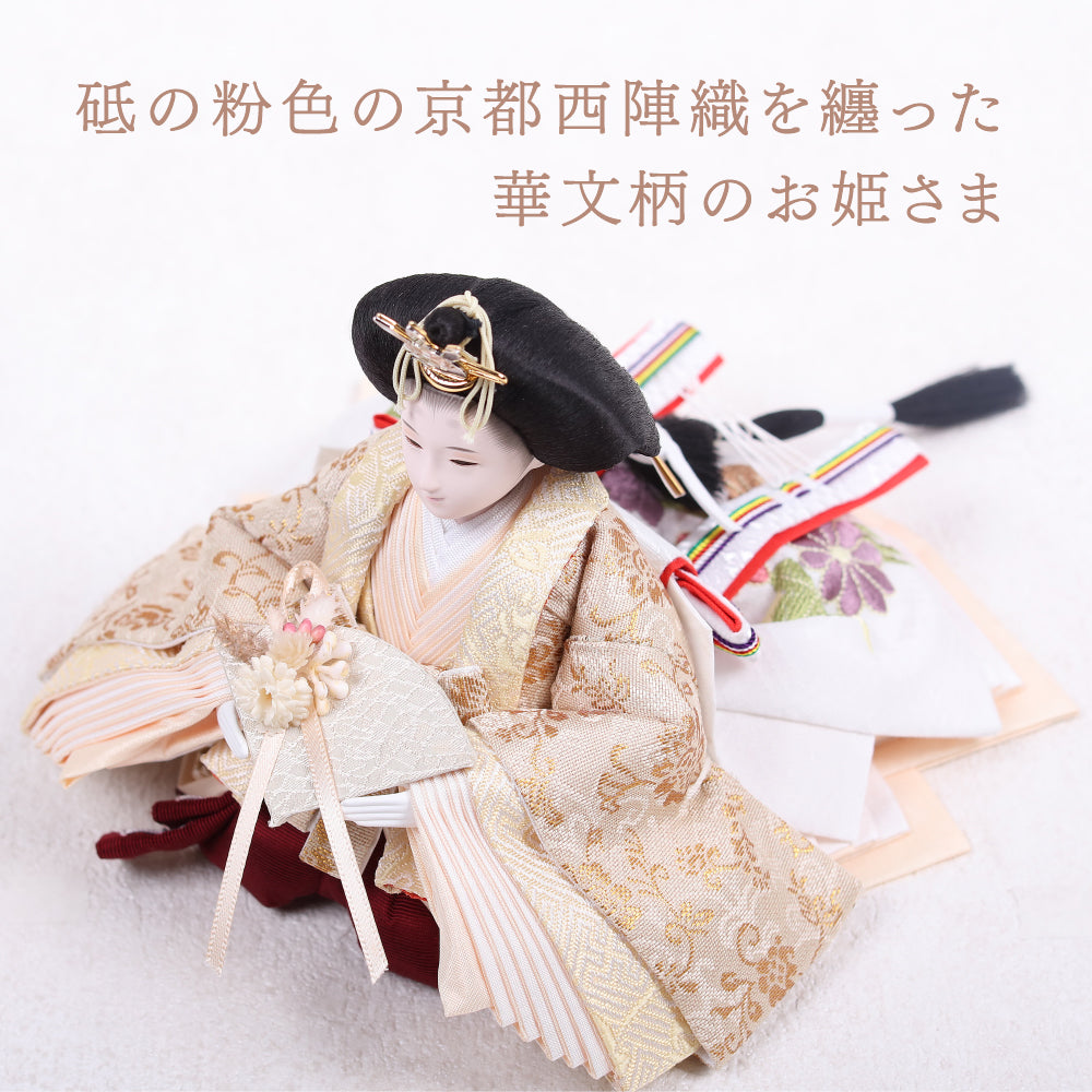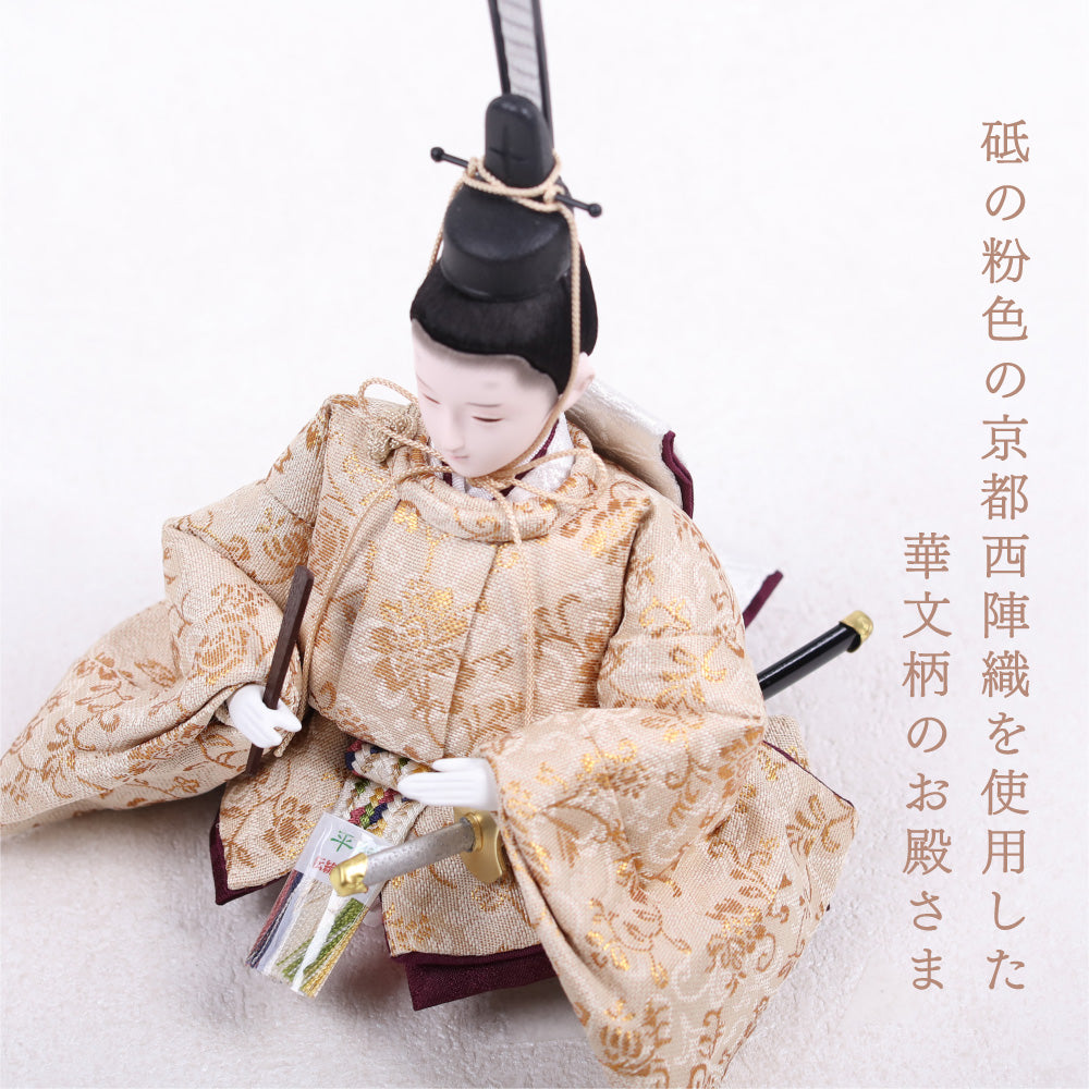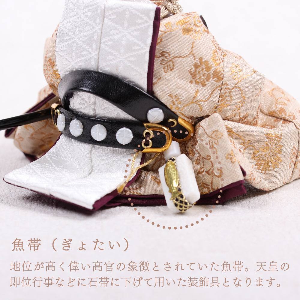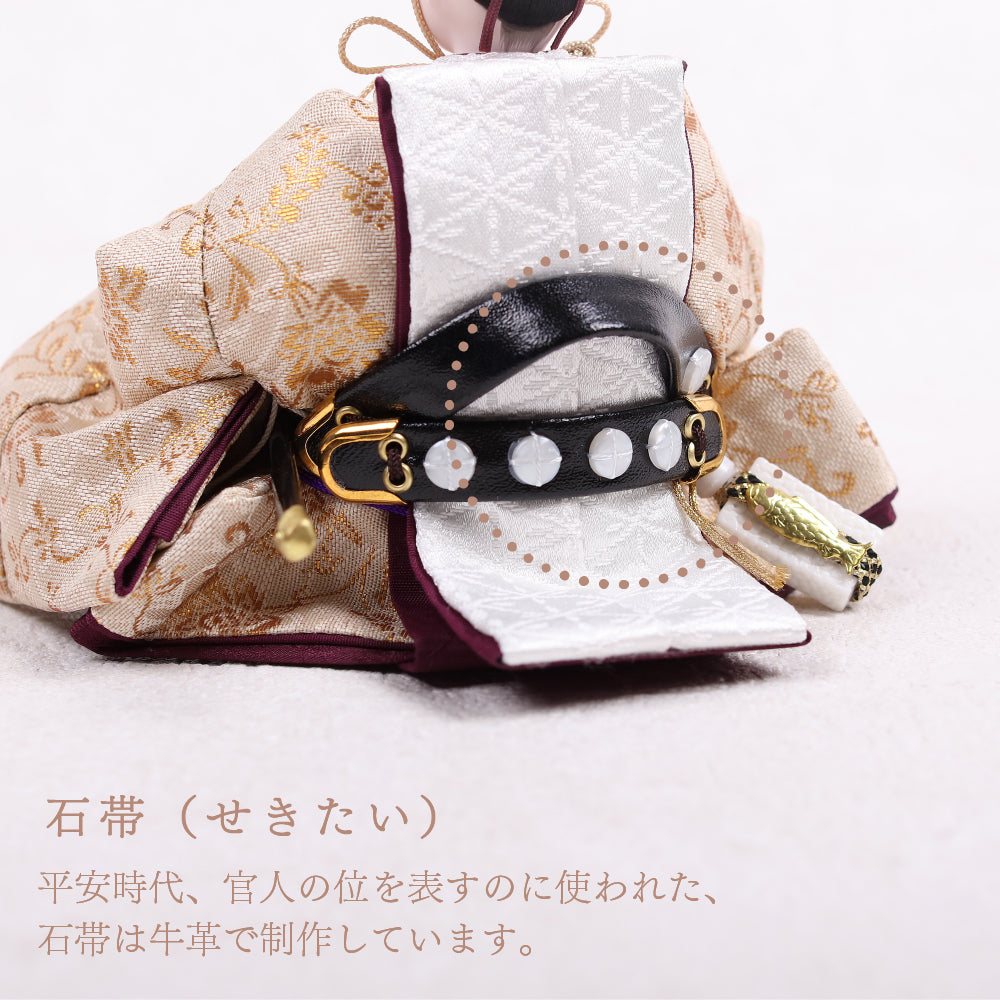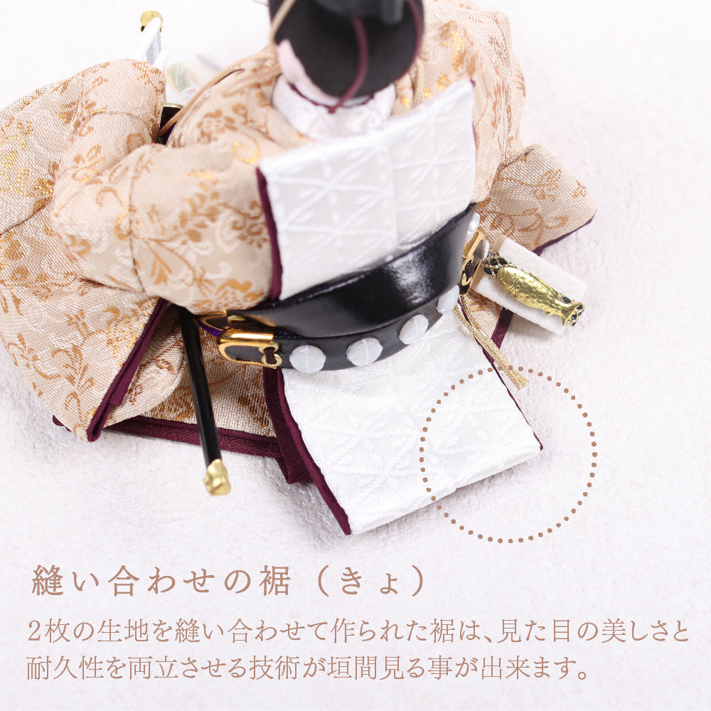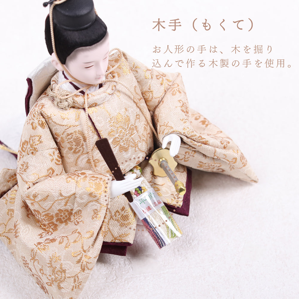 国産の栓(せん)は、美しい木目と温もりある質感が魅力の天然木です。耐久性に優れ、経年とともに味わいを深めます。台座や屏風などに使用することで、自然素材ならではの落ち着いた風合いと上質感を演出し、雛人形全体をより品格ある印象に仕上げます。