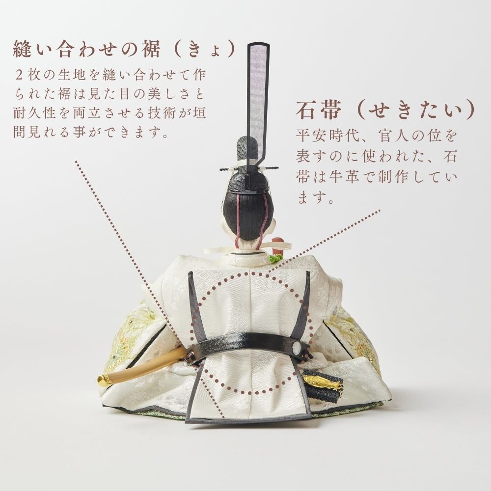 国産の栓(せん)は、美しい木目と温もりある質感が魅力の天然木です。耐久性に優れ、経年とともに味わいを深めます。台座や屏風などに使用することで、自然素材ならではの落ち着いた風合いと上質感を演出し、雛人形全体をより品格ある印象に仕上げます。