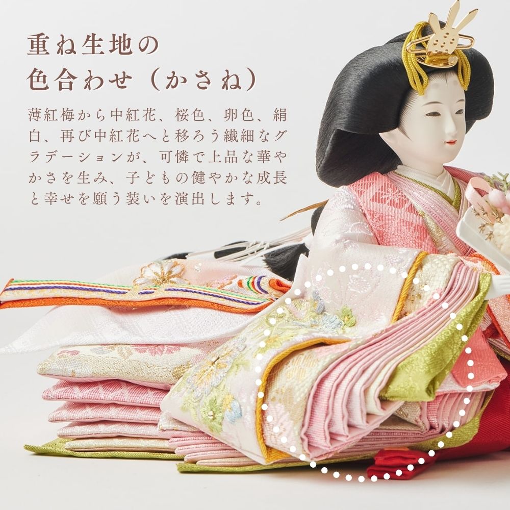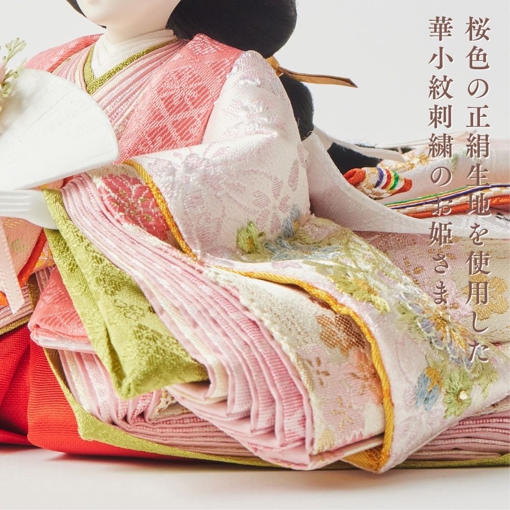 正絹は、100%絹から作られた生地で、「本絹」とも呼ばれます。蚕の繭を原料にし、複雑な工程を経て製造されます。絹糸を織って生地に仕上げることで、独特の光沢と滑らかな質感が生まれ、高級感のあるお人形が完成します。正絹は伝統的な工芸品に広く用いられ、その美しさが際立っています。