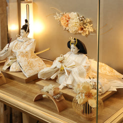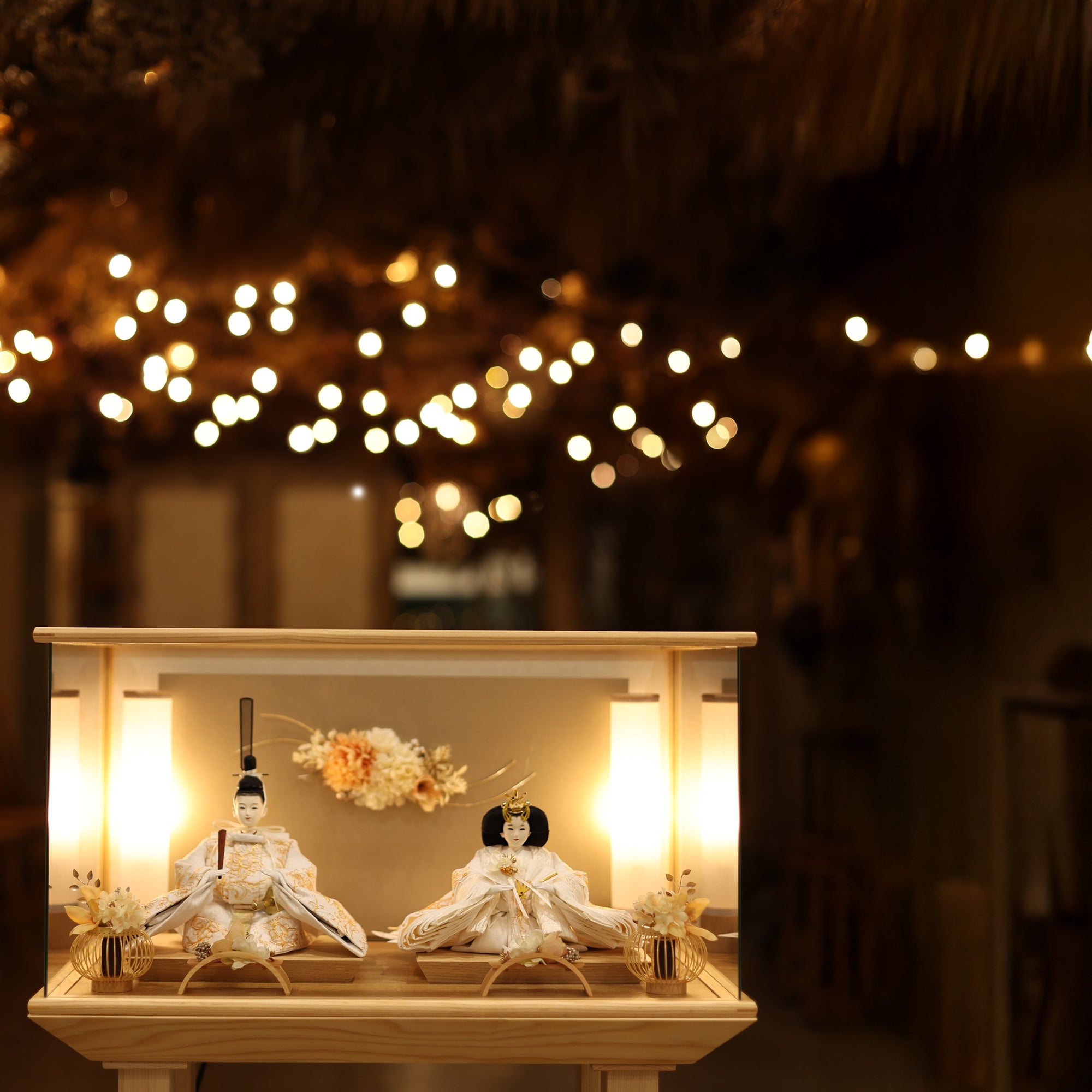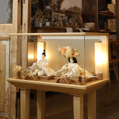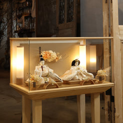 通常2mm厚が一般的な中、当店ではより高品質なAGC製3mmガラスを採用しています。厚みが増すことで強度と安全性が高まり、透明度の高いクリアな美しさを保ちます。大切な雛人形を守りながら、高級感のある見栄えを実現しています。