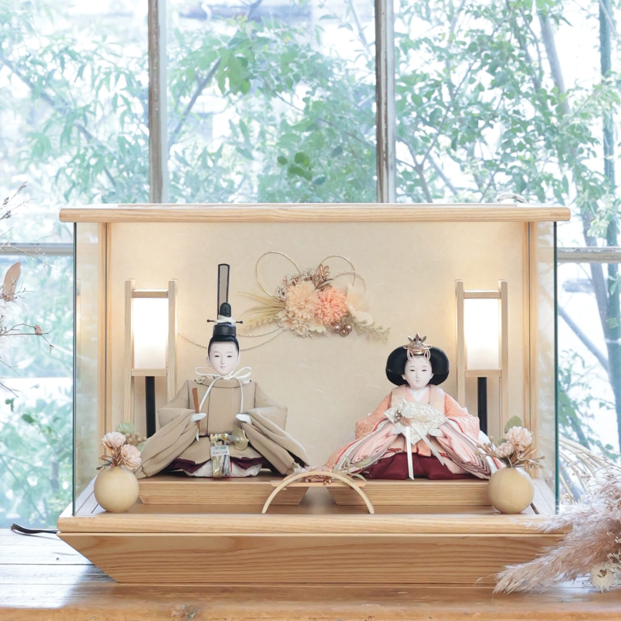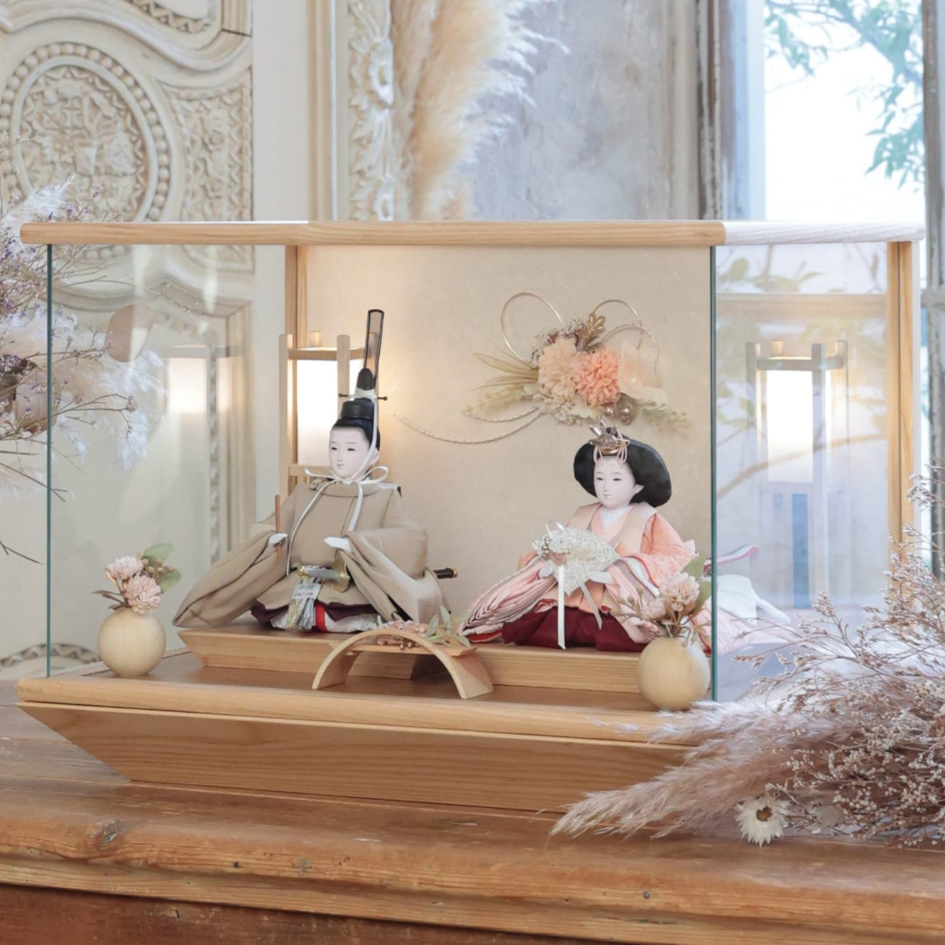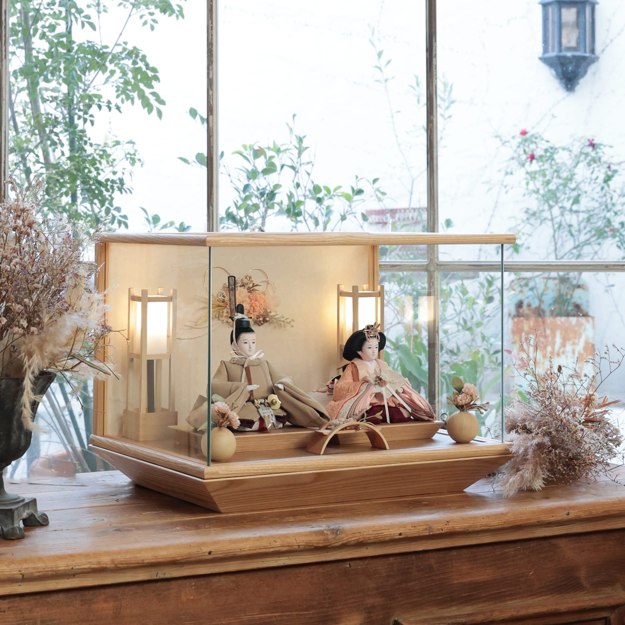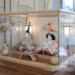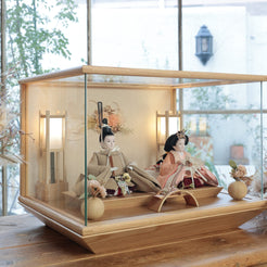 通常2mm厚が一般的な中、当店ではより高品質なAGC製3mmガラスを採用しています。厚みが増すことで強度と安全性が高まり、透明度の高いクリアな美しさを保ちます。大切な雛人形を守りながら、高級感のある見栄えを実現しています。