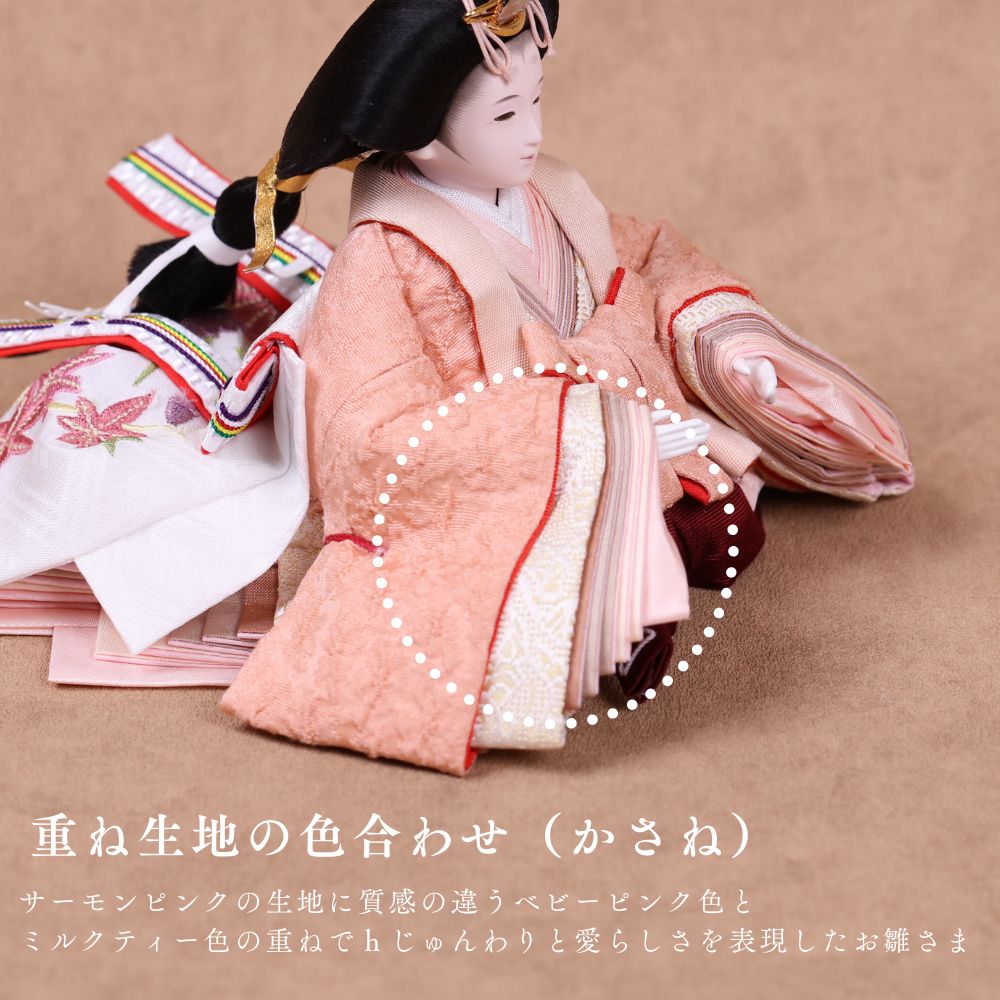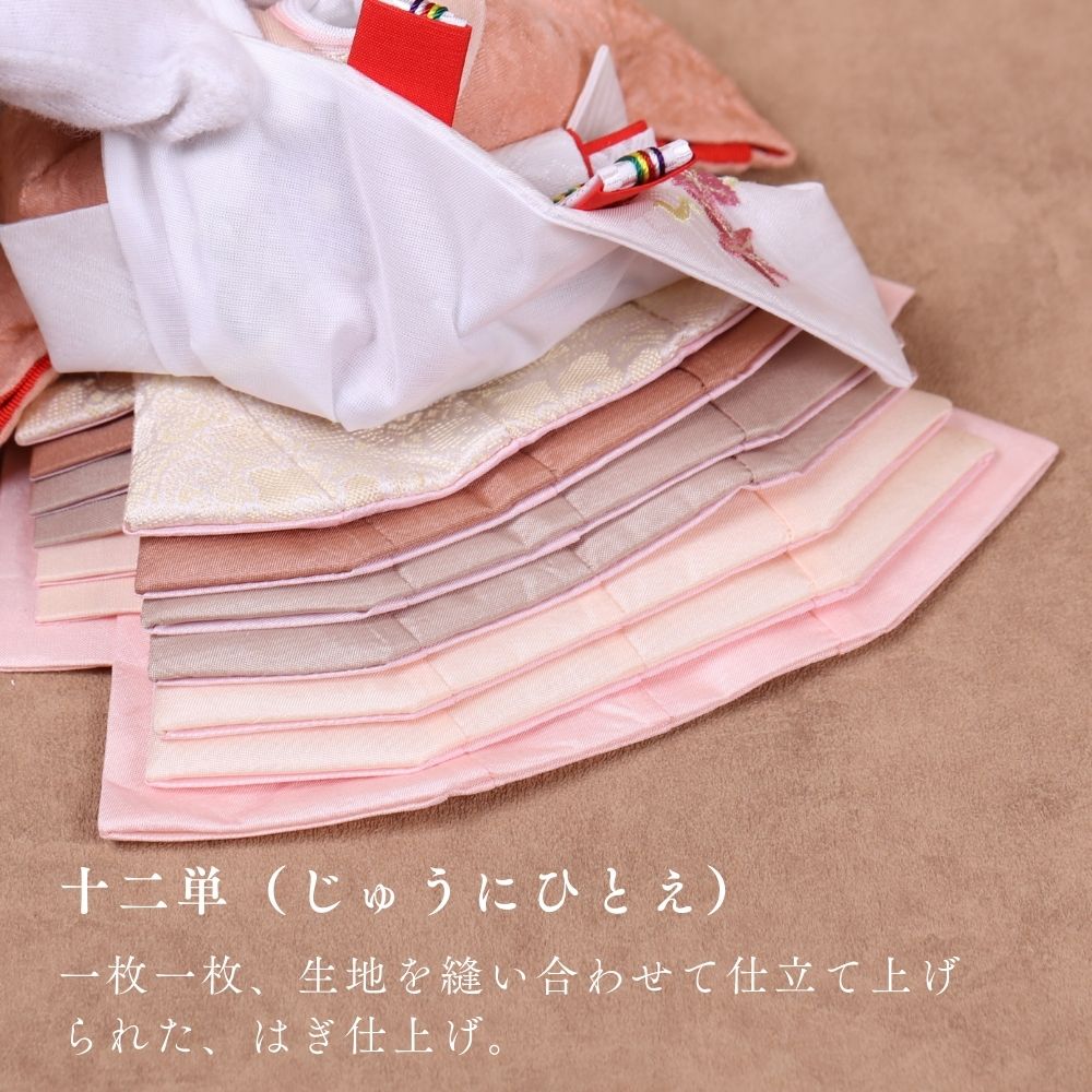 正絹は、100%絹から作られた生地で、「本絹」とも呼ばれます。蚕の繭を原料にし、複雑な工程を経て製造されます。絹糸を織って生地に仕上げることで、独特の光沢と滑らかな質感が生まれ、高級感のあるお人形が完成します。正絹は伝統的な工芸品に広く用いられ、その美しさが際立っています