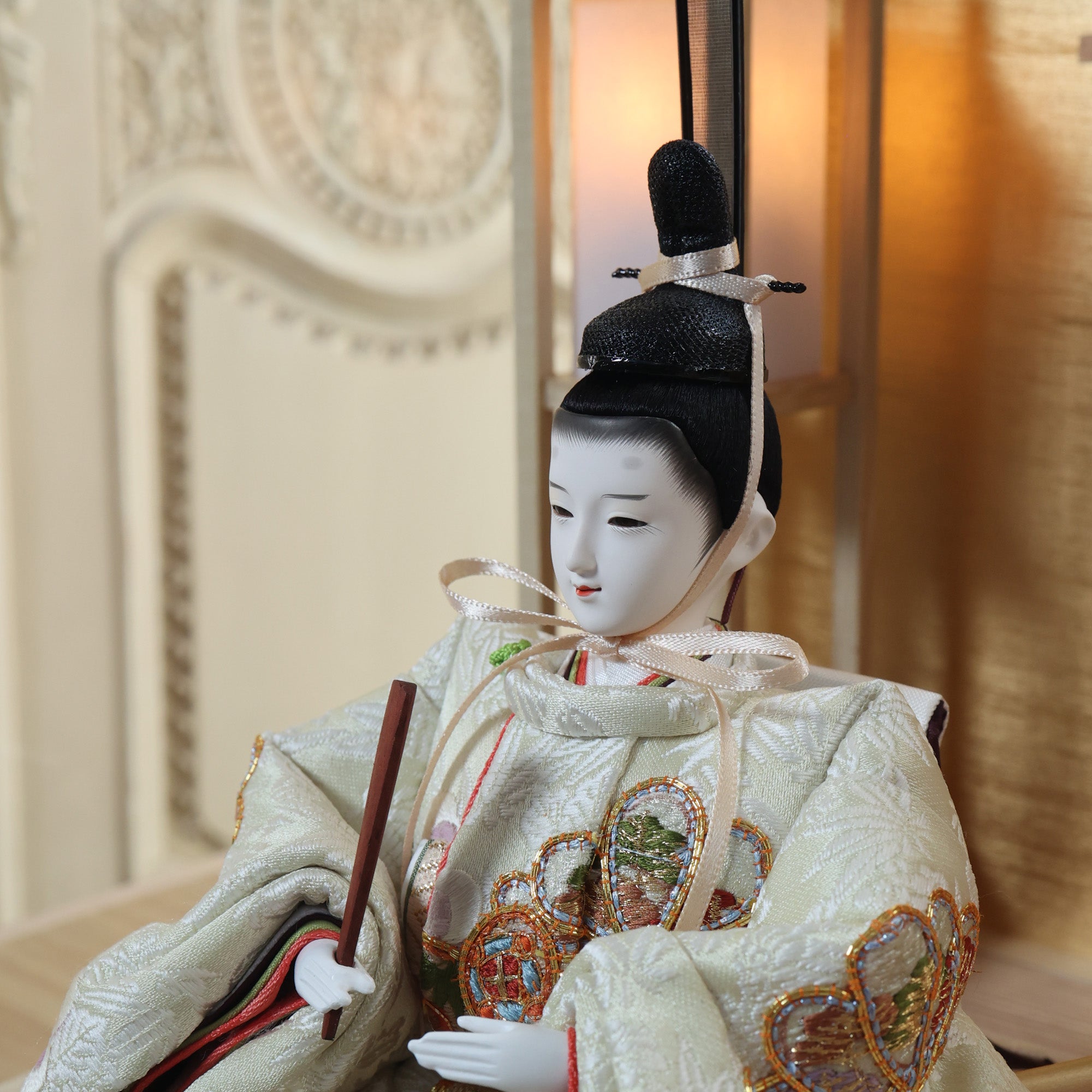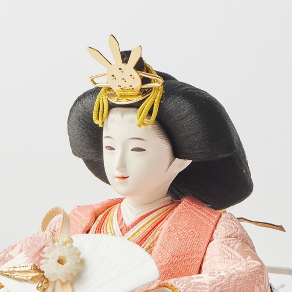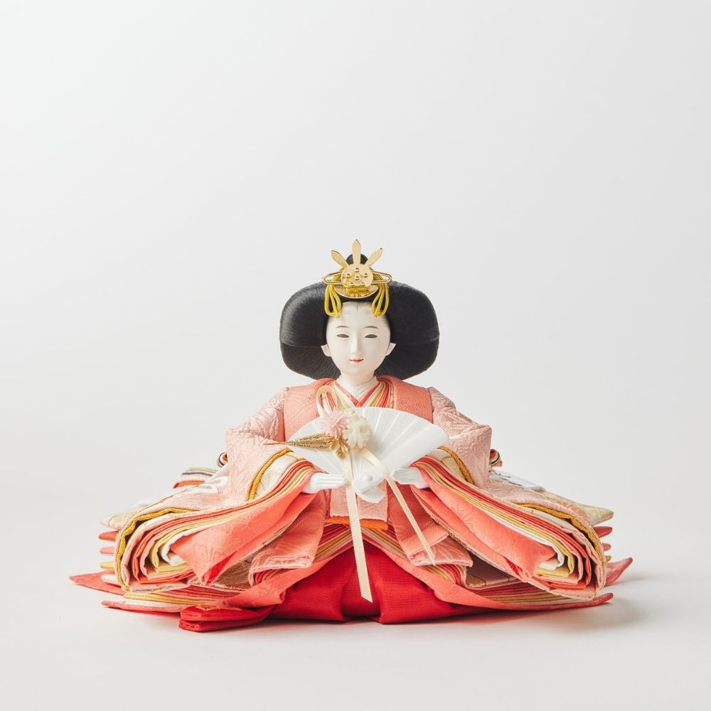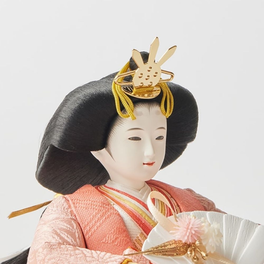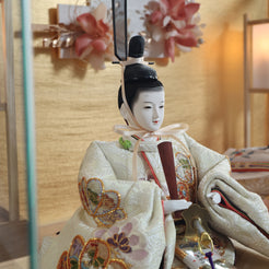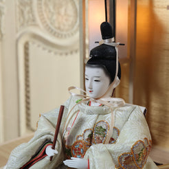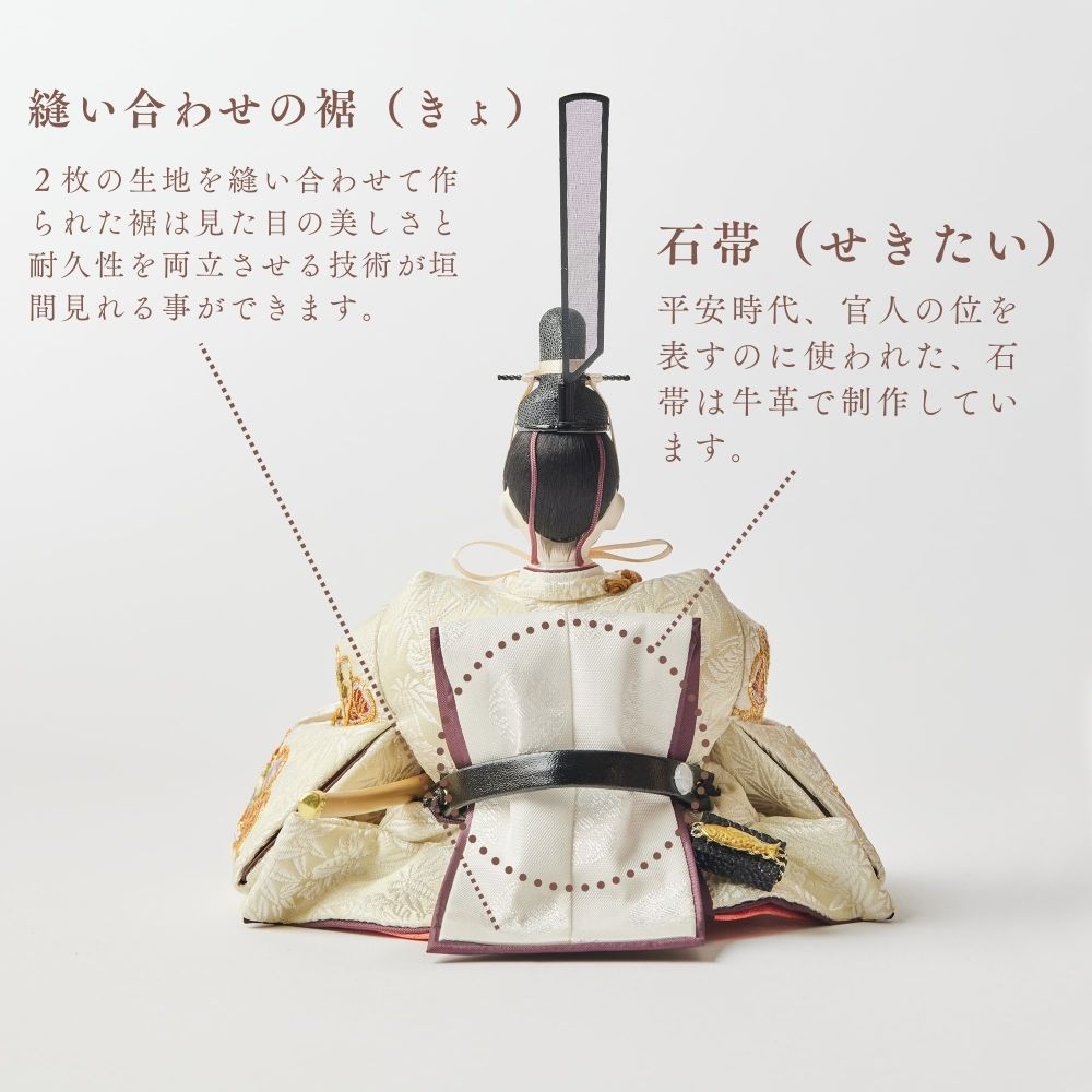 松柄金駒刺繍の支子色雛人形は、成長と繁栄を願い、親の愛情と未来への希望を象徴する特別な存在です。