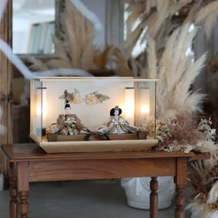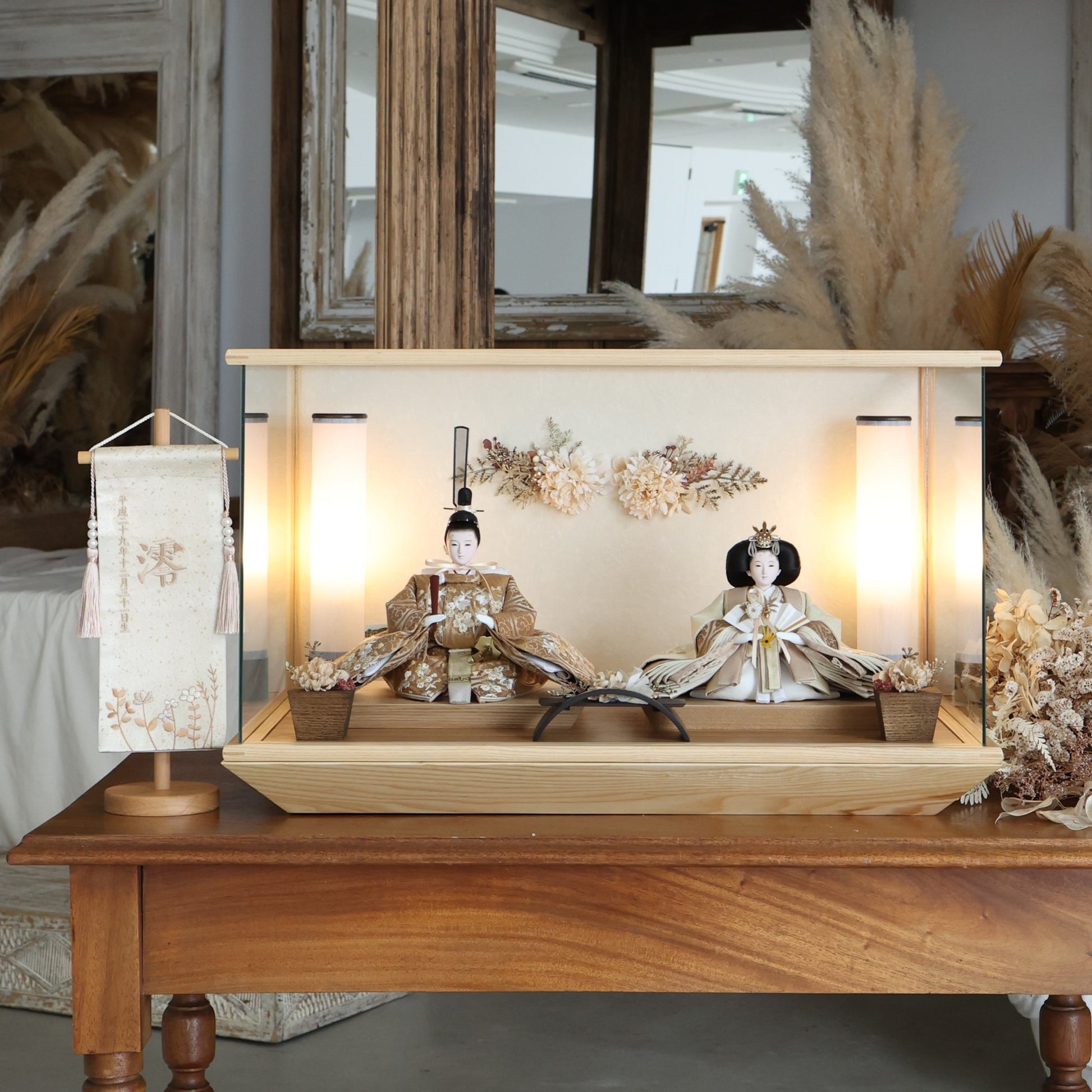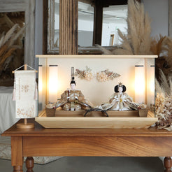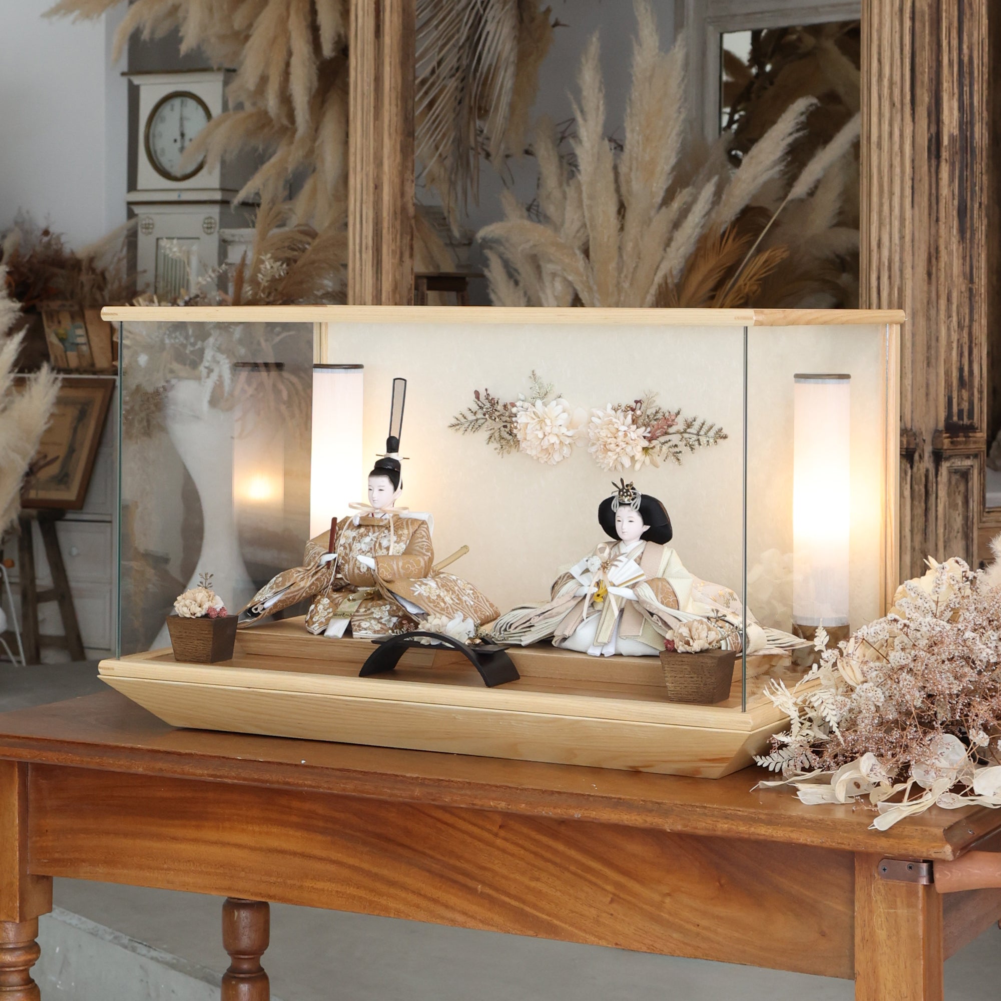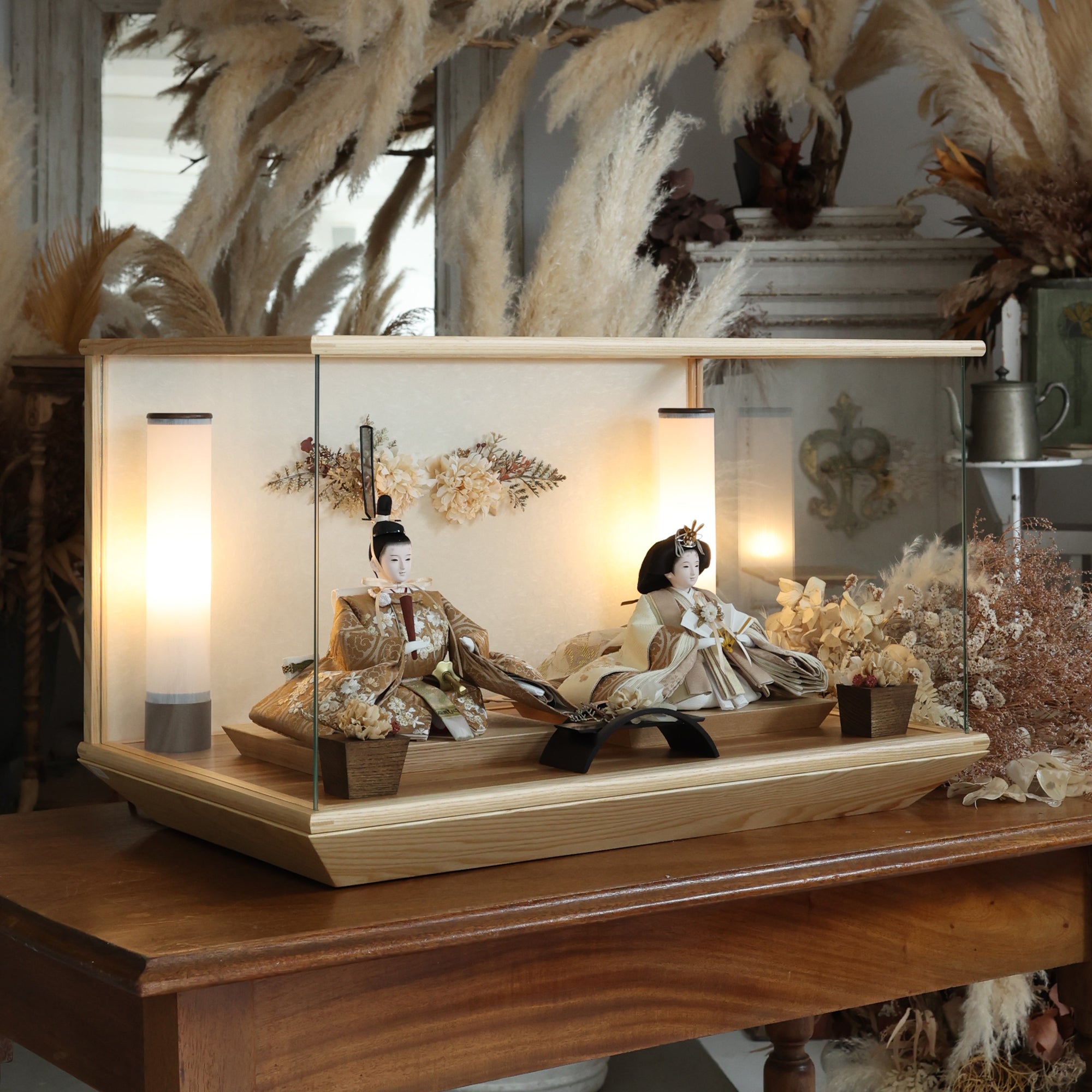 通常2mm厚が一般的な中、当店ではより高品質なAGC製3mmガラスを採用しています。厚みが増すことで強度と安全性が高まり、透明度の高いクリアな美しさを保ちます。大切な雛人形を守りながら、高級感のある見栄えを実現しています。