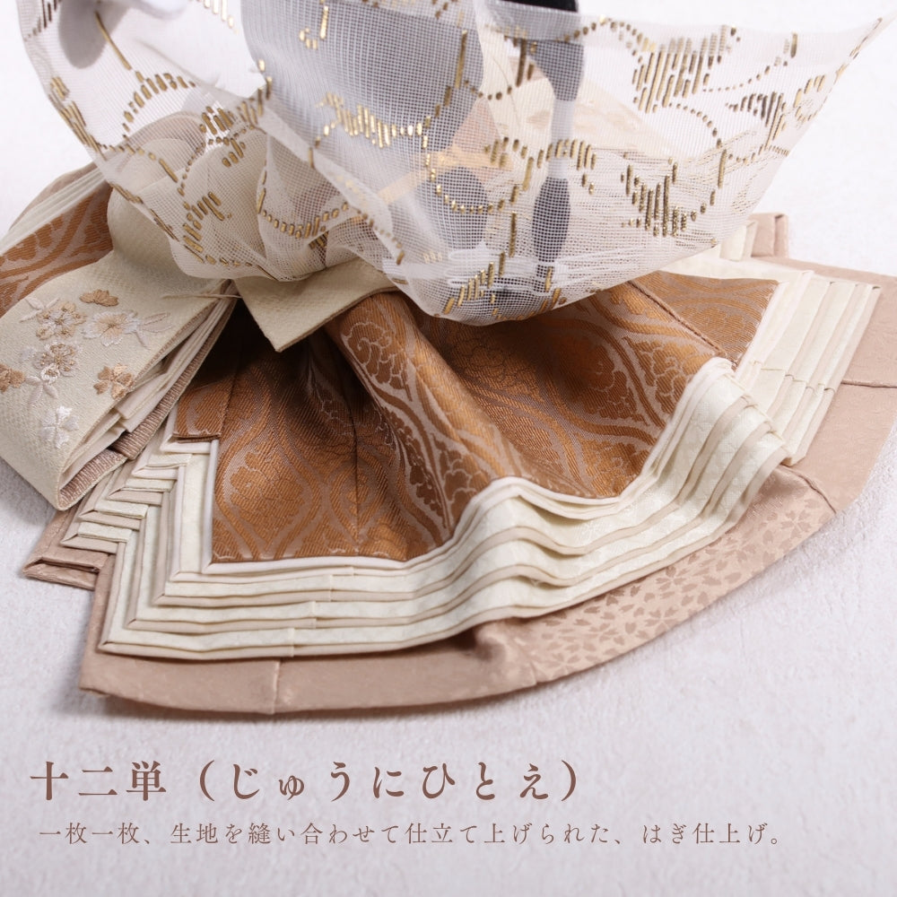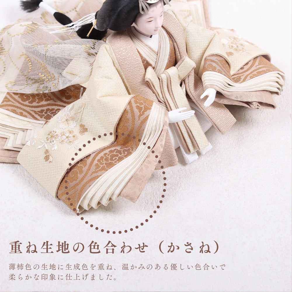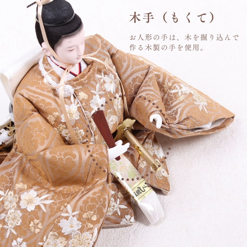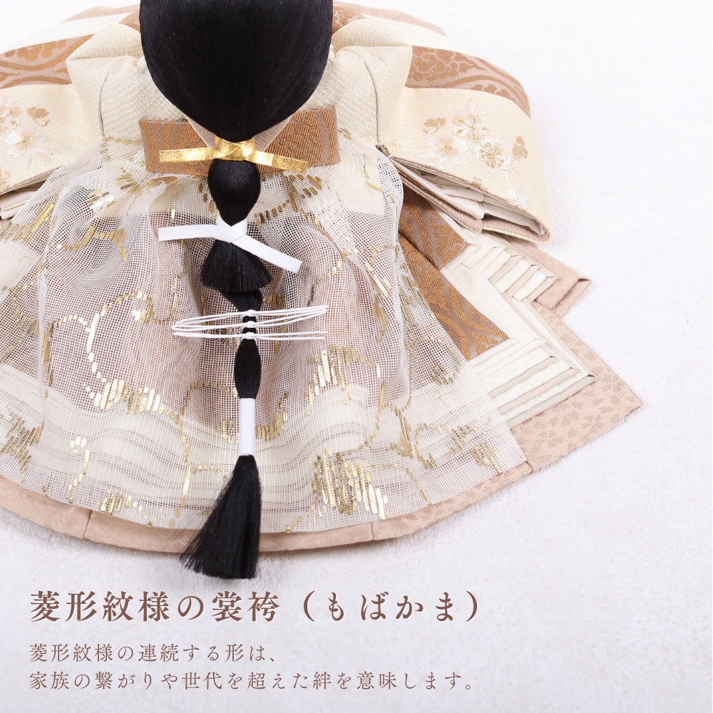 国産の栓(せん)は、美しい木目と温もりある質感が魅力の天然木です。耐久性に優れ、経年とともに味わいを深めます。台座や屏風などに使用することで、自然素材ならではの落ち着いた風合いと上質感を演出し、雛人形全体をより品格ある印象に仕上げます。