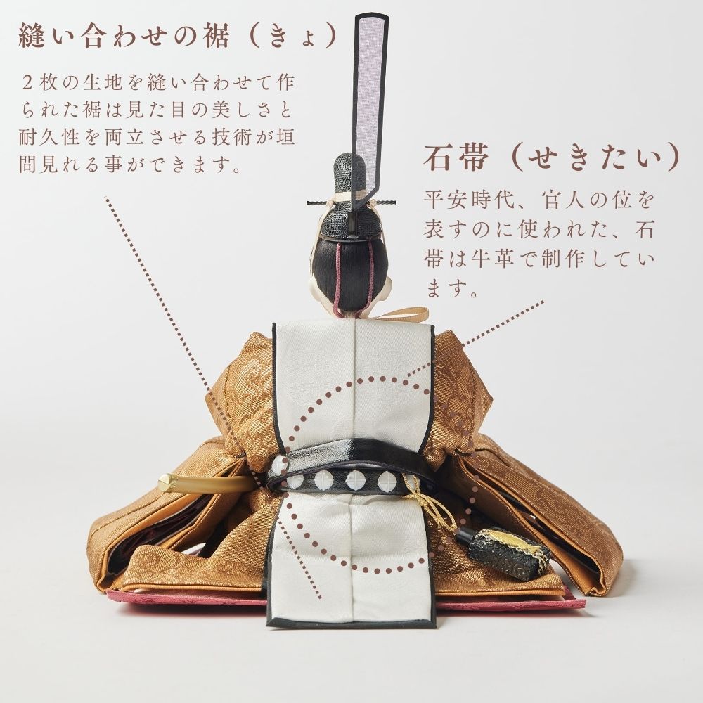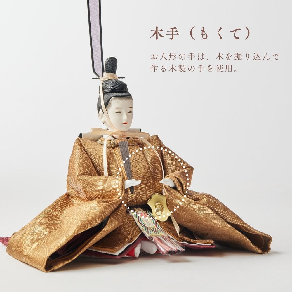 国産の栓(せん)は、美しい木目と温もりある質感が魅力の天然木です。耐久性に優れ、経年とともに味わいを深めます。台座や屏風などに使用することで、自然素材ならではの落ち着いた風合いと上質感を演出し、雛人形全体をより品格ある印象に仕上げます。