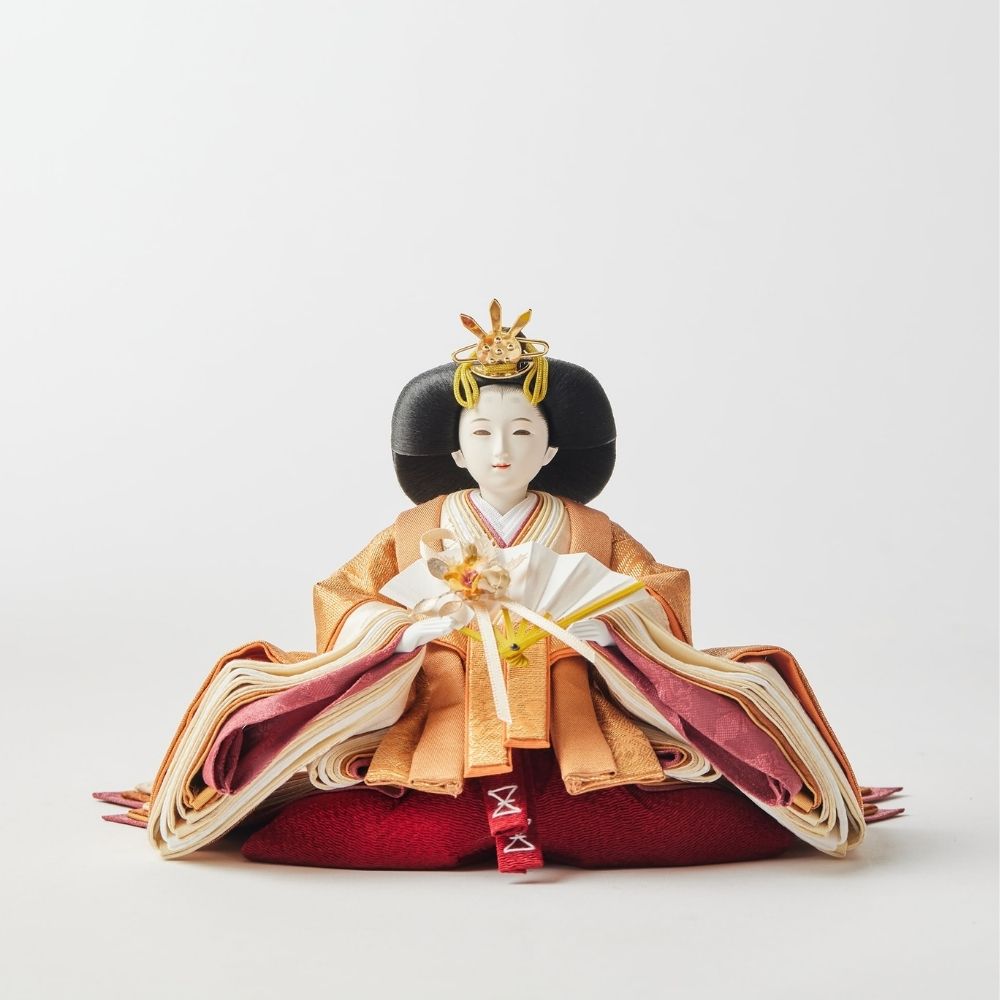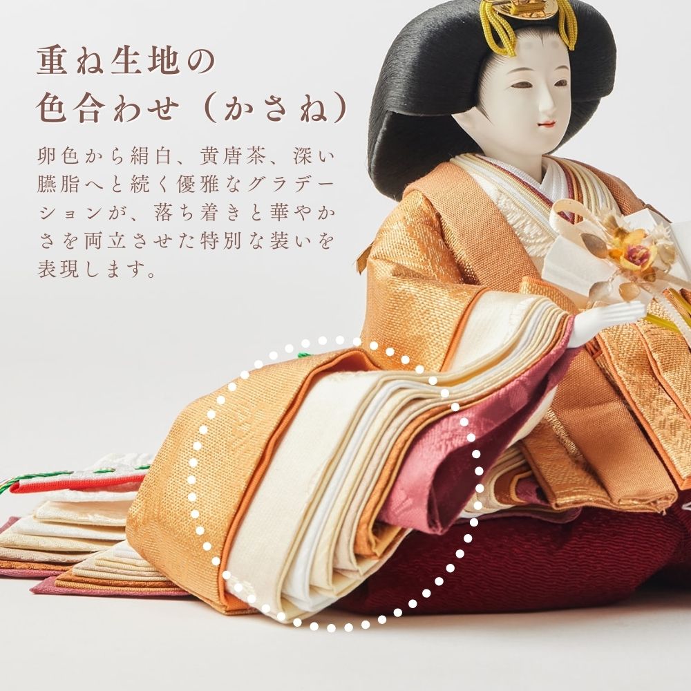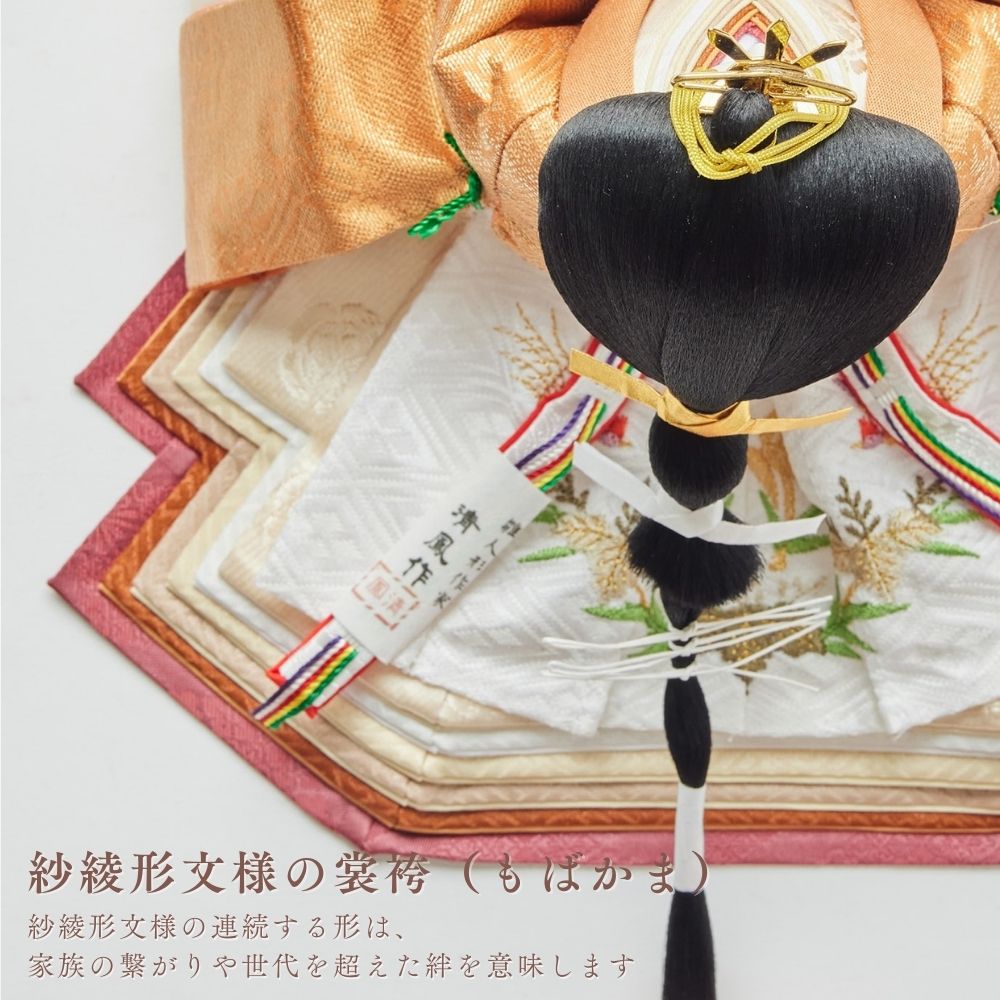 唐草花文様の柿色の雛人形は、春の訪れを感じさせる美しい存在で、赤ちゃんの健康と成長を願う「雛祭り」の象徴です。唐草模様は生命の繁栄や長寿を表し、柿色は家庭の幸福と愛情を示します。この人形は親の心が込められたもので、可愛らしい姿は見る者に安らぎを与えます。伝統を受け継ぎながら優雅さと親しみやすさを持つこの雛人形は、家族の絆を深める大切な宝物として愛され続けるでしょう。