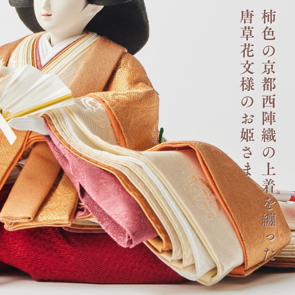 柿色の京都西陣織の上着を纏った唐草花文様のお姫さま