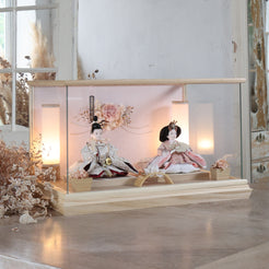 通常2mm厚が一般的な中、当店ではより高品質なAGC製3mmガラスを採用しています。厚みが増すことで強度と安全性が高まり、透明度の高いクリアな美しさを保ちます。大切な雛人形を守りながら、高級感のある見栄えを実現しています。