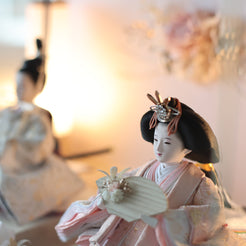 国産の栓(せん)は、美しい木目と温もりある質感が魅力の天然木です。耐久性に優れ、経年とともに味わいを深めます。台座や屏風などに使用することで、自然素材ならではの落ち着いた風合いと上質感を演出し、雛人形全体をより品格ある印象に仕上げます。