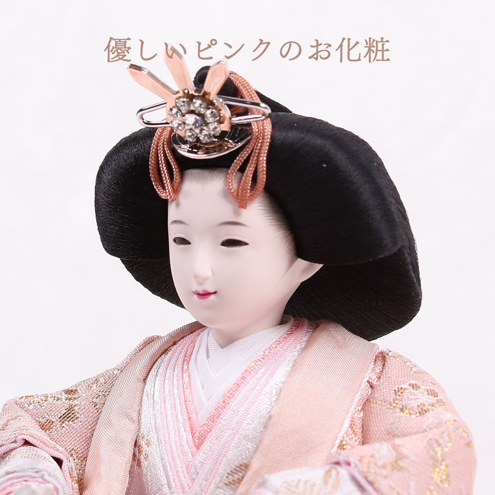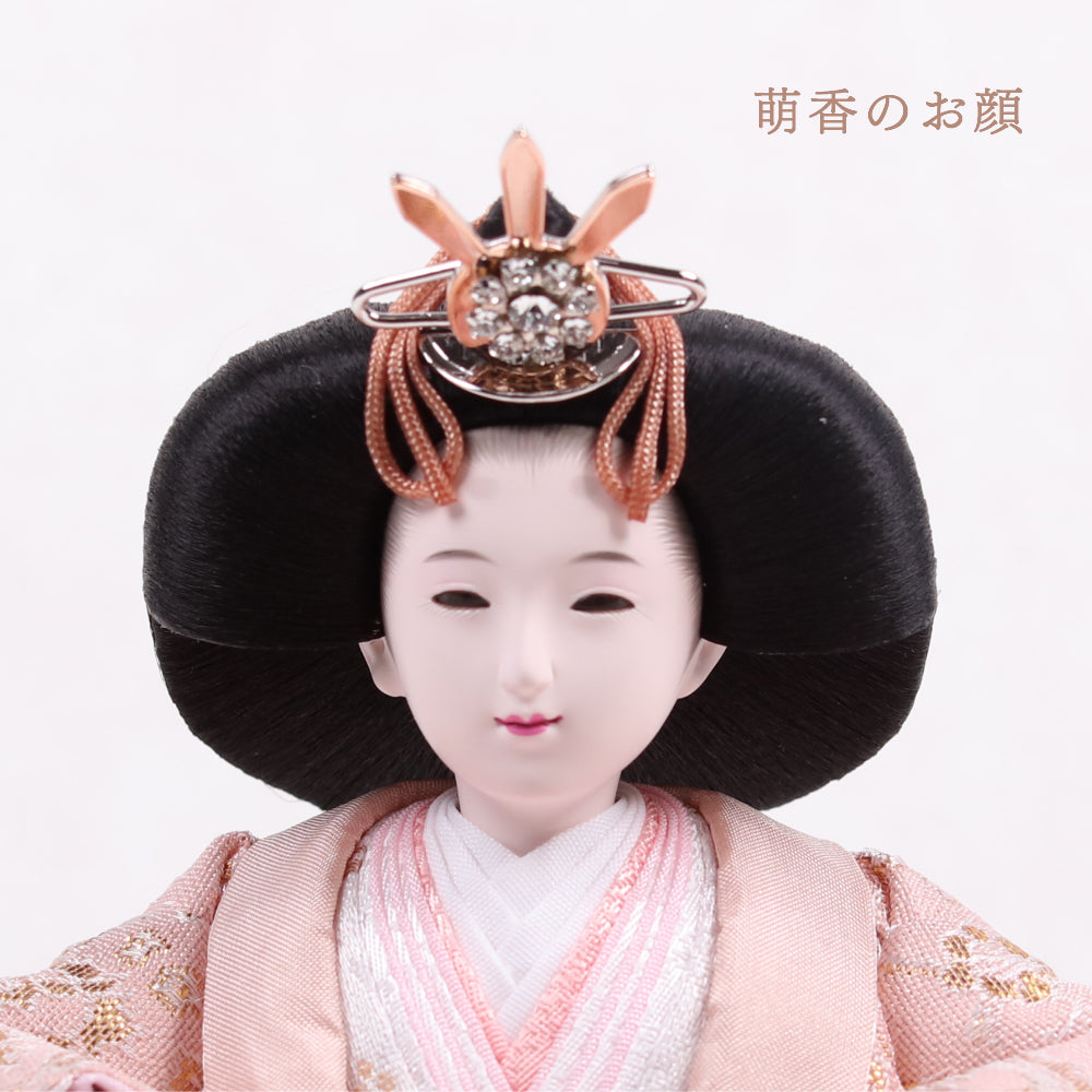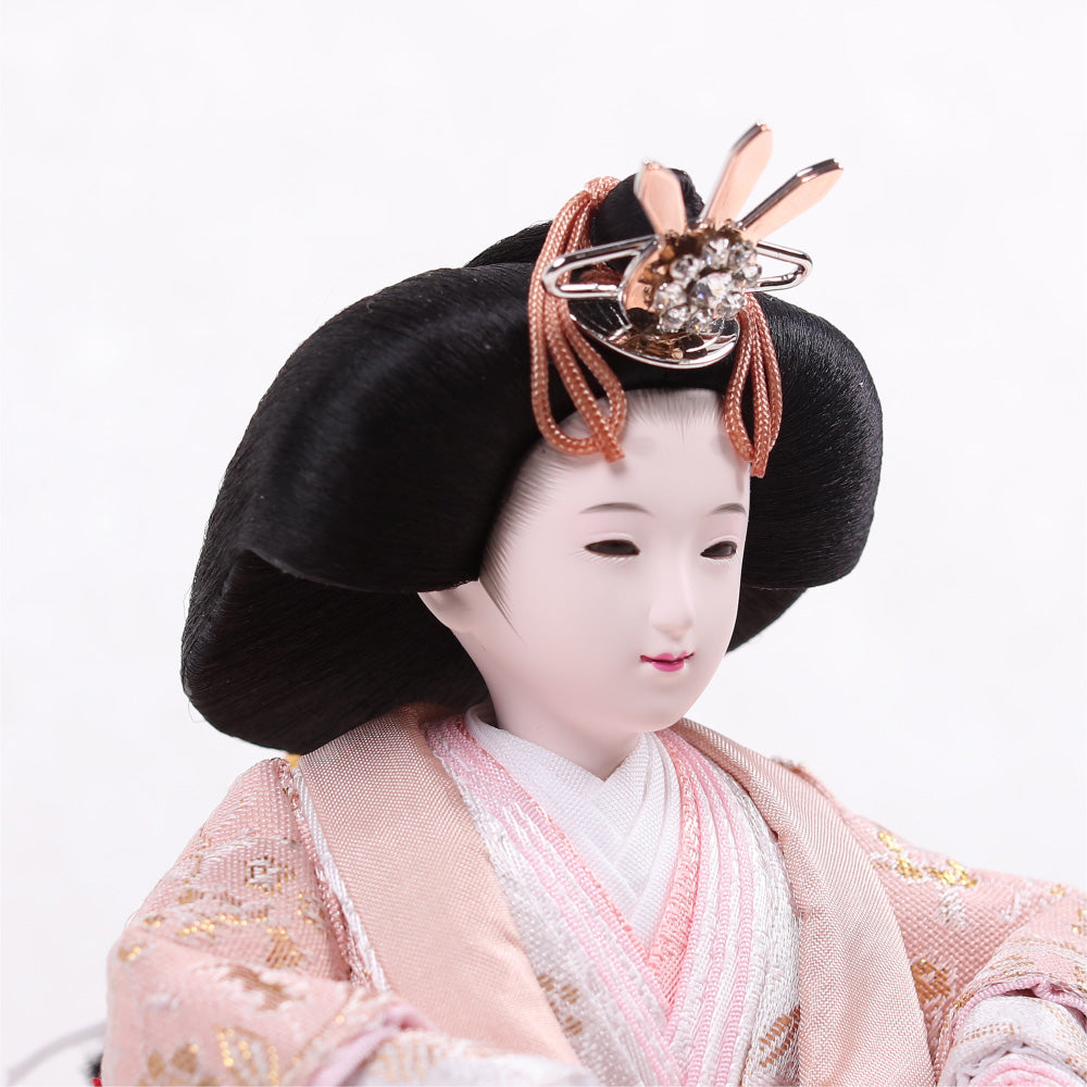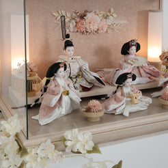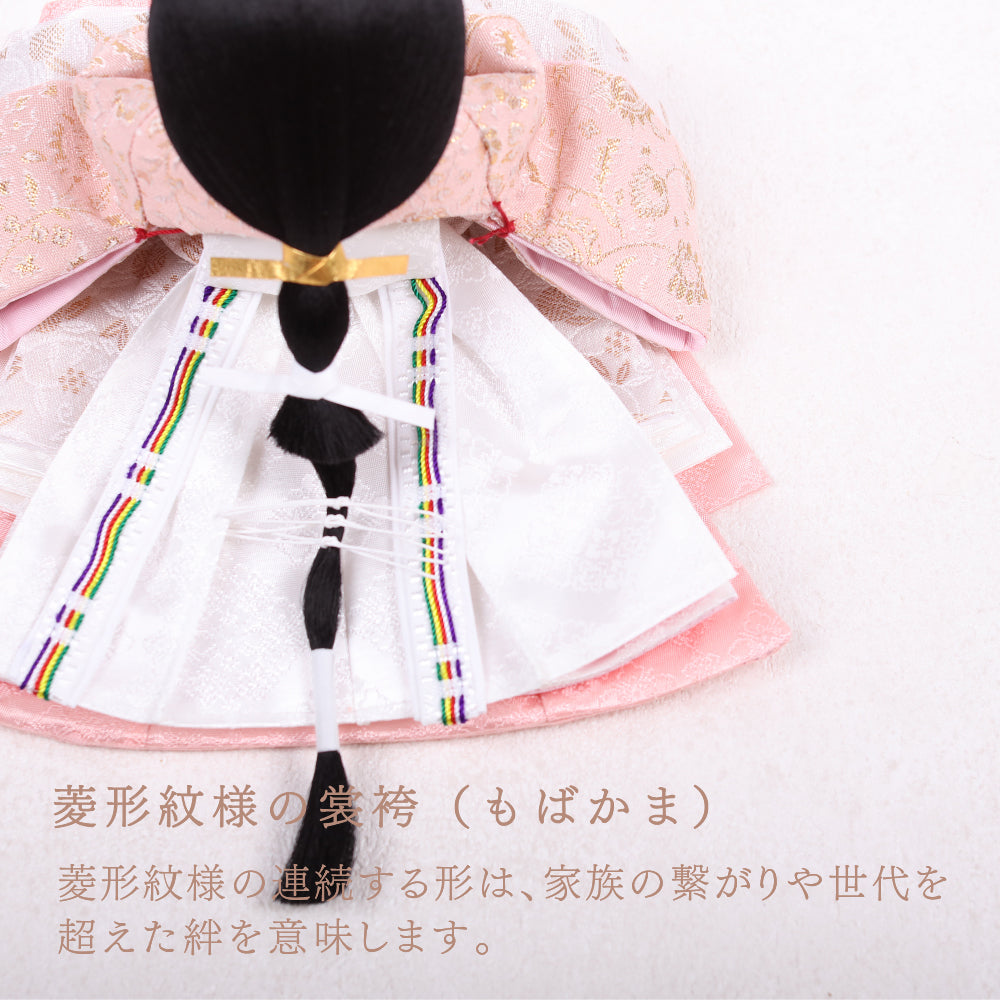 この雛人形は、唐花文様のサーモンピンクの装いが華やかさと優雅さを引き立てています。この柔らかなトーンは春の訪れを感じさせ、赤ちゃんの無垢さや成長を祝う象徴です。唐花文様は古典的な美を表現し、繁栄と幸福を願う意味が込められています。この雛人形は赤ちゃんの健康と幸せを祈る大切な存在であり、家庭に笑顔と祝福をもたらします。美しい装飾と深い意味が込められたこの雛人形は、未来への願いが込められた心温まる宝物です。