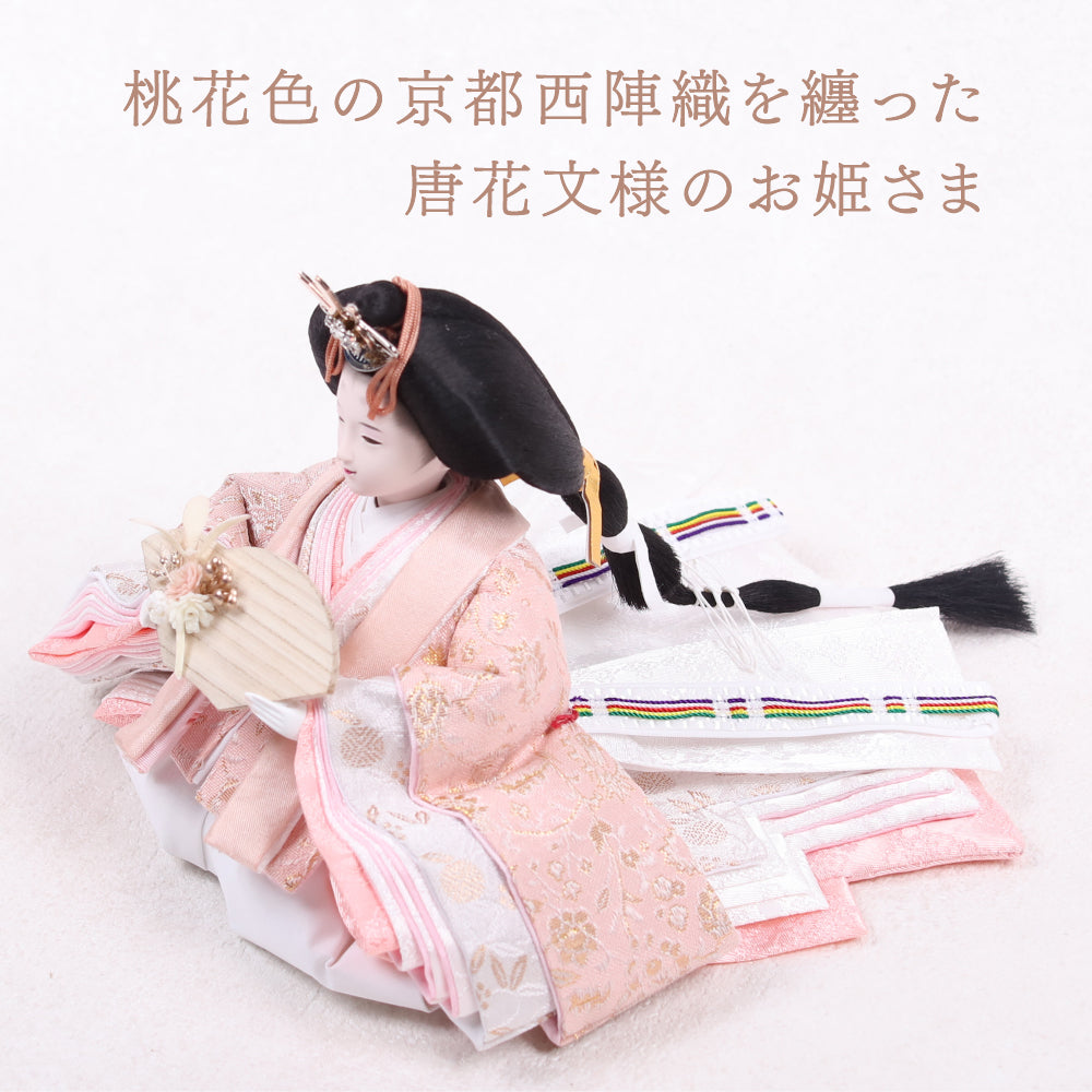 サーモンピンクの京都西陣織の上着に唐花文様のお姫さま