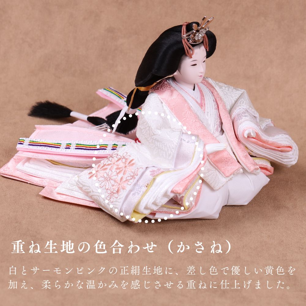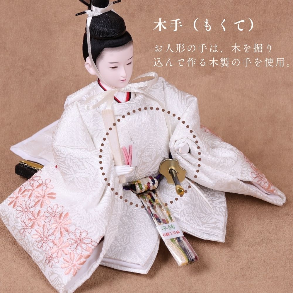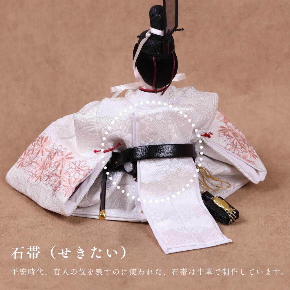国産の栓(せん)は、美しい木目と温もりある質感が魅力の天然木です。耐久性に優れ、経年とともに味わいを深めます。台座や屏風などに使用することで、自然素材ならではの落ち着いた風合いと上質感を演出し、雛人形全体をより品格ある印象に仕上げます。