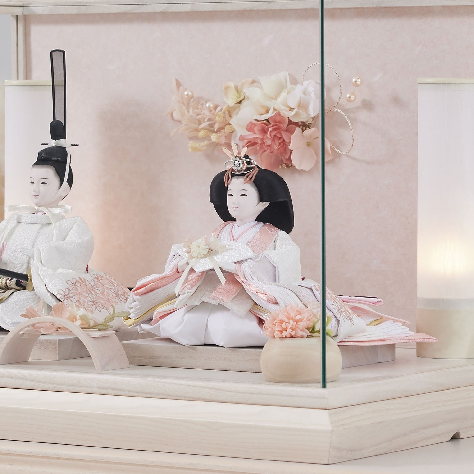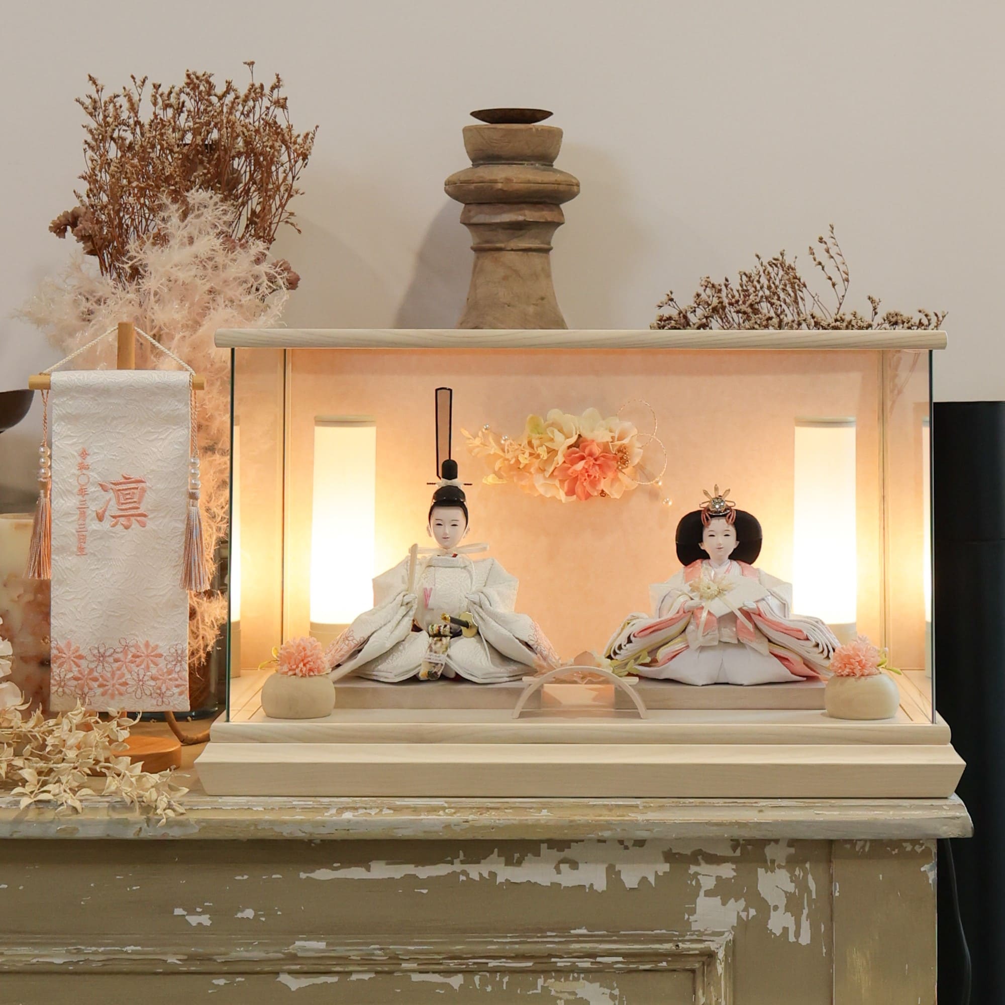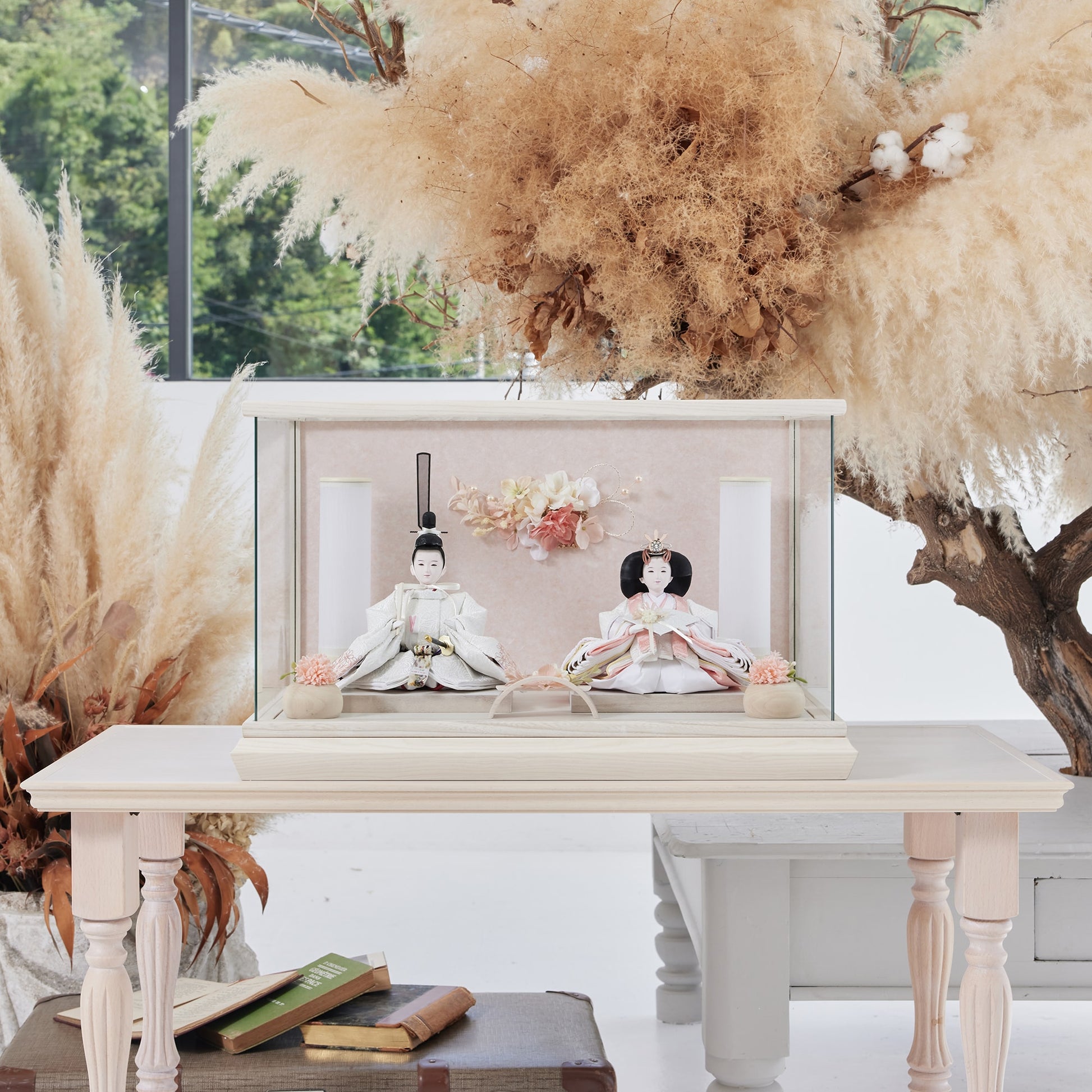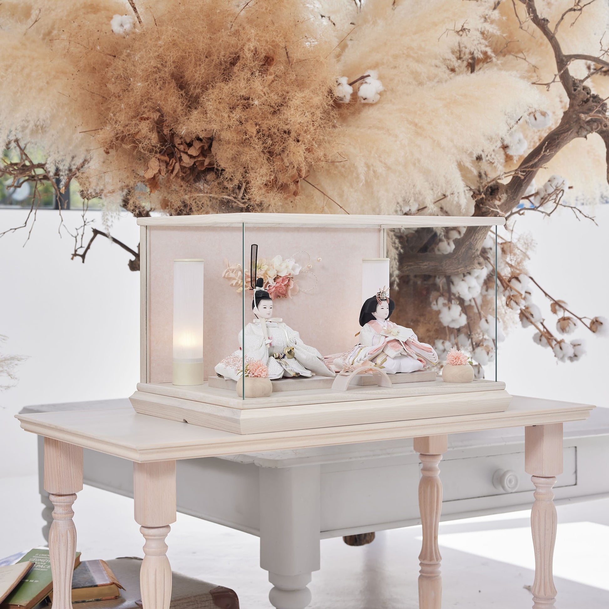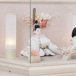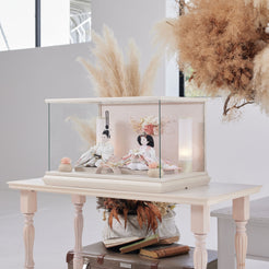 通常2mm厚が一般的な中、当店ではより高品質なAGC製3mmガラスを採用しています。厚みが増すことで強度と安全性が高まり、透明度の高いクリアな美しさを保ちます。大切な雛人形を守りながら、高級感のある見栄えを実現しています。