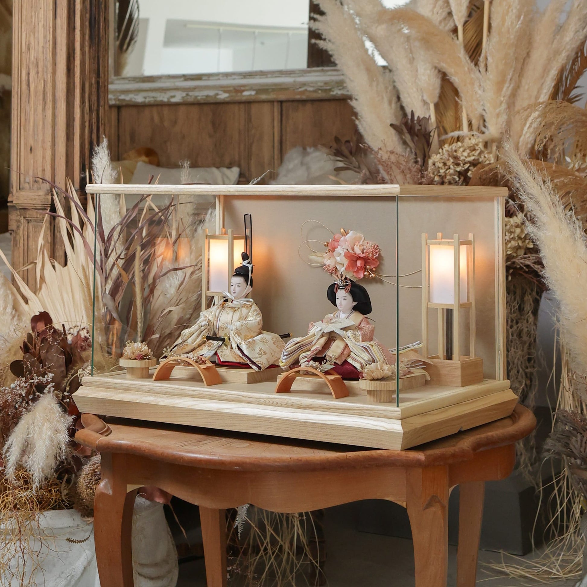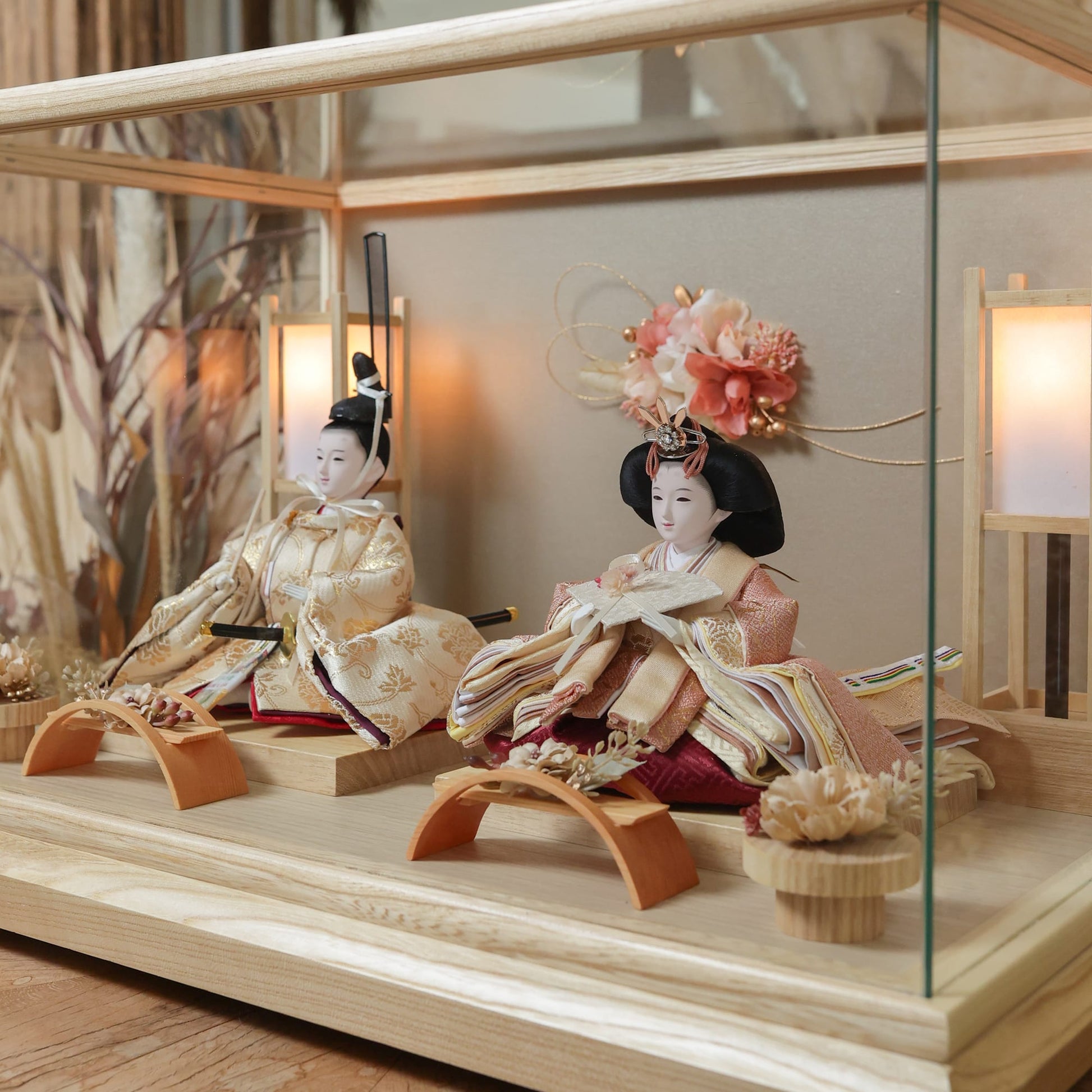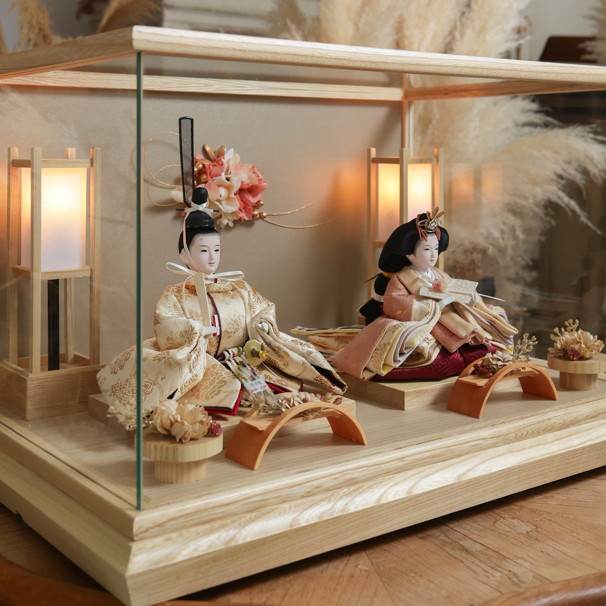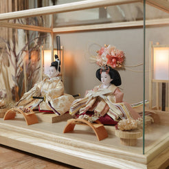通常2mm厚が一般的な中、当店ではより高品質なAGC製3mmガラスを採用しています。厚みが増すことで強度と安全性が高まり、透明度の高いクリアな美しさを保ちます。大切な雛人形を守りながら、高級感のある見栄えを実現しています。