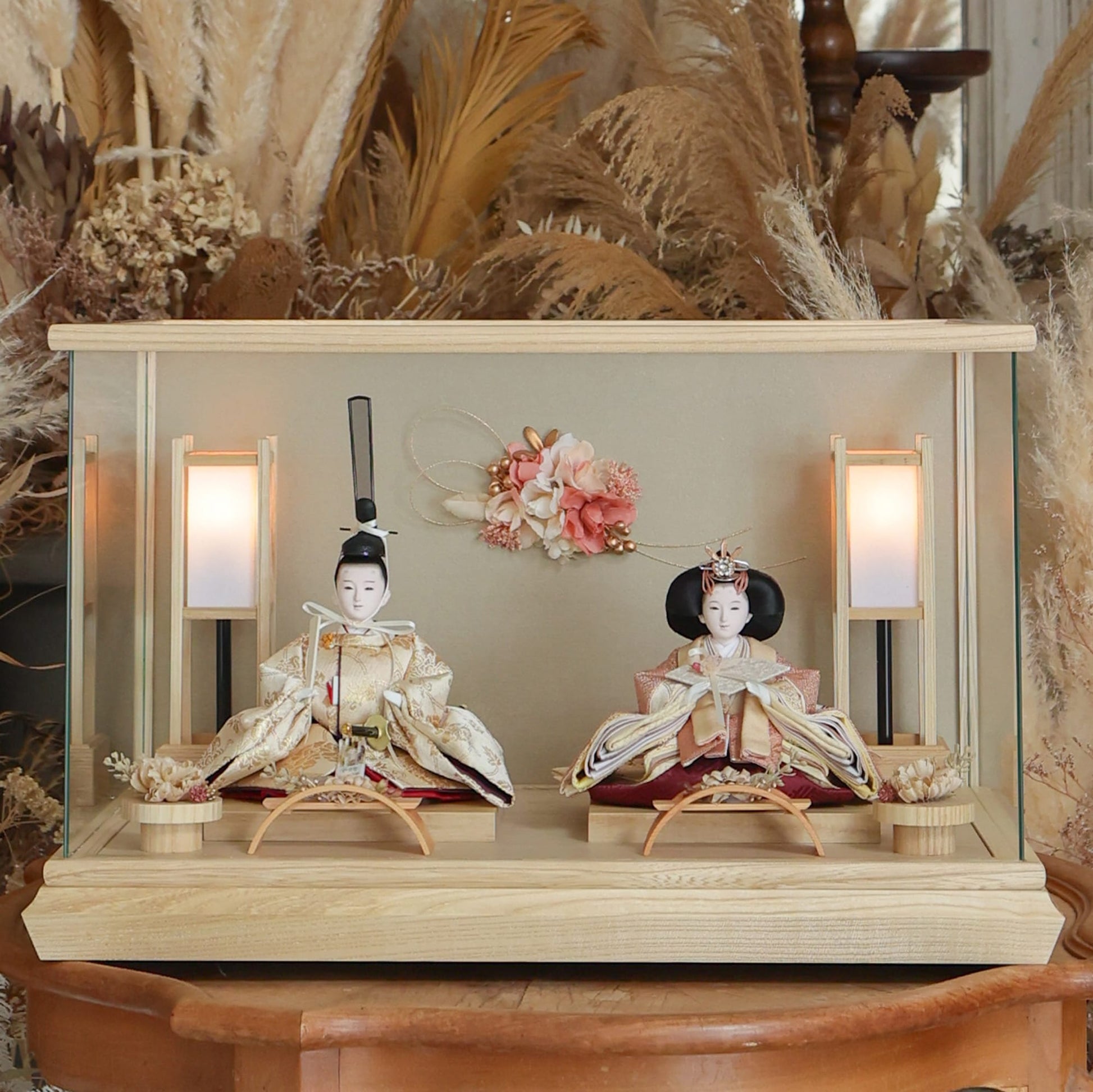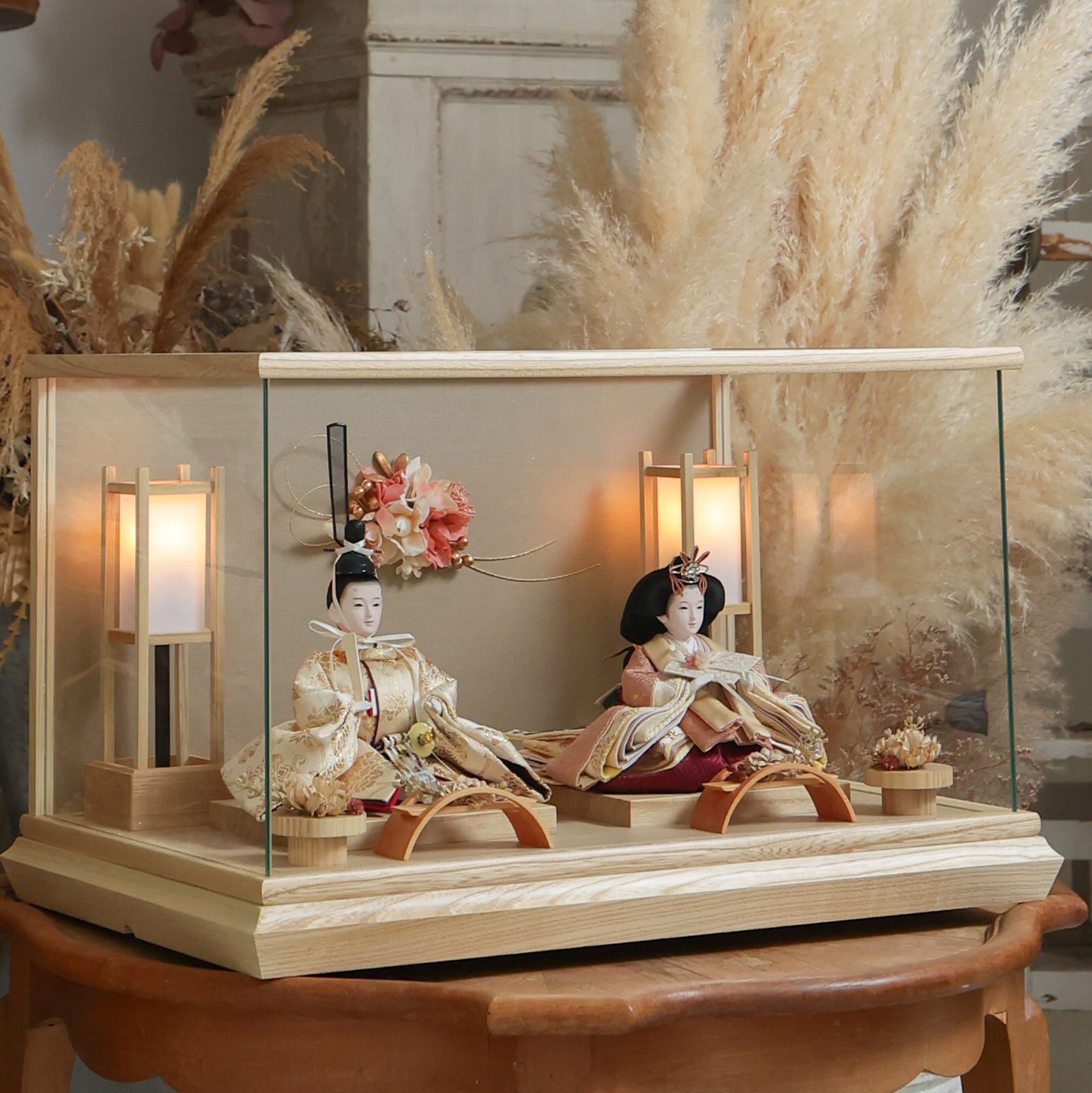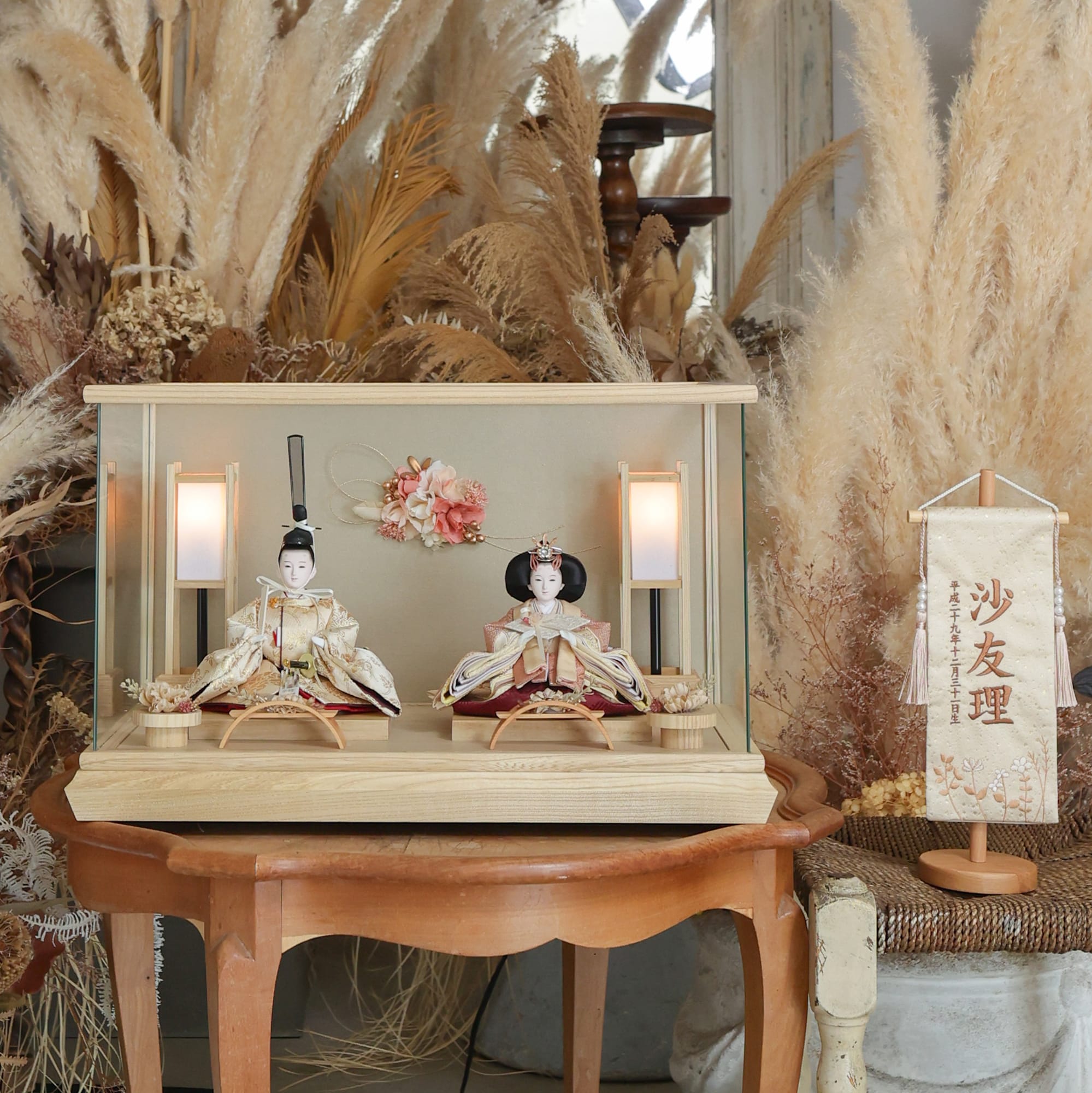 通常2mm厚が一般的な中、当店ではより高品質なAGC製3mmガラスを採用しています。厚みが増すことで強度と安全性が高まり、透明度の高いクリアな美しさを保ちます。大切な雛人形を守りながら、高級感のある見栄えを実現しています。