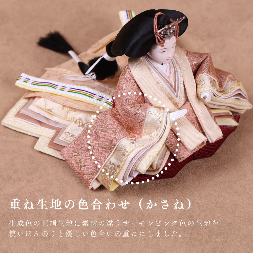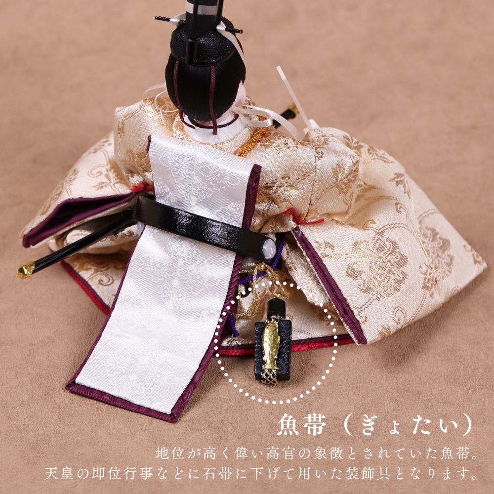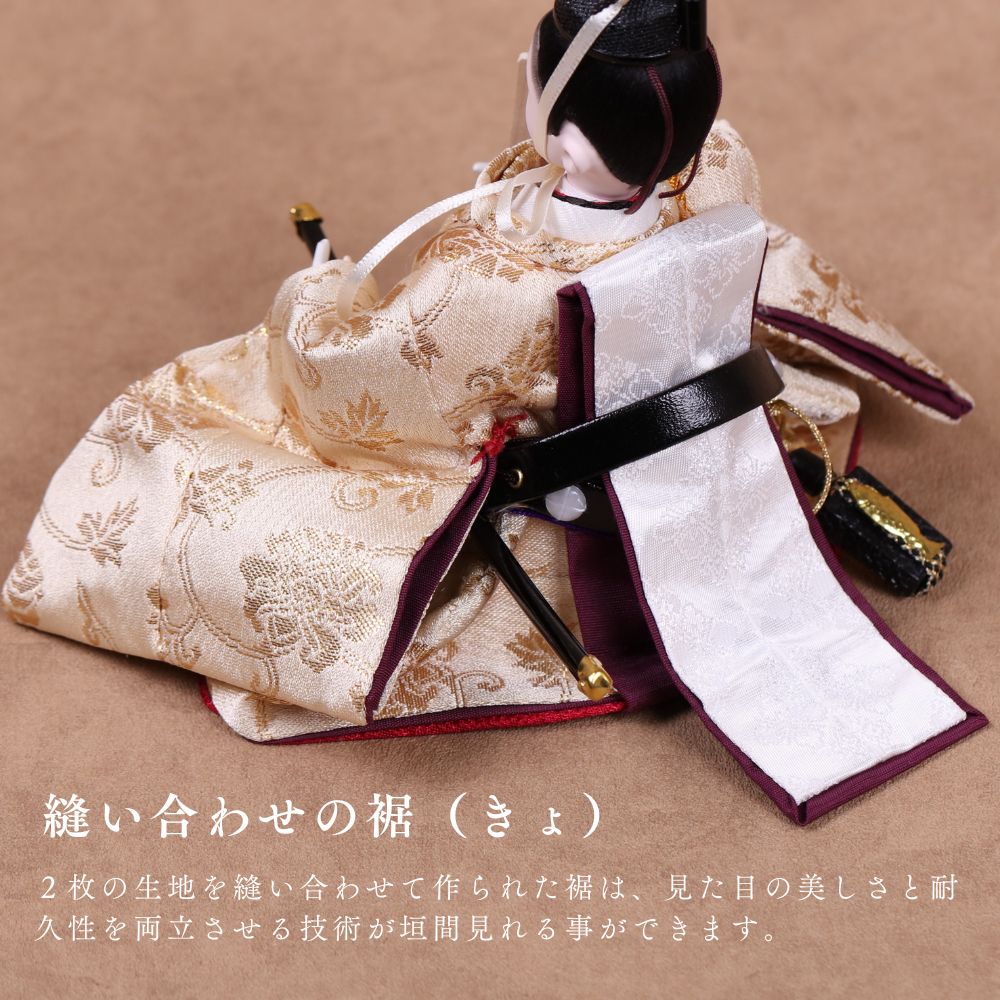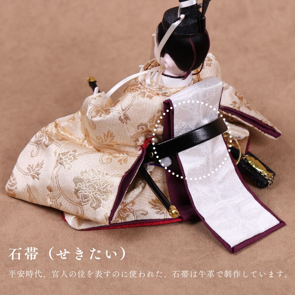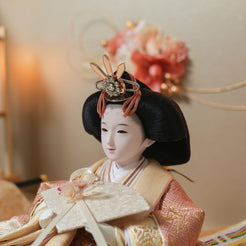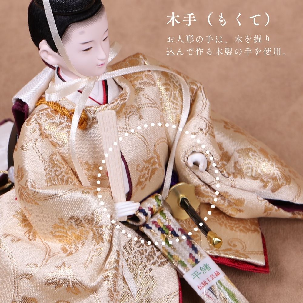 国産の栓(せん)は、美しい木目と温もりある質感が魅力の天然木です。耐久性に優れ、経年とともに味わいを深めます。台座や屏風などに使用することで、自然素材ならではの落ち着いた風合いと上質感を演出し、雛人形全体をより品格ある印象に仕上げます。