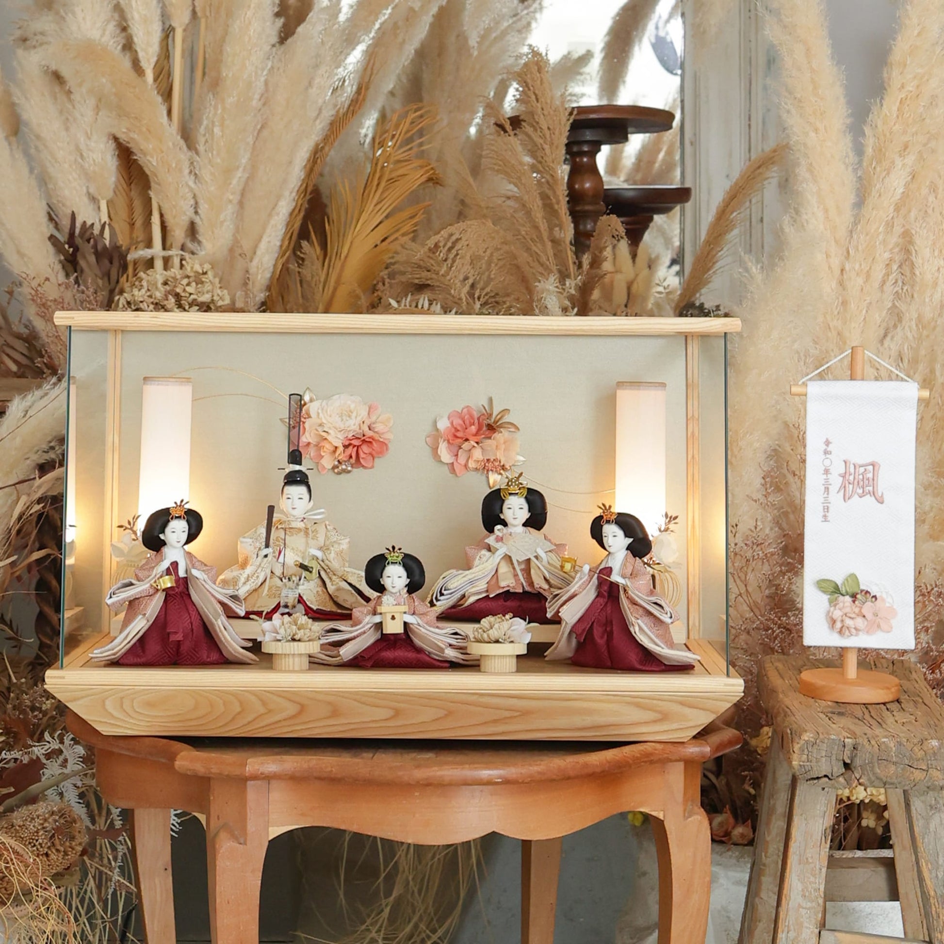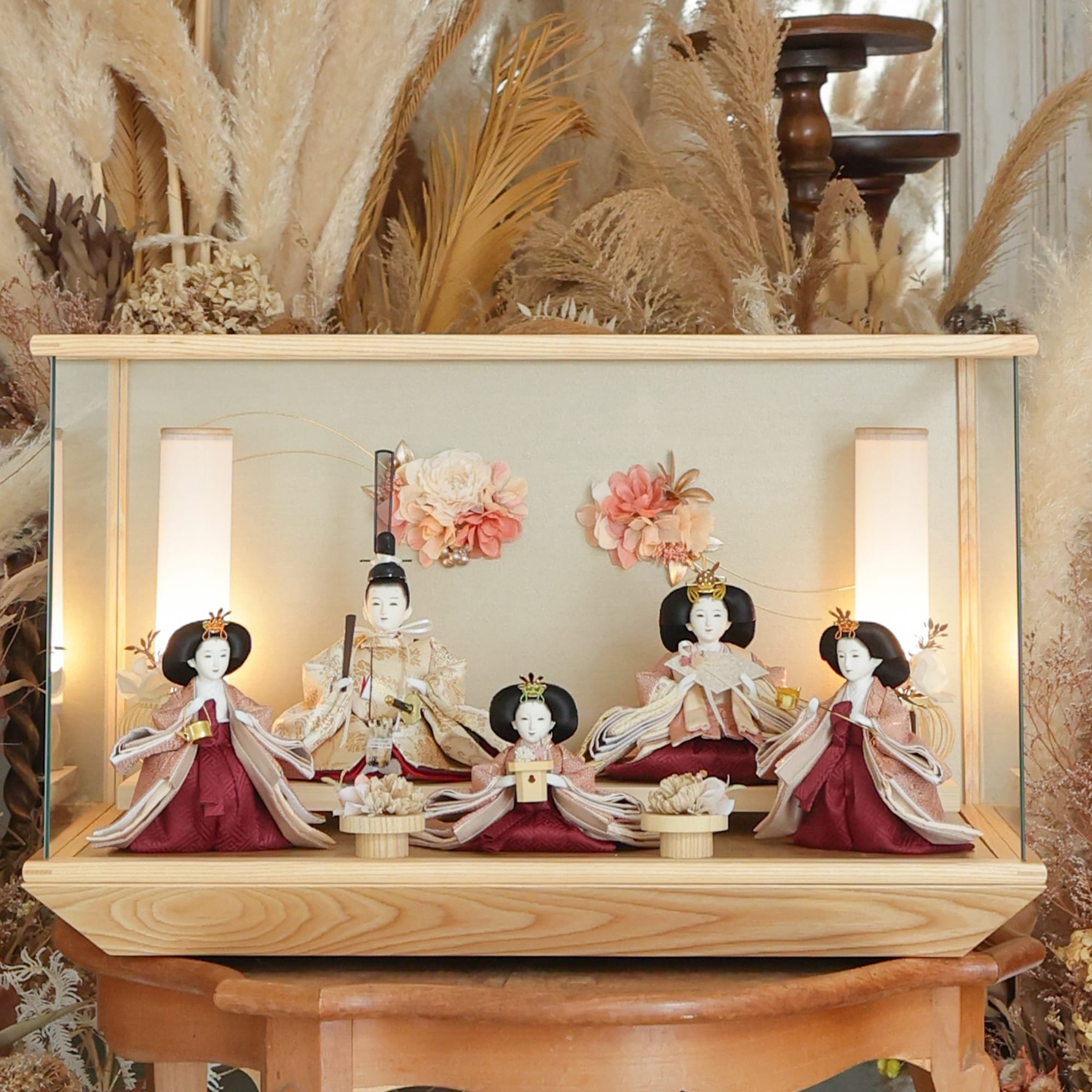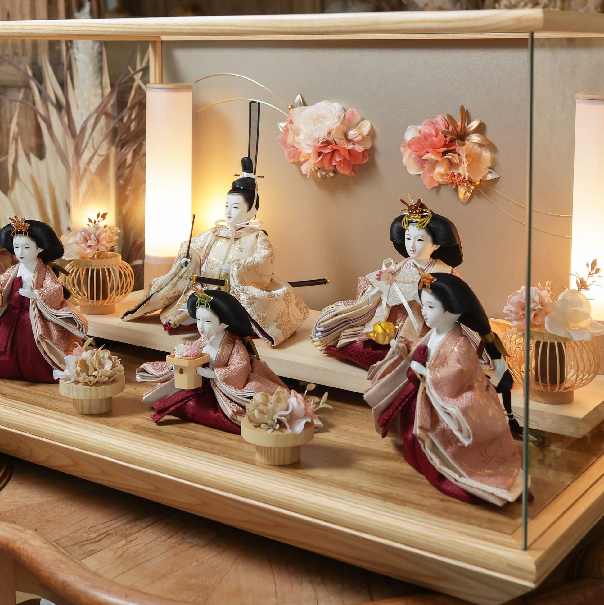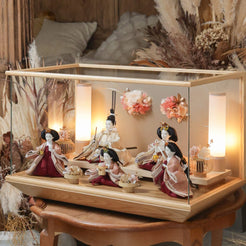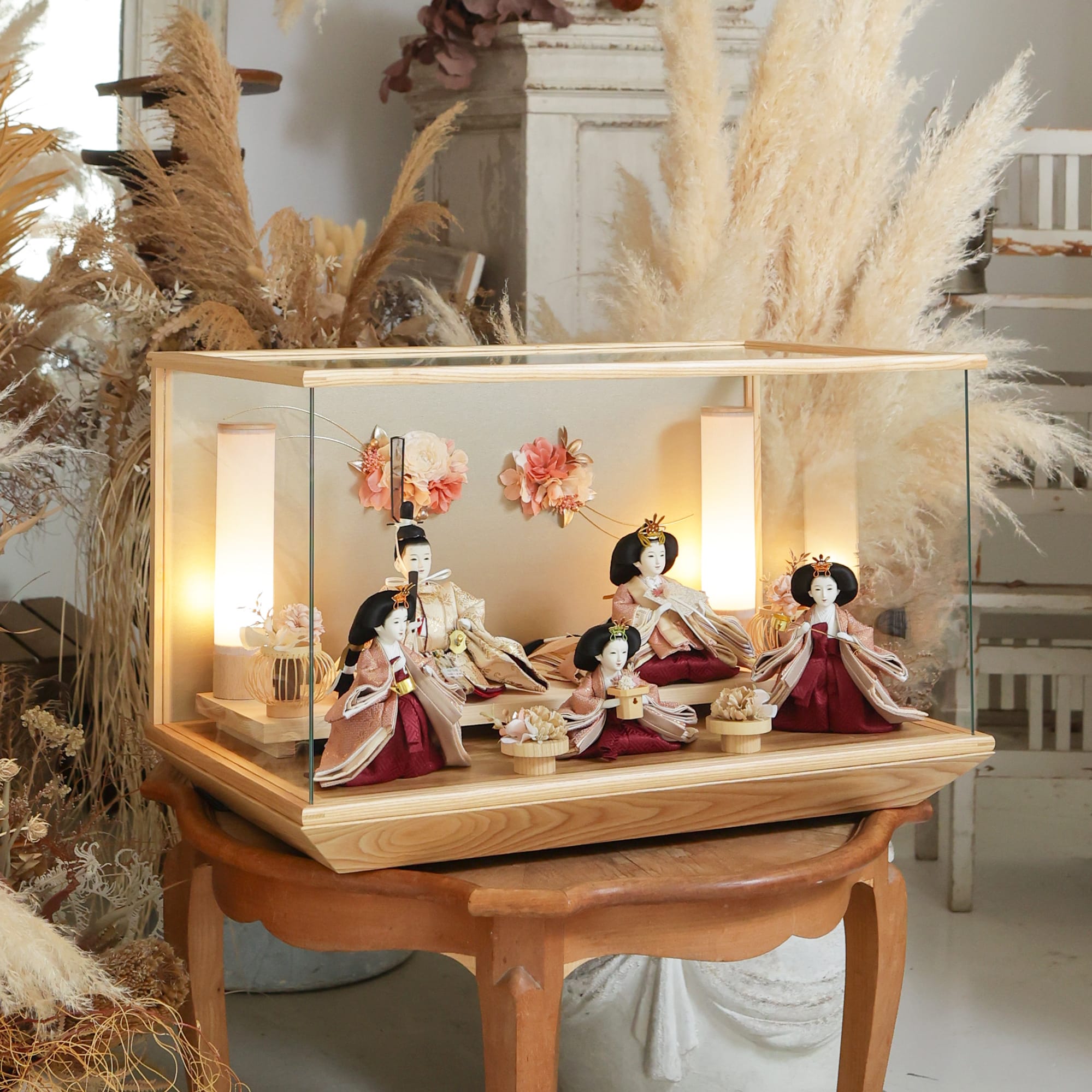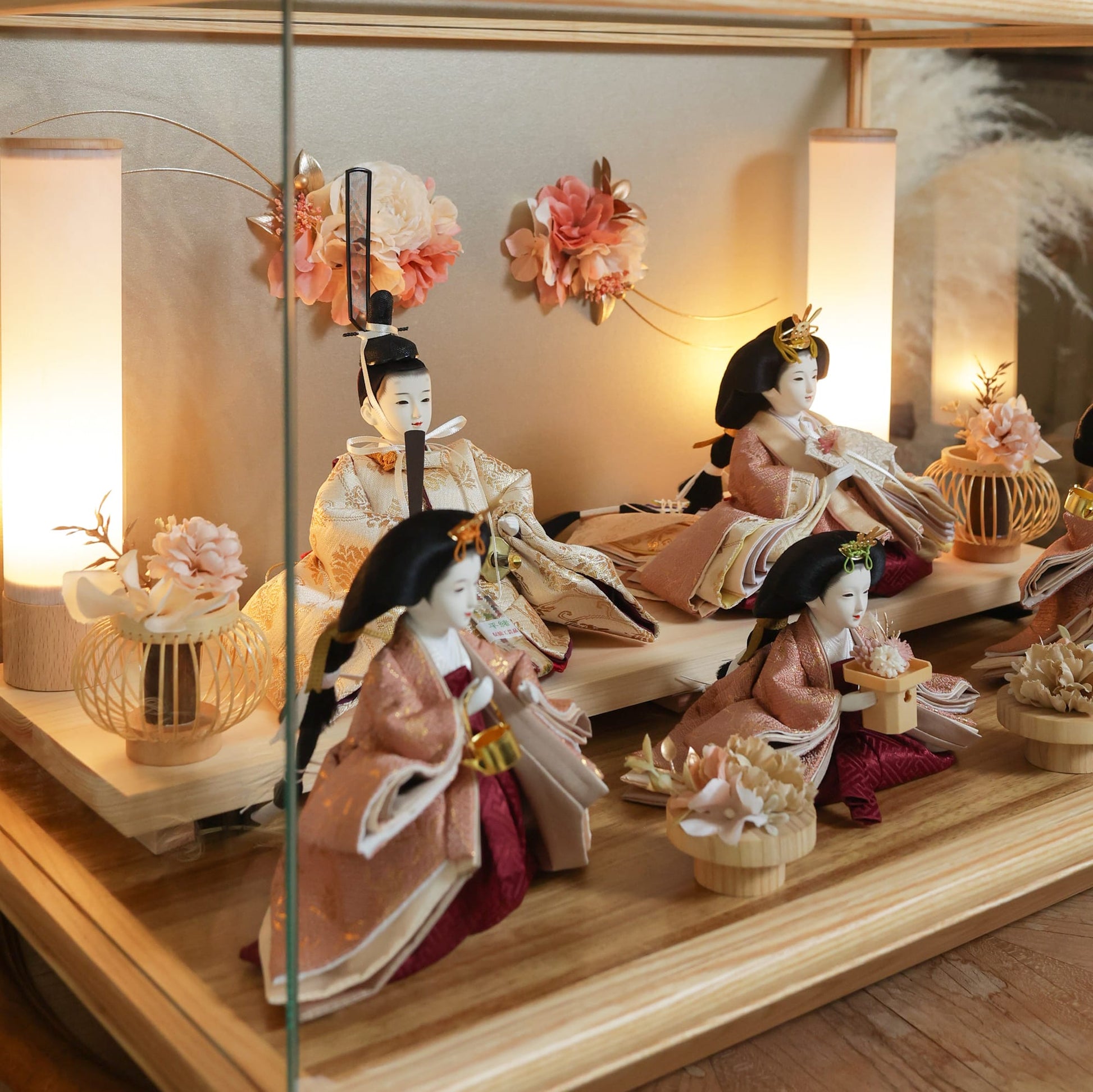 通常2mm厚が一般的な中、当店ではより高品質なAGC製3mmガラスを採用しています。厚みが増すことで強度と安全性が高まり、透明度の高いクリアな美しさを保ちます。大切な雛人形を守りながら、高級感のある見栄えを実現しています。