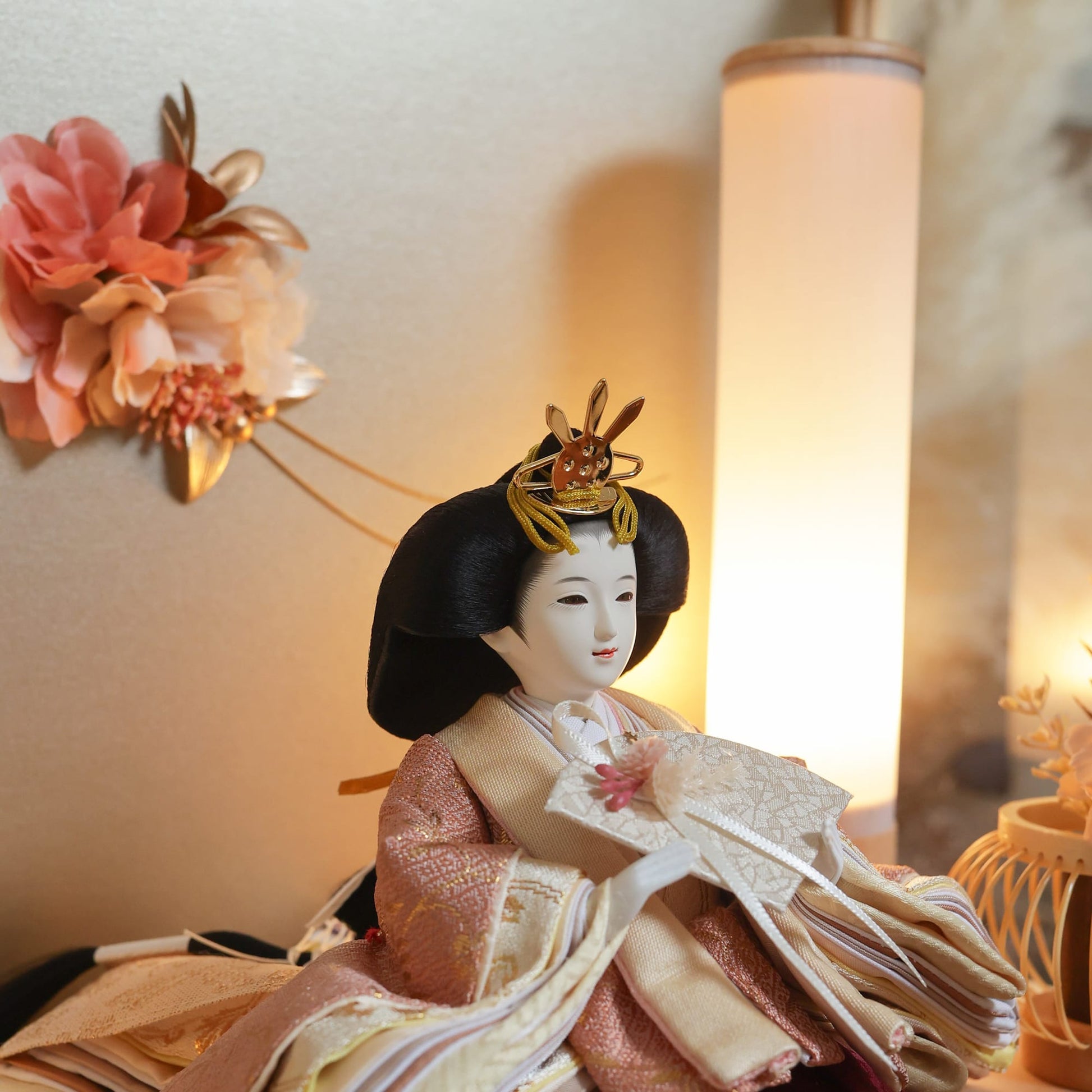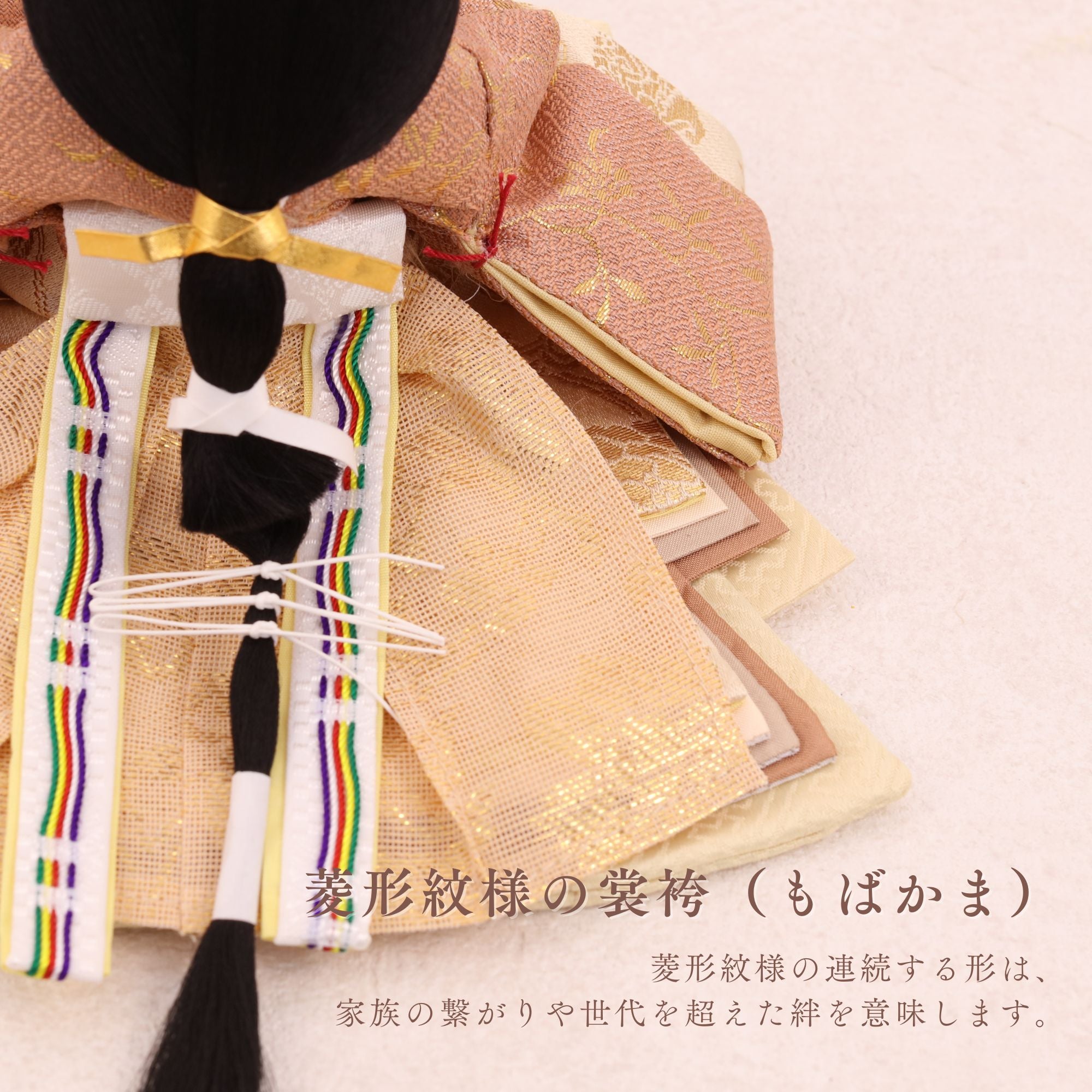 牡丹唐草模様の華やかな着物をまとった砥の粉色の雛人形は、日本の伝統美を象徴しています。この色合いは赤ちゃんの無垢さや新しい命を表現し、平和や穏やかさをもたらします。牡丹唐草は繁栄や幸運を象徴し、家族の絆を深め、未来への希望を抱かせます。雛人形はひな祭りに飾られ、女の子の健やかな成長を祈る重要な宝物です。この伝統的な存在は世代を超えて受け継がれ、心に残る思い出を生み出します。
