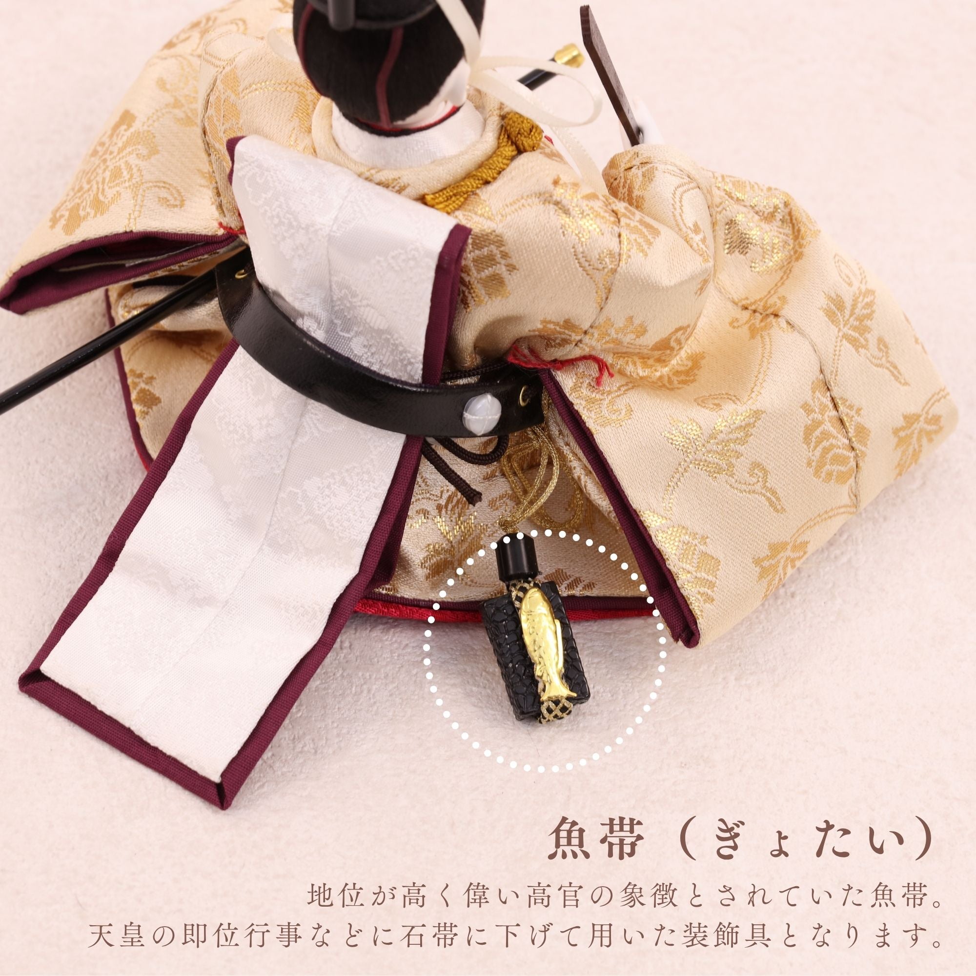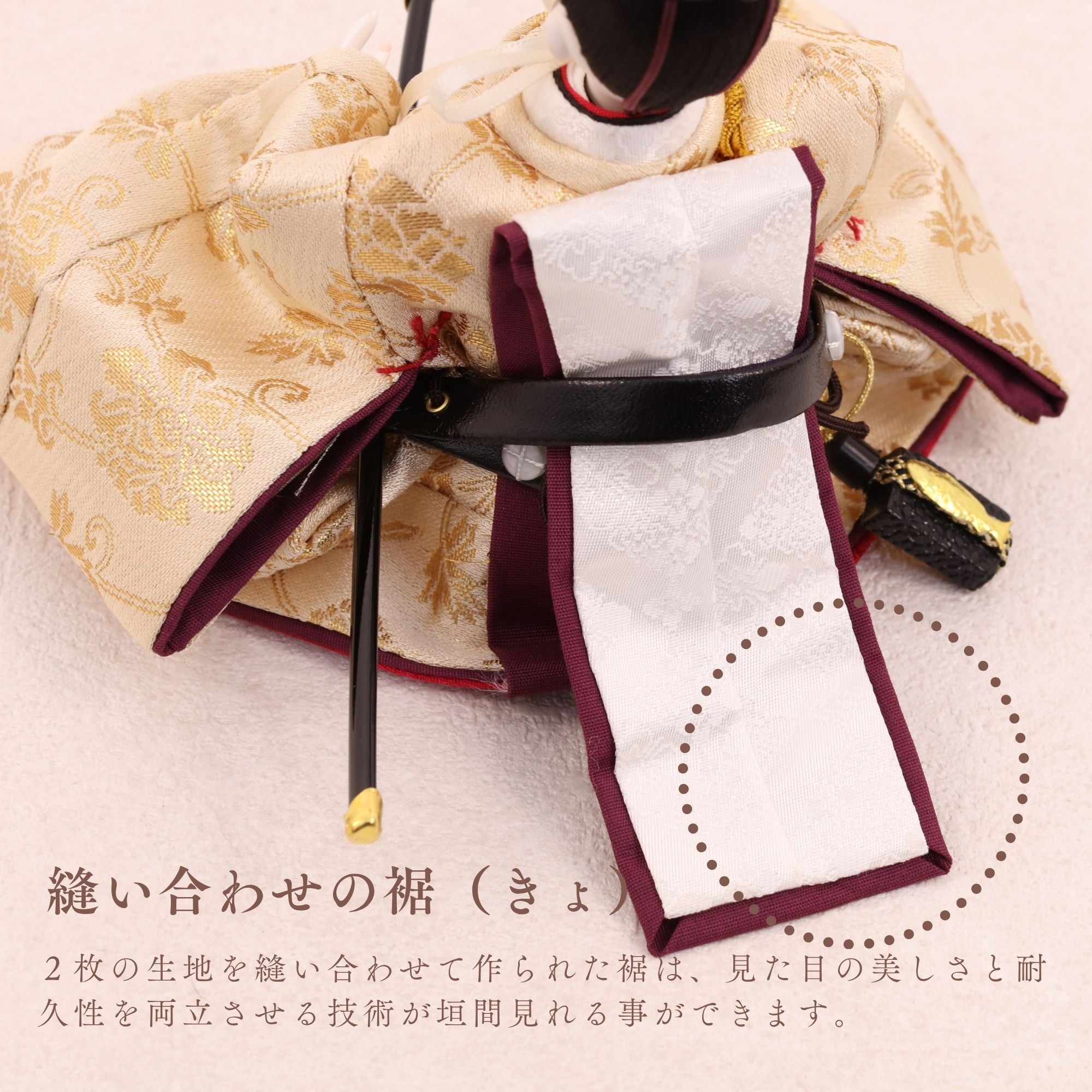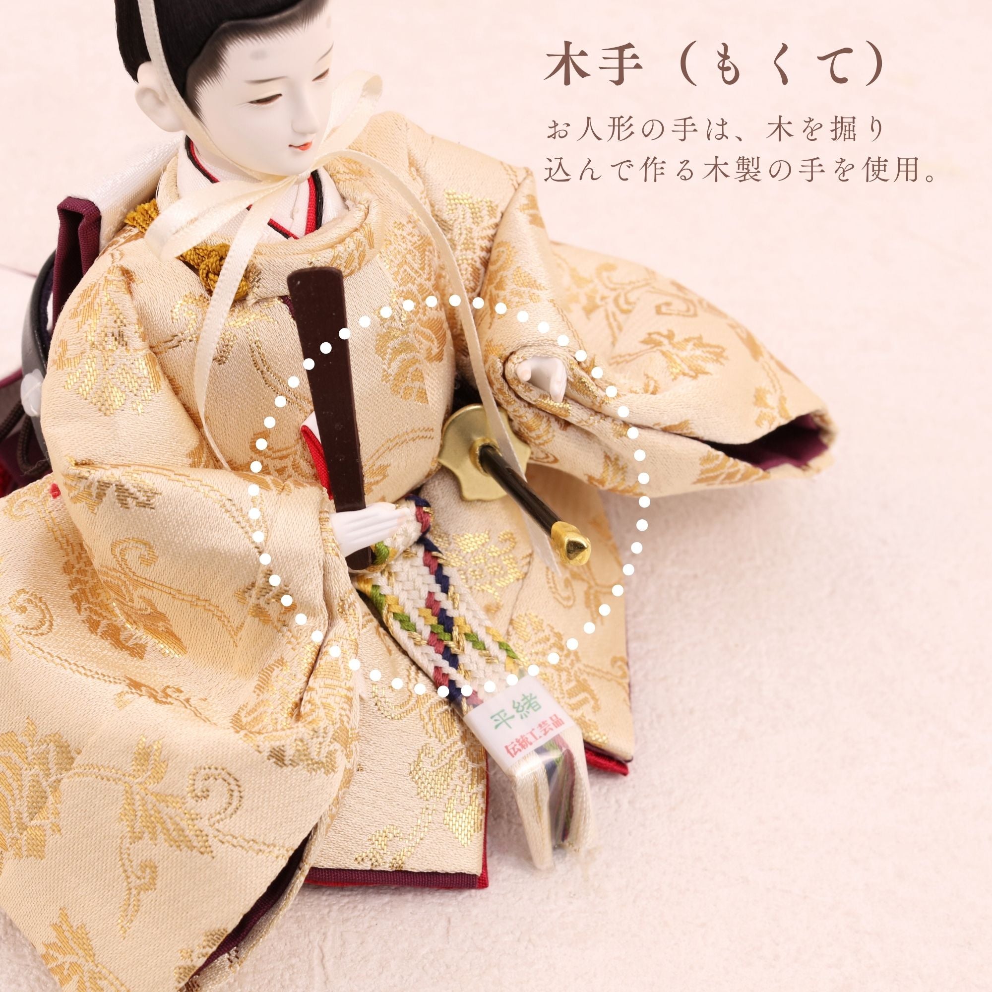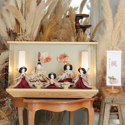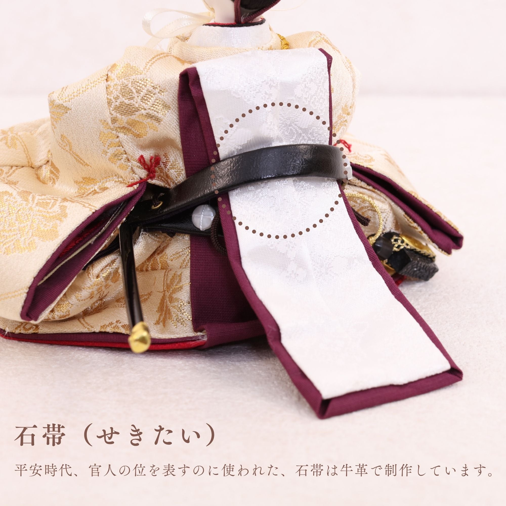 国産の栓(せん)は、美しい木目と温もりある質感が魅力の天然木です。耐久性に優れ、経年とともに味わいを深めます。台座や屏風などに使用することで、自然素材ならではの落ち着いた風合いと上質感を演出し、雛人形全体をより品格ある印象に仕上げます。
