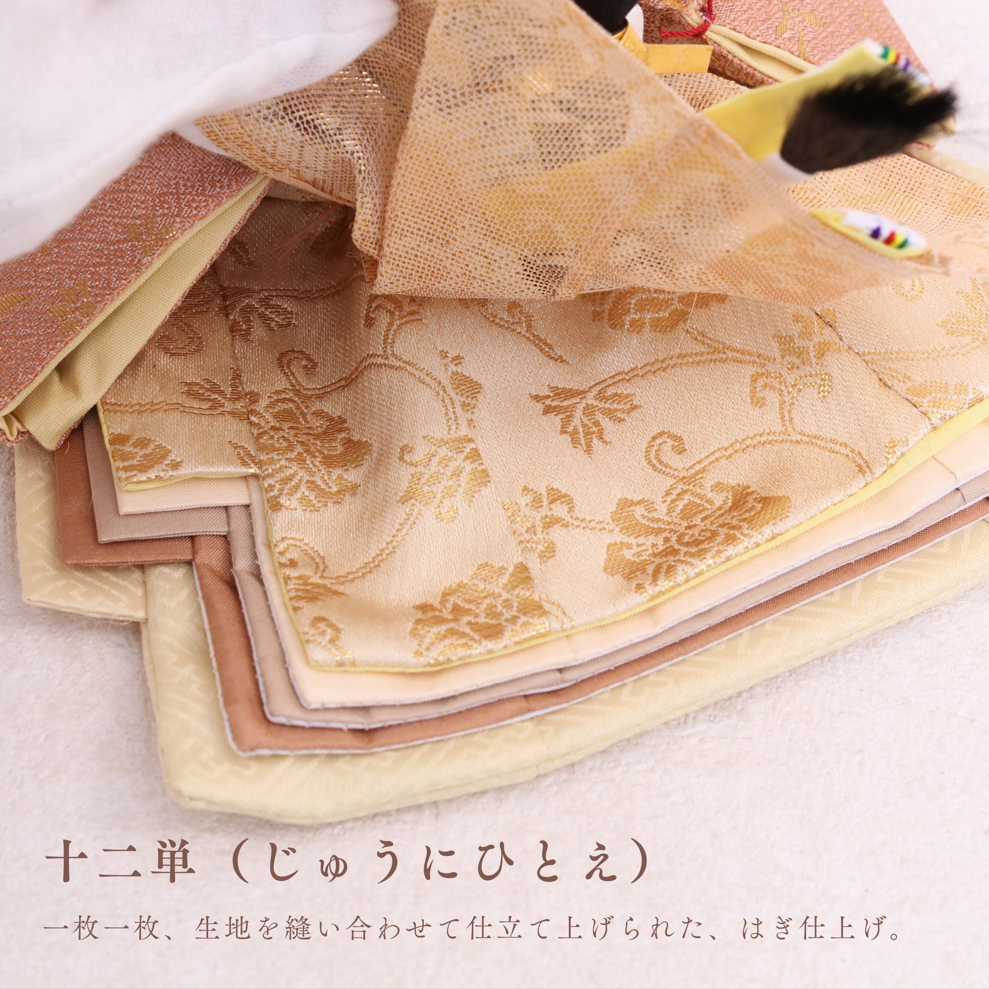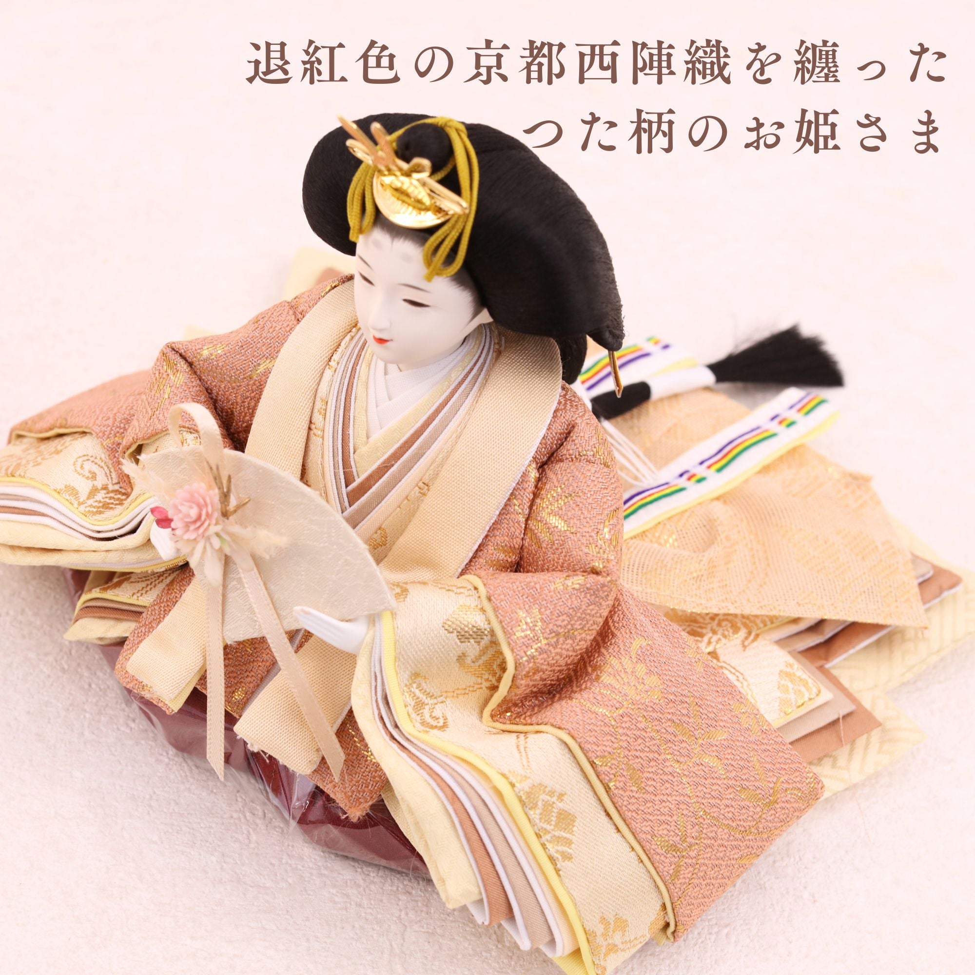 退紅色の京都西陣織を纏った唐花文様のお姫さま