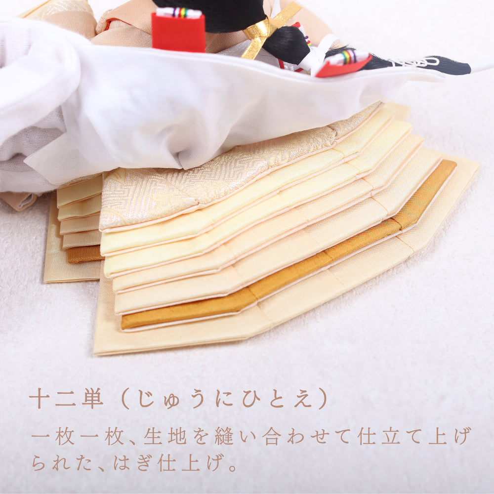 正絹は、100%絹から作られた生地で、「本絹」とも呼ばれます。蚕の繭を原料にし、複雑な工程を経て製造されます。絹糸を織って生地に仕上げることで、独特の光沢と滑らかな質感が生まれ、高級感のあるお人形が完成します。正絹は伝統的な工芸品に広く用いられ、その美しさが際立っています。