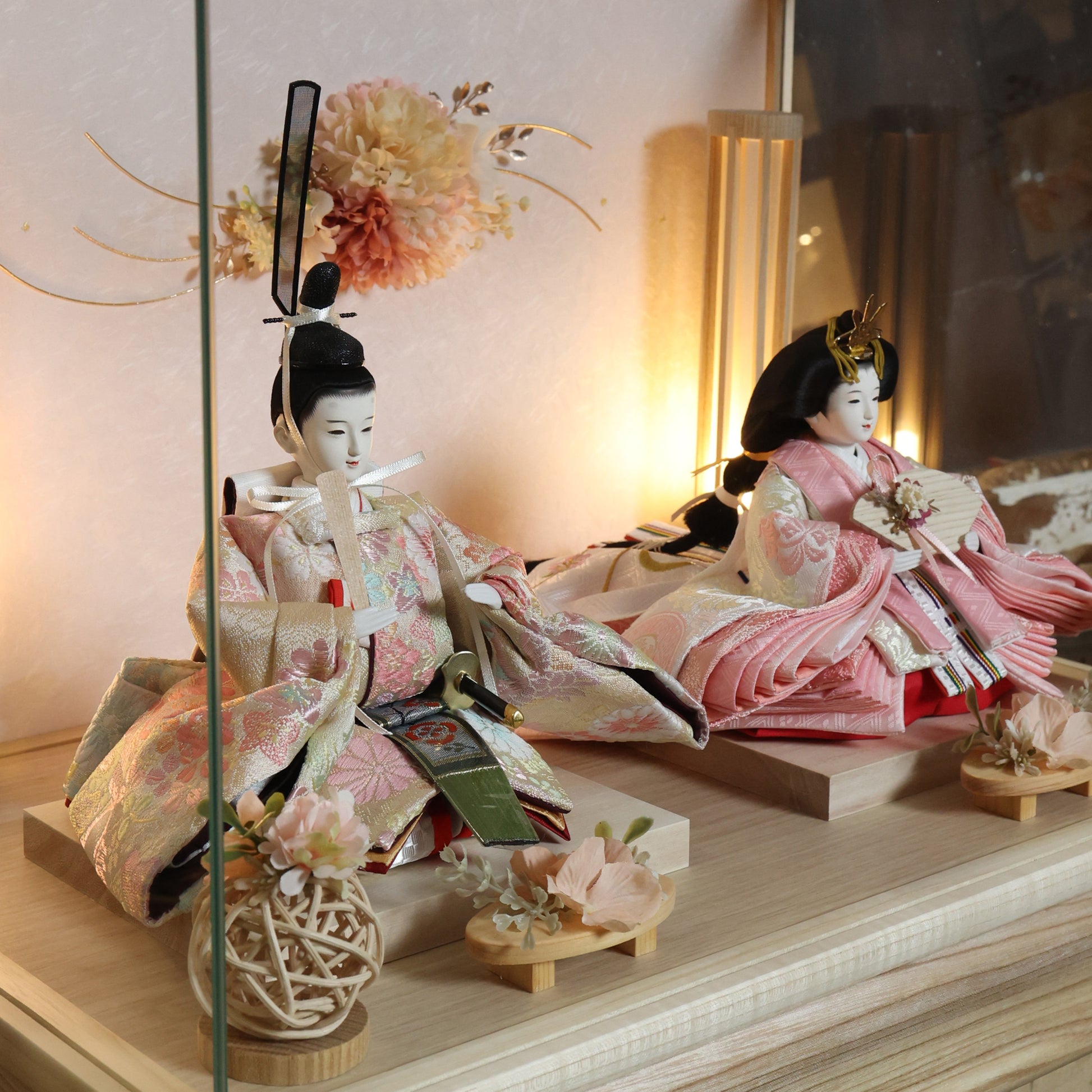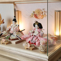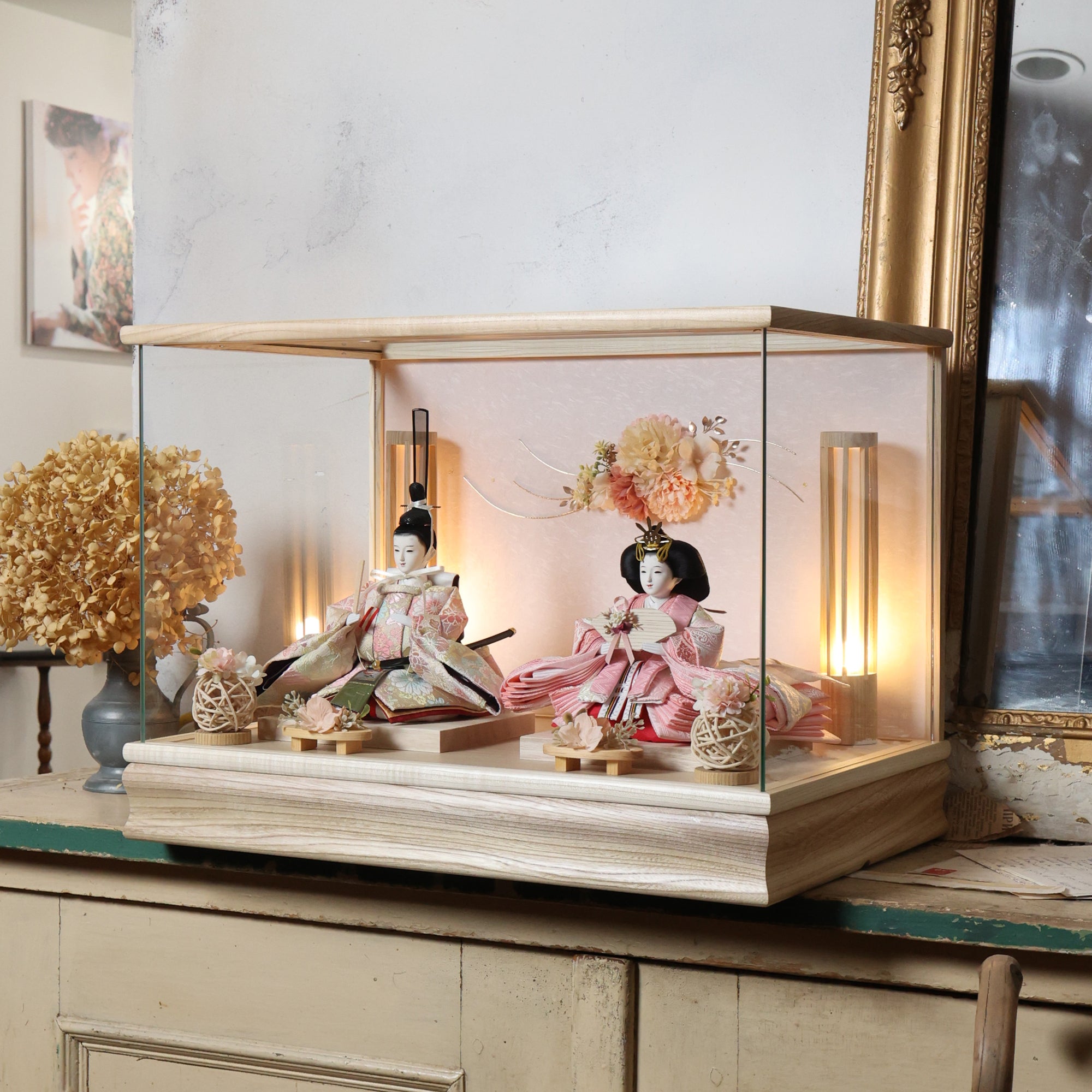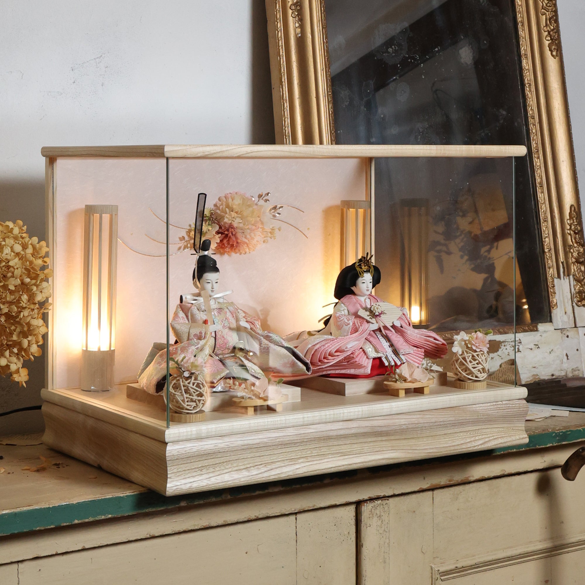 通常2mm厚が一般的な中、当店ではより高品質なAGC製3mmガラスを採用しています。厚みが増すことで強度と安全性が高まり、透明度の高いクリアな美しさを保ちます。大切な雛人形を守りながら、高級感のある見栄えを実現しています。