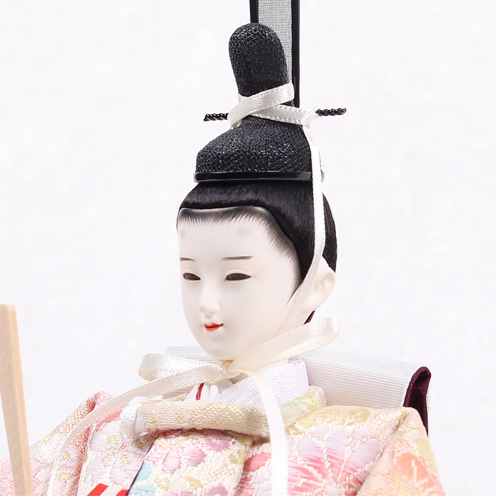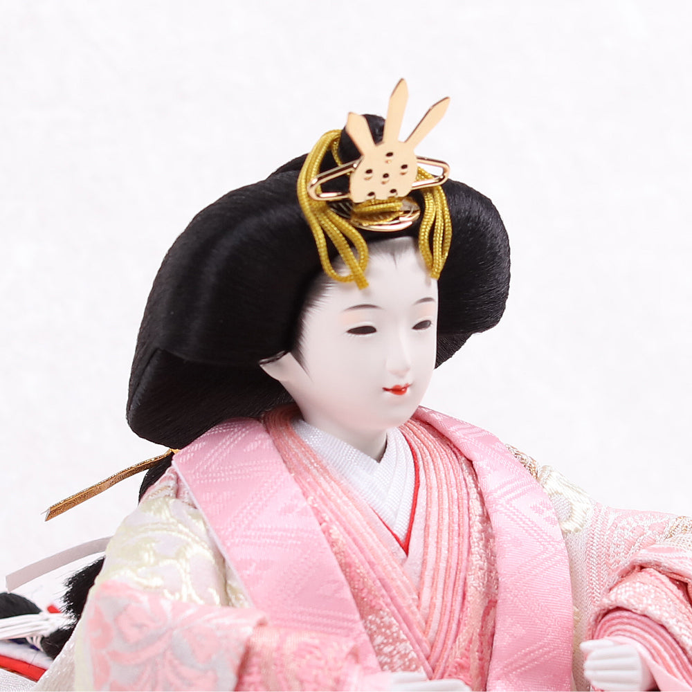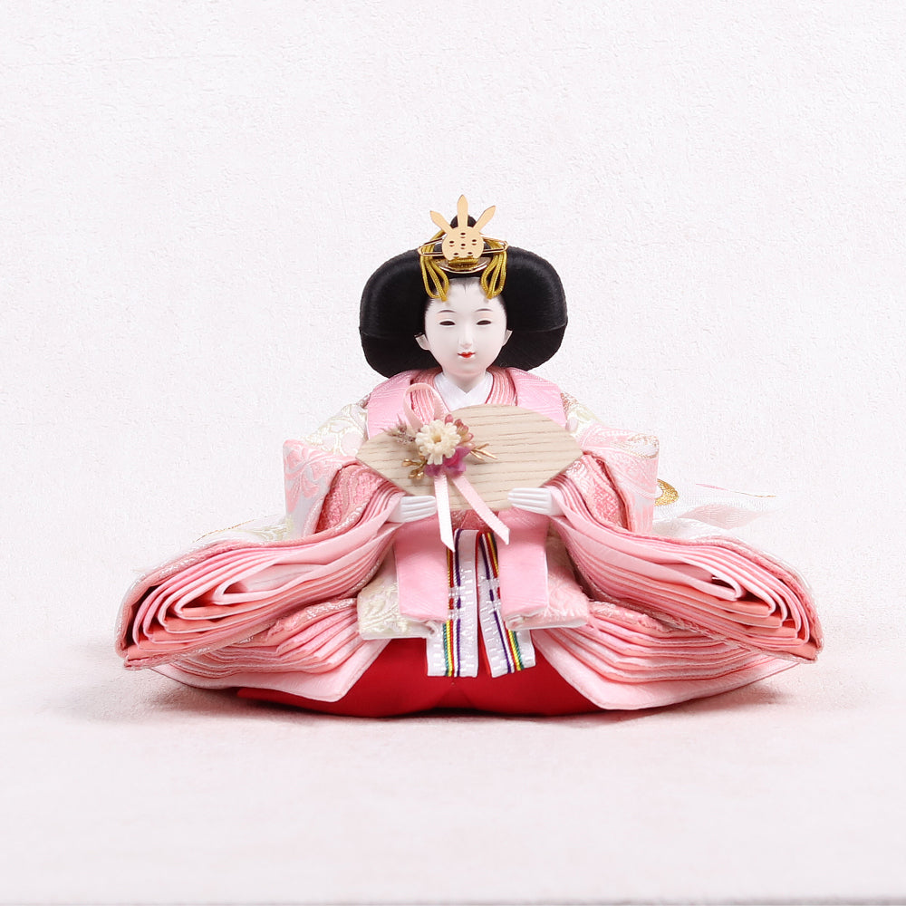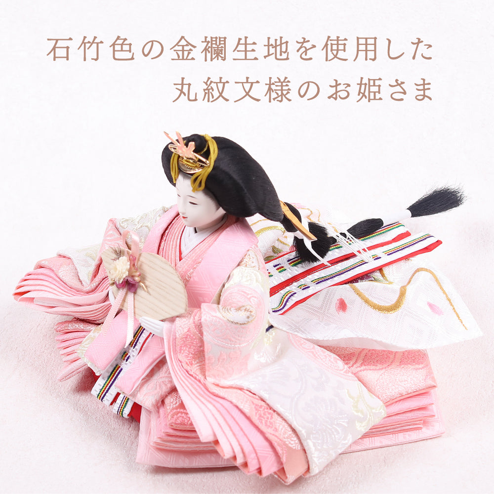 金襴は、豪華な織物で、全て金糸で模様を織り出しています。この技法は中国の宋代に始まり、明の時代に栄えました。日本には室町時代に伝来し、当初は「織金(しょくきん)」と呼ばれていました。金襴は金を多く用いているため、特に華やかで、雛人形の衣装や、着物の帯にもよく使われ、その黄金色の輝きが重厚感を与えます。金襴の模様は細やかで、職人の高い技術が必要です。雛人形に使用することで、伝統的な美しさを引き立て、特別な存在感を生み出します