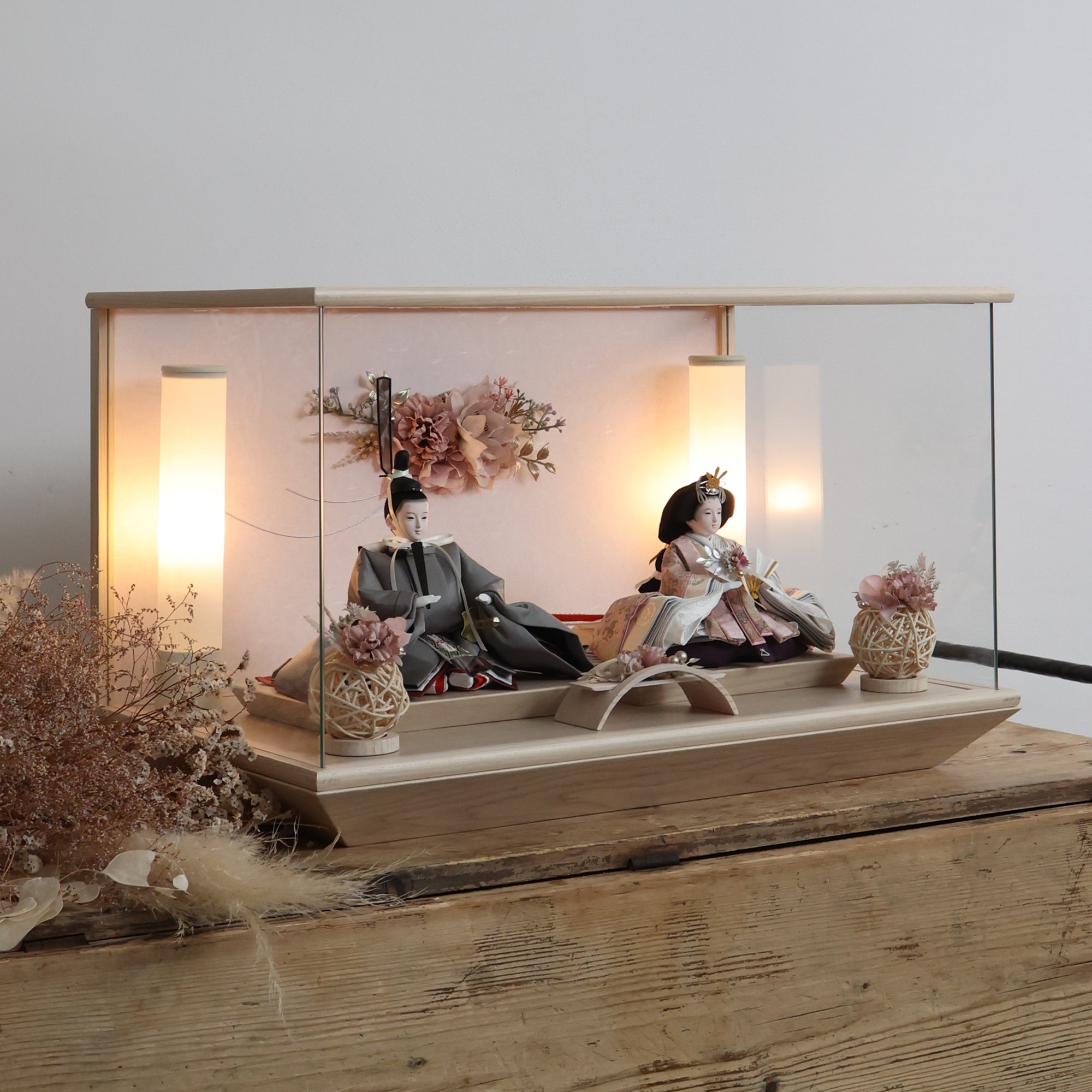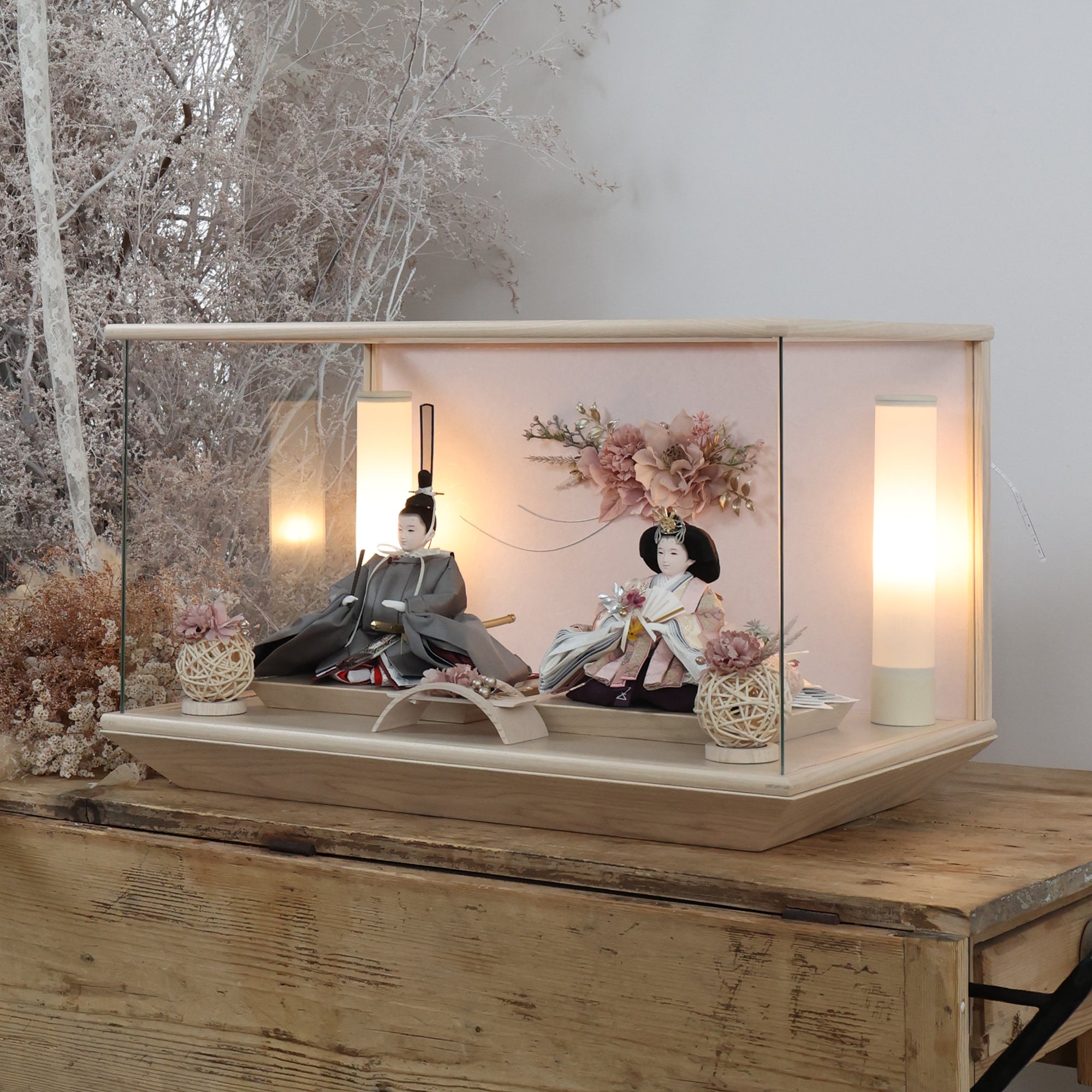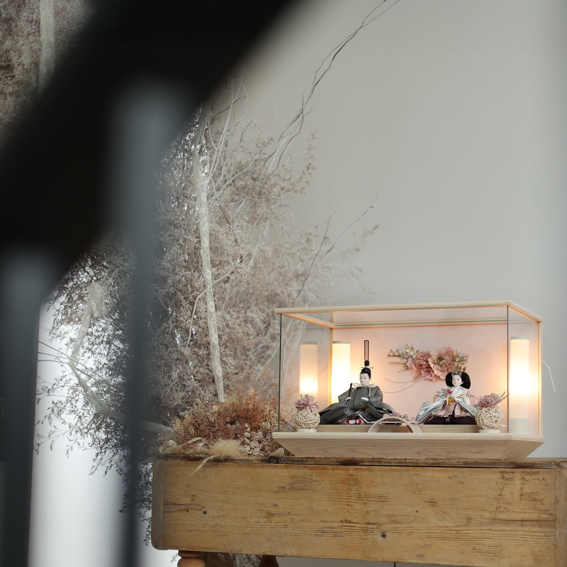 通常2mm厚が一般的な中、当店ではより高品質なAGC製3mmガラスを採用しています。厚みが増すことで強度と安全性が高まり、透明度の高いクリアな美しさを保ちます。大切な雛人形を守りながら、高級感のある見栄えを実現しています。