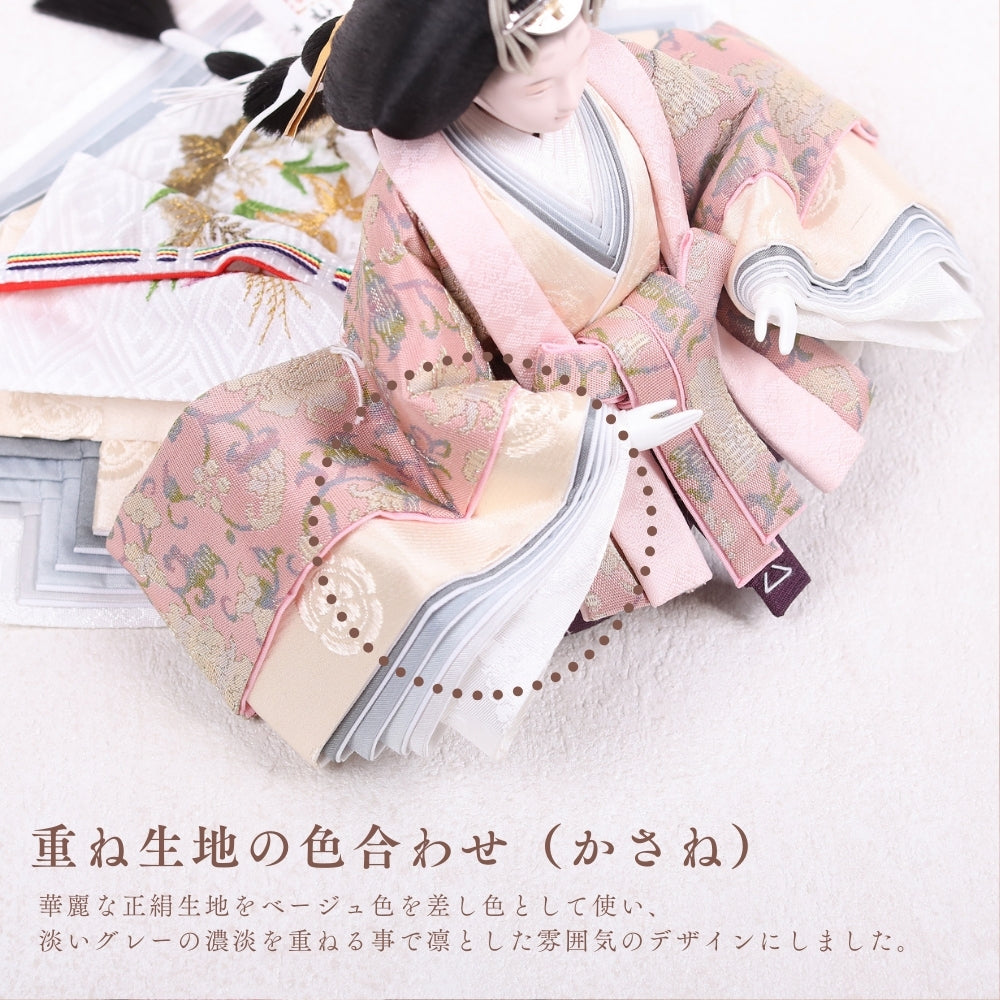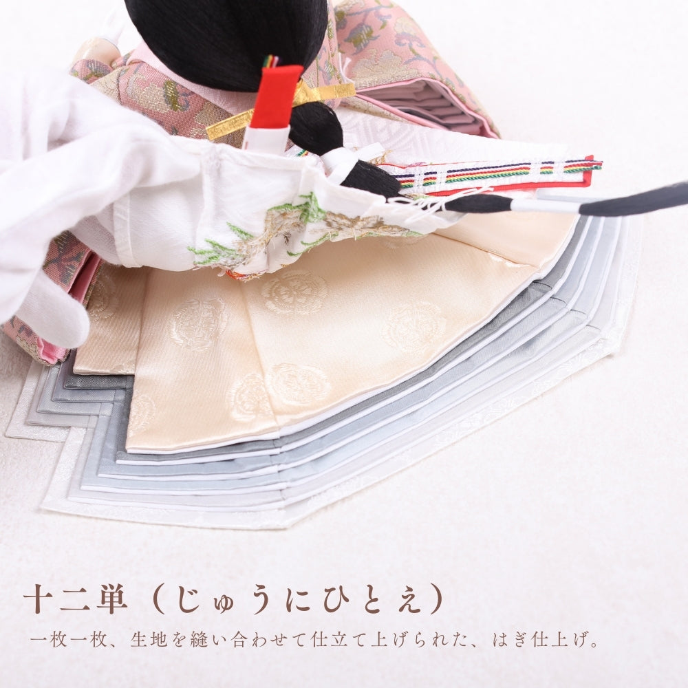 正絹は、100%絹から作られた生地で、「本絹」とも呼ばれます。蚕の繭を原料にし、複雑な工程を経て製造されます。絹糸を織って生地に仕上げることで、独特の光沢と滑らかな質感が生まれ、高級感のあるお人形が完成します。正絹は伝統的な工芸品に広く用いられ、その美しさが際立っています。
