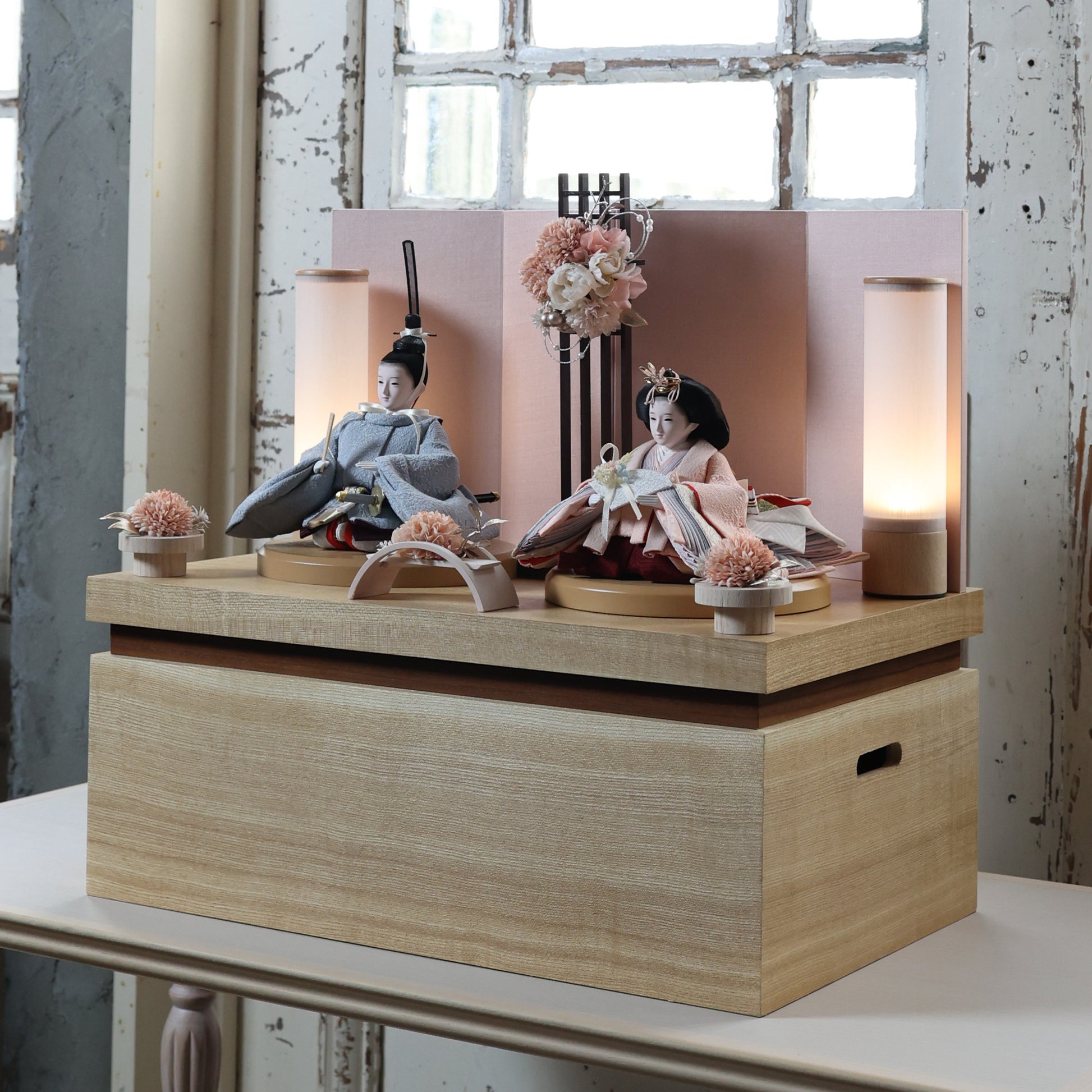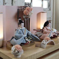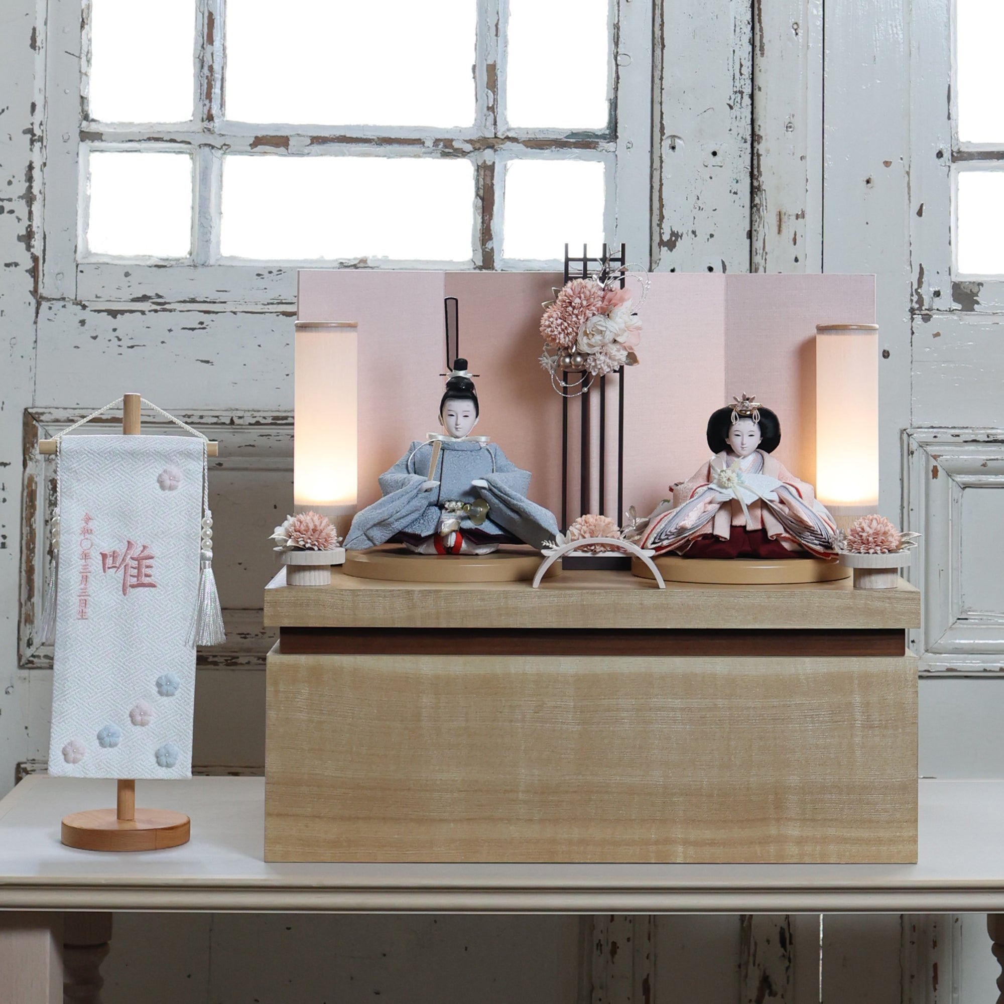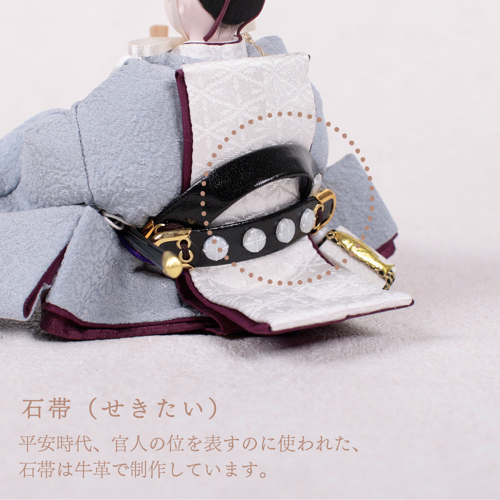 この雛人形は、上質な正絹生地に施された菊模様が特徴で、菊は「不老長寿」を象徴しています。その力強さと生命力は、赤ちゃんの無限の可能性と成長を祝福するデザインとなっています。柔らかな曲線の菊の柄は、愛と未来への期待を表現。また、衣装には浅葱鼠色(あさぎねずみいろ)が採用され、優しい青緑と灰色の融合が赤ちゃんの清らかさを示し、見る人に安らぎを与えます。正絹の滑らかな質感は高級感を伝え、特別な雛人形として赤ちゃんの成長と家族の繁栄を祝います。